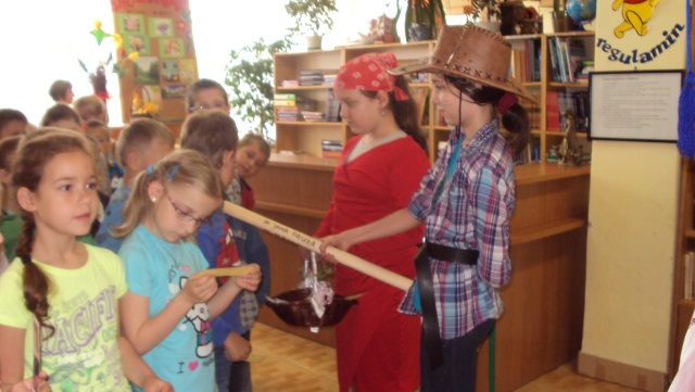 Tradycją już naszej biblioteki szkolnej stała się uroczystość pasowania na czytelnika uczniów klas pierwszych. Imprezą tą oficjalne przyjmujemy najmłodszych uczniów do grona czytelników biblioteki szkolnej. Specjalnie na tę okazję Koło biblioteczne przygotowało teatrzyk. Po inscenizacji dzieci zapoznane zostały z "prośbami książki", złożyły uroczyste ślubowanie oraz zostały pasowane na czytelnika biblioteki szkolnej. Na zakończenie dzieci poddano "cytrynowej próbie", którą zniosły bardzo dzielnie czyli stały się prawdziwymi czytelnikami i mogły wypożyczyć książkę.