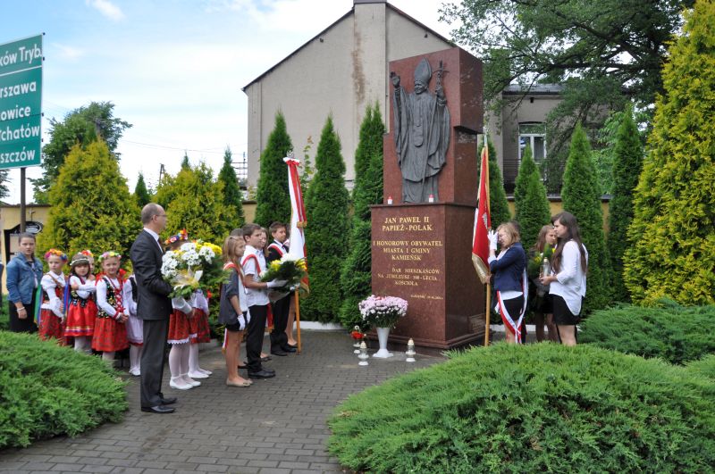 Z okazji 20. rocznicy nadania naszej szkole im. Jana Pawła II została odprawiona Msza święta w kościele parafialnym pw. św. Piotra i Pawła w Kamieńsku. W uroczystości udział wzięli: władze miasta, poczty sztandarowe, dyrekcja, nauczyciele, uczniowie, rodzice oraz mieszkańcy miasta i gminy Kamieńsk. Po Mszy świętej uczniowie naszej szkoły zaprezentowali montaż słowno-muzyczny, którego celem było wyrażenie Papieżowi - św. Janowi Pawłowi II naszej wielkiej wdzięczności oraz przypomnienie Jego nauczania. Montaż przygotowali opiekunowie Samorządu Uczniowskiego.