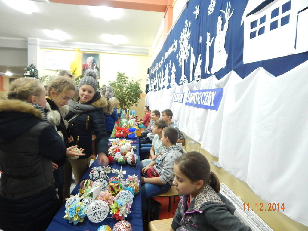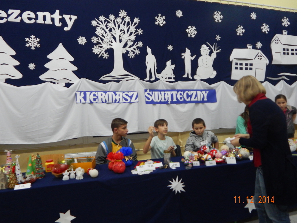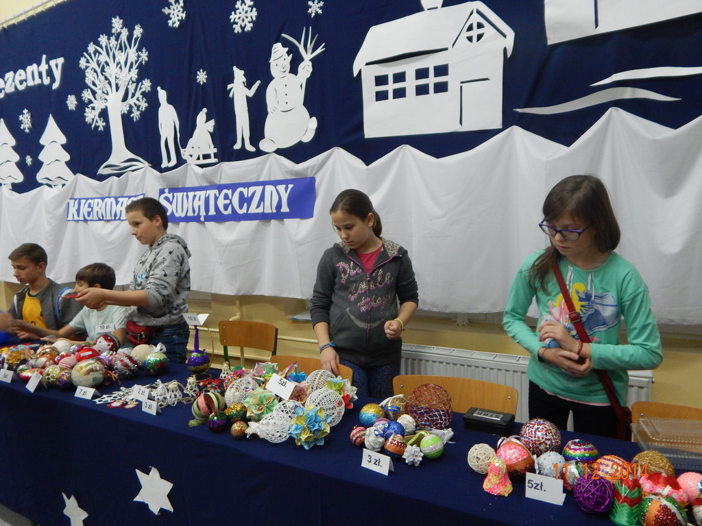 Dnia 10 grudnia 2014 roku w naszej szkole odbył się kiermasz ozdób świątecznych. Wszystkie ozdoby wykonali uczniowie, nauczyciele i dyrekcja naszej szkoły. Prezentowane ozdoby cechowała oryginalność, różnorodność i estetyka wykonania. W świątecznej atmosferze można było kupić piękne i niepowtarzalne: choinki, wianki, zawieszki, stroiki, bombki, dzwonki, gwiazdy oraz świąteczne kartki z życzeniami. Prac było dużo, ale i zainteresowanie też było niemałe.