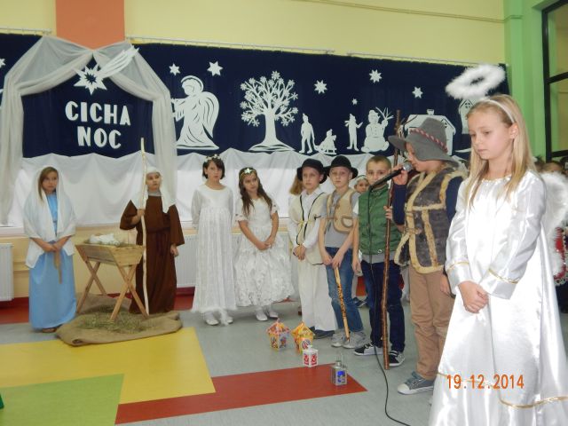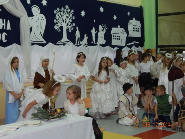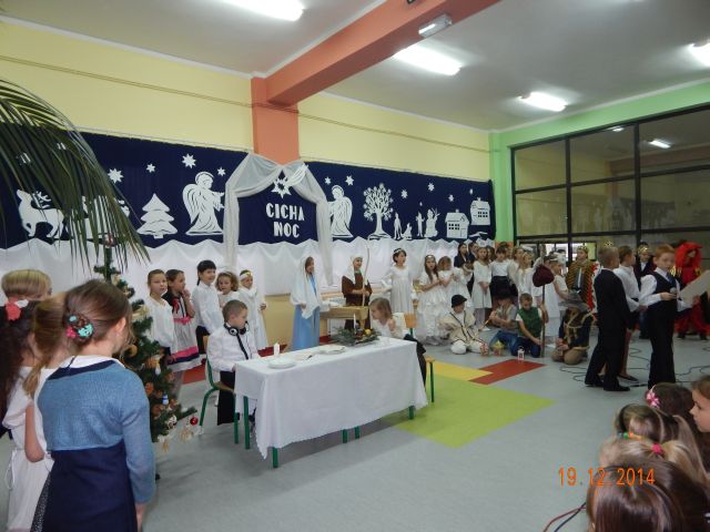Dnia 18 XII w naszej szkole odbyły się szkolne jasełka, przygotowane przez wychowawców i uczniów klas III. Było to naprawdę wyjątkowe widowisko z piękną scenografią. Należy też wspomnieć o strojach wszystkich aktorów, które naprawdę robiły duże wrażenie. Był Józef, Maryja, Aniołowie, Trzej Królowie, Pasterze. Aktorzy wiernie odtworzyli swoje role..