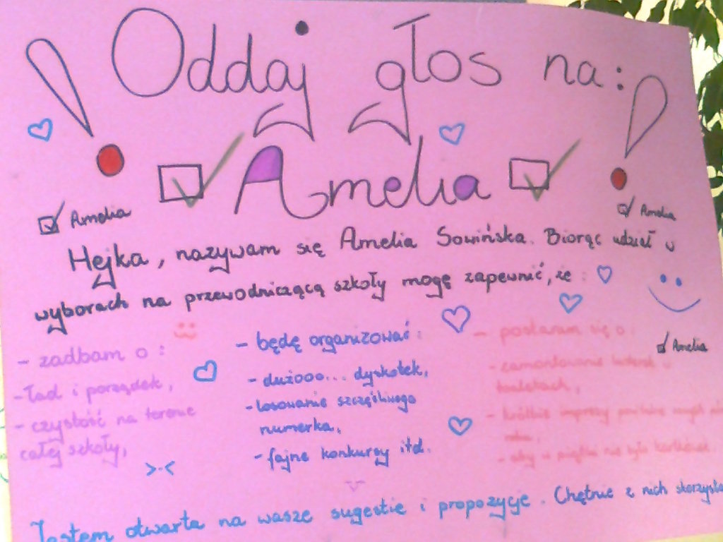 Dnia 28 września 2015 r. w naszej szkole odbył się apel przedwyborczy podczas którego zaprezentowano kandydatów do SU. Spotkanie rozpoczęła opiekunka SU, która powitała zgromadzonych i przypomniała cel oraz termin wyborów. Następnie przedstawiła kandydatów – uczniów klas V i VI. Po prezentacji omówiono regulamin głosowania i kartę głosowania. Na zakończenie apelu opiekunka SU zachęcała uczniów do wzięcia udziału w wyborach