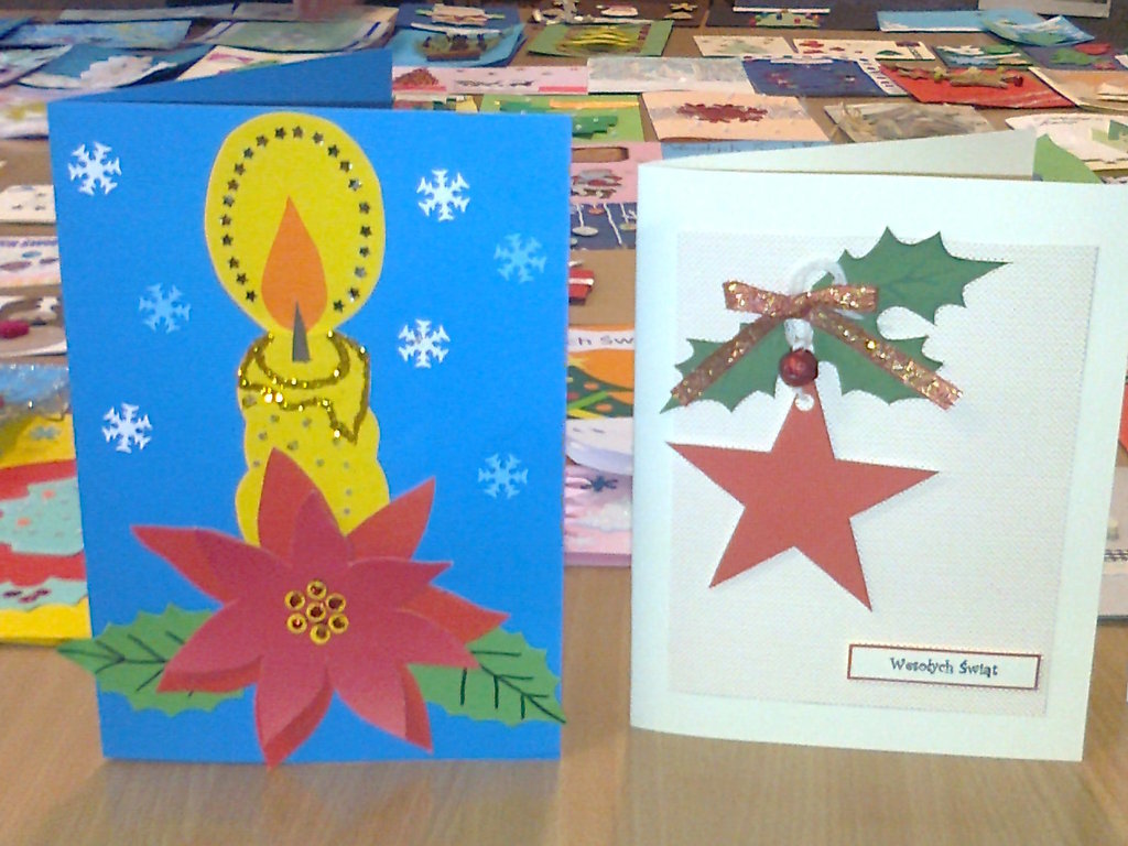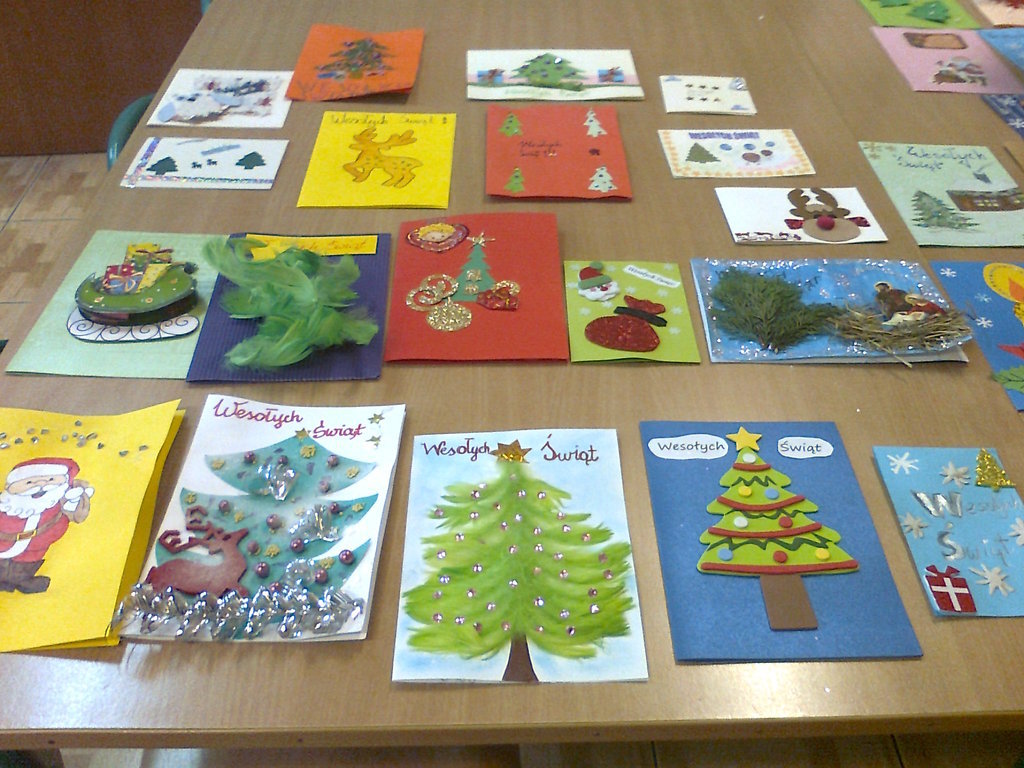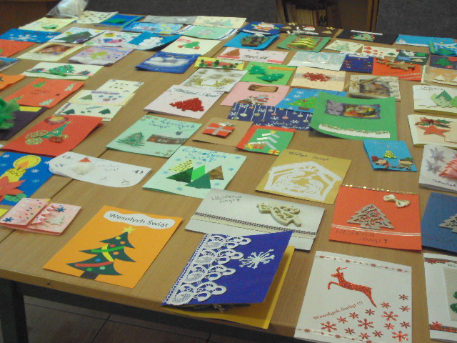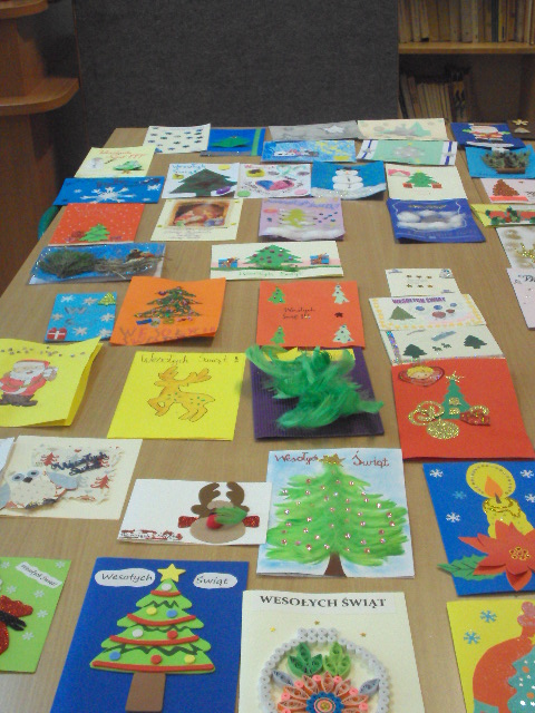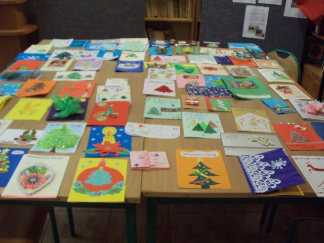 Dla przypomnienia i zachęcenia dzieci do czerpania z bogatych rodzimych tradycji już w listopadzie Samorząd Uczniowski ogłosił konkurs na wykonanie najpiękniejszej karty świątecznej. Mogli w nim wziąć udział wszyscy uczniowie z naszej szkoły. Na konkurs wpłynęło 88 pięknych kart. Zostały wykonane różnymi technikami plastycznymi. Organizatorzy mieli bardzo trudne zadanie, by wybrać spośród tylu pięknych prac te najładniejsze. Przyznano nagrody i wyróżnienia autorom prac, którzy wykazali się pomysłowością, oryginalnością, ciekawą techniką wykonania.