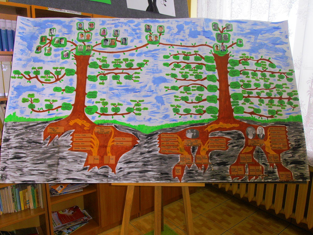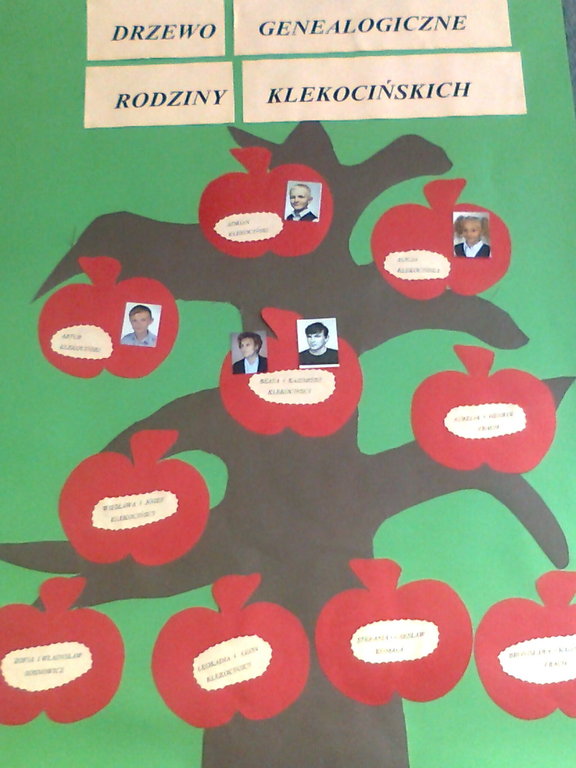 Uczniowie klas czwartych w listopadzie wzięli udział w konkursie „MOJE DRZEWO GENEALOGICZNE” zorganizowanym przez nauczyciela historii p. Marlenę Mroczkowską - Madejczyk. Myślą przewodnią przedsięwzięcia było odkrywanie przez dzieci własnych korzeni oraz zachęta do rodzinnych spotkań i rozmów o własnej historii. Przyniesione prace były niezwykle barwne i pomysłowe.