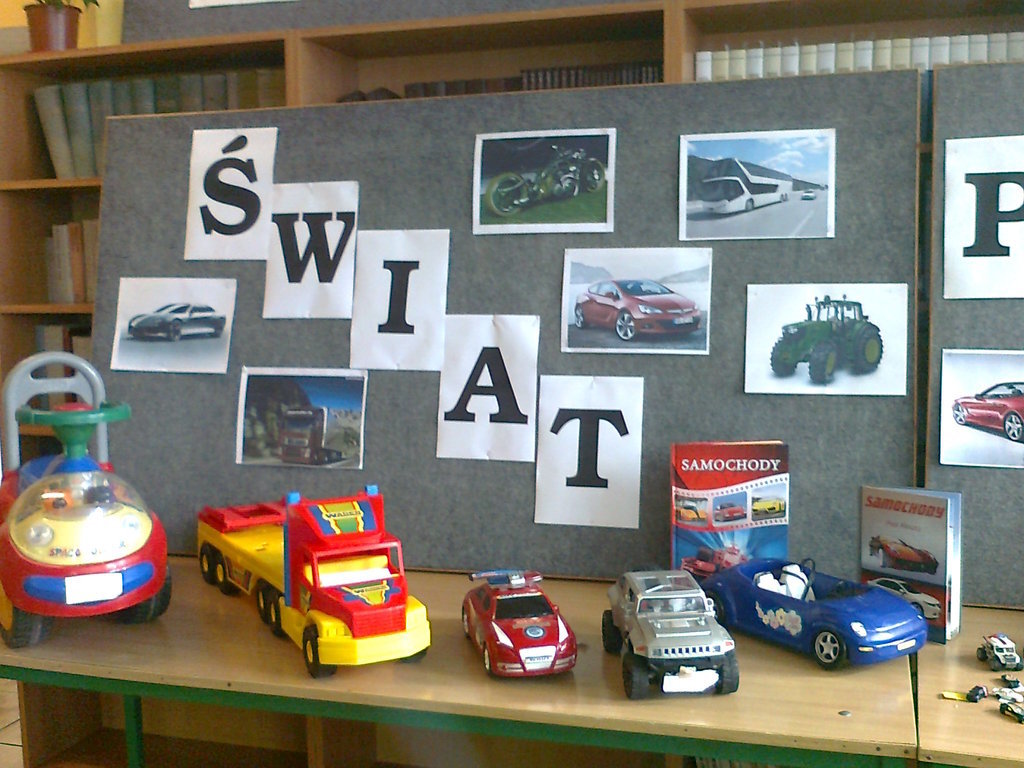 Dlatego też nasza szkolna biblioteka postanowiła zorganizować wystawę pojazdów. Wystawa została zorganizowana z pomocą uczniów, nauczycieli i rodziców, którzy przynieśli do biblioteki swoje ciekawe kolekcje. Większość eksponatów była tylko reprezentacją znacznie ciekawszych zbiorów, które zostały w domach z powodów oczywistych.