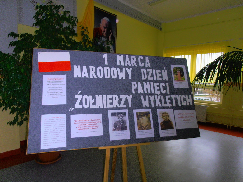 Nasza szkoła też uczciła żołnierzy niezłomnych. Podczas lekcji historii odbyły się pogadanki na temat żołnierzy podziemia niepodległościowego, którzy w powojennej Polsce stawiali opór komunistycznej władzy. Uczniowie wykonali gazetkę ścienną poświęconą żołnierzom walczącym o suwerenną Polskę. Ponadto przedstawiciele Samorządu Uczniowskiego zapalili znicz pod pomnikiem Stanisława Sojczyńskiego "Warszyca" - twórcy KWP.