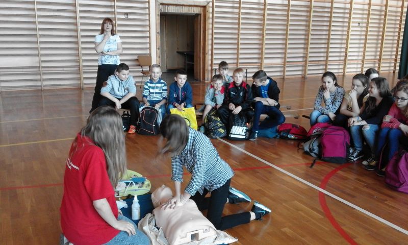 25 kwietnia w Szkole Podstawowej w Kamieńsku rozpoczął się Tydzień Zdrowia zorganizowany przez nauczycielki wychowania fizycznego: p.Dorotę Ożarek i p.Aldonę Ciesielską-Krężlik. W pierwszym dniu zorganizowano wystawę prac plastycznych wykonanych przez uczniów klas IV-VI pod kierunkiem nauczycielki plastyki p.Lidii Piekarskiej. Tematem prac było zdrowe odżywianie i zdrowy styl życia. W tym samym czasie w sali gimnastyczniej odbyło się szkolenie z zakresu udzielania pierwszej pomocy przedmedycznej pod kierunkiem ekipy ratowników medycznych z Bełchatowa. Celem szkolenia było nauczenie udzielania pierwszej pomocy u reagujących i niereagujących ofiar wypadków oraz zdobycie umiejętności w zakresie resuscytacji krążeniowo-oddechowej. W trakcie szkolenia uczniowie otrzymali solidną porcję teorii i każdy z nich mógł przetestować zdobytą wiedzę na Fantomie oraz na kolegach z klasy. Nasi uczniowie bardzo dzielnie ćwiczyli.