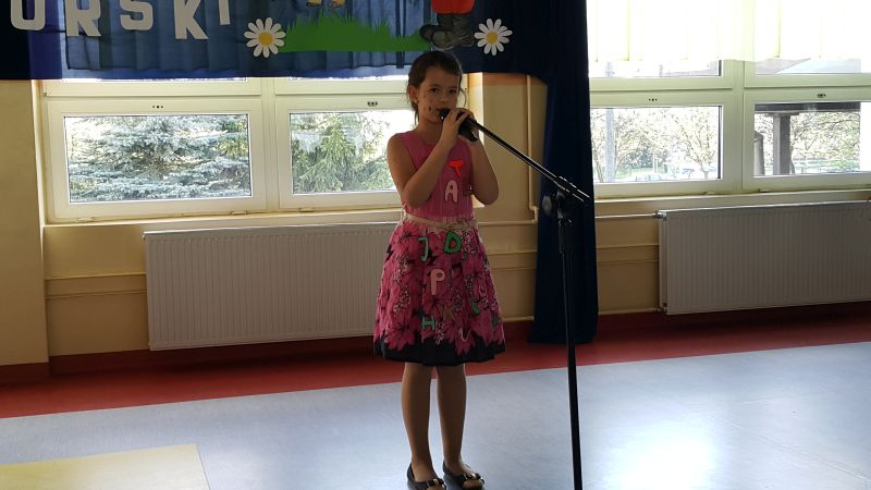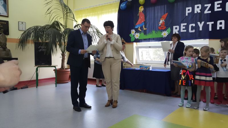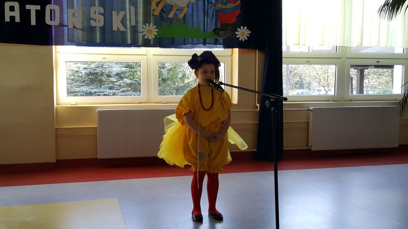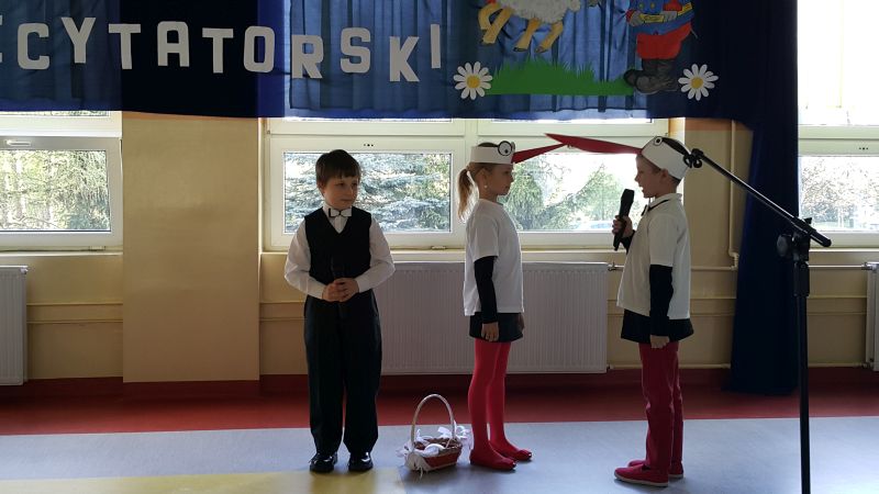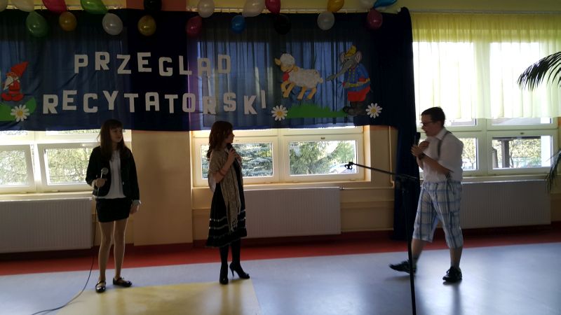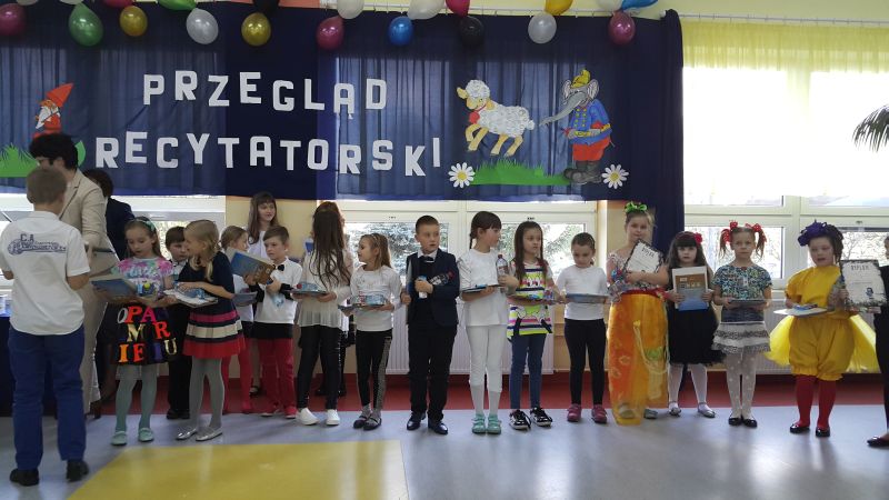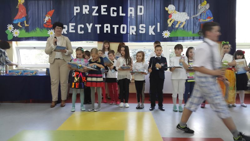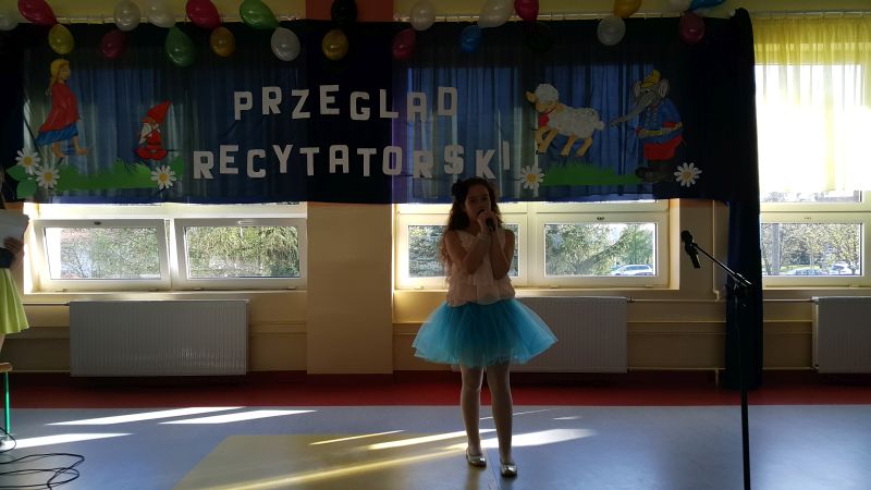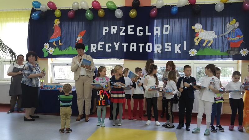 Ujawnianie młodych talentów recytatorskich, pobudzenie aktywności artystycznej, popularyzacja literatury i ożywienie kontaktu z poezją to główne cele, które przyświecały organizacji PRZEGLĄDU RECYTATORSKIEGO. Uczestnicy, przygotowując się do występów, korzystali najczęściej z twórczości Juliana Tuwima, Jana Brzechwy, Marii Konopnickiej, Jerzego Ludwika Kerna czy m.in. Danuty Wawiłow. Prezentacja poezji odbywała się solowo, grupowo, a nawet śpiewająco. Uczniowie przygotowali piękne stroje i rekwizyty. Występy dzieci uświetnił koncert przygotowany przez uczniów Szkoły Muzycznej z Radomska oraz pokaz taneczny grupy dziewcząt. Organizatorami PRZEGLĄDU RECYTATORSKIEGO były: p. Ewelina Jakubczyk, p. Mirosława Ziemba i p. Elżbieta Orlik.