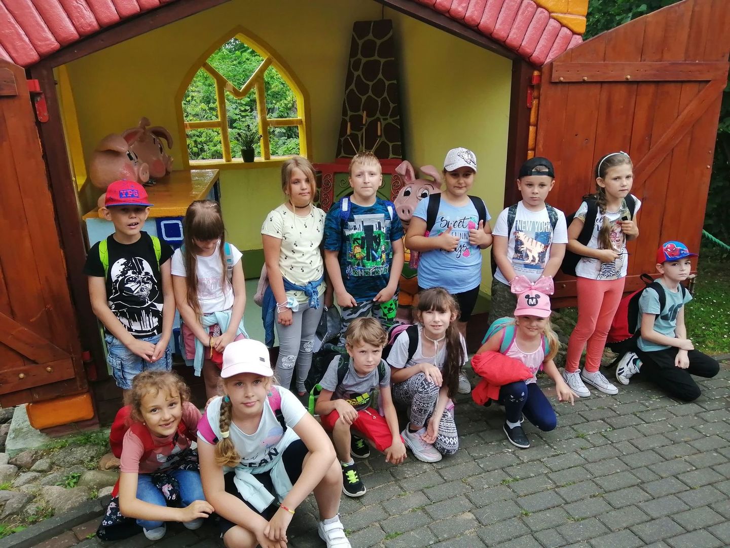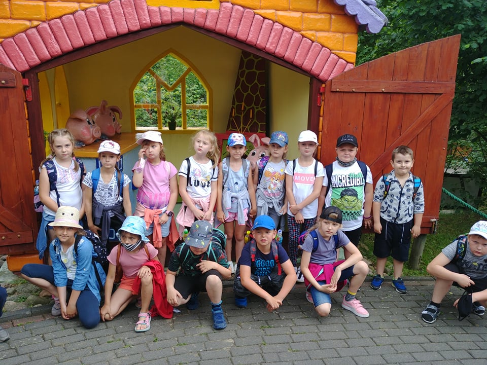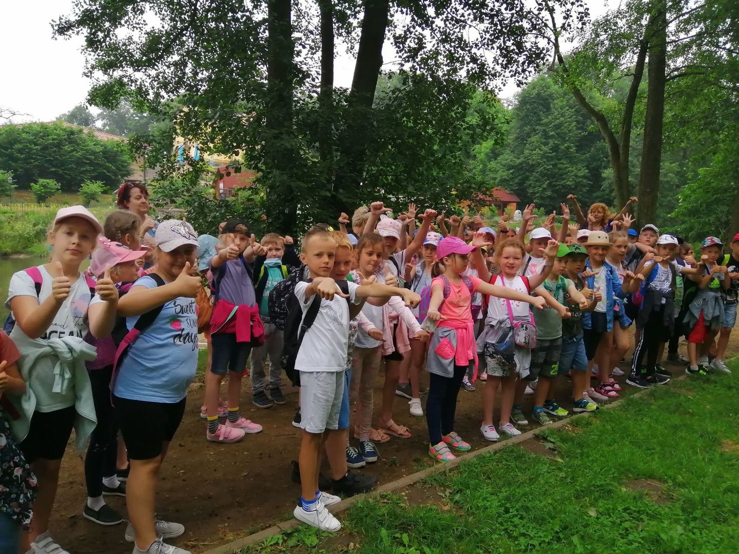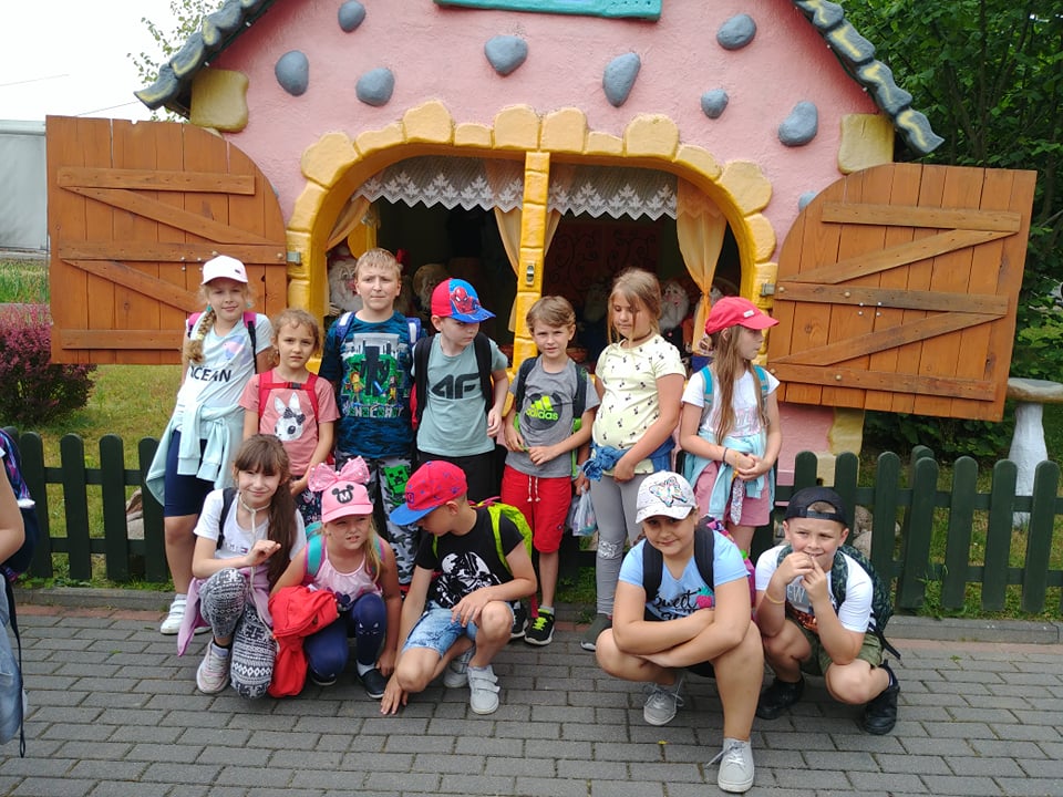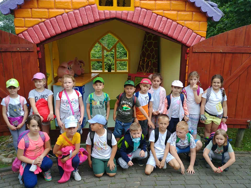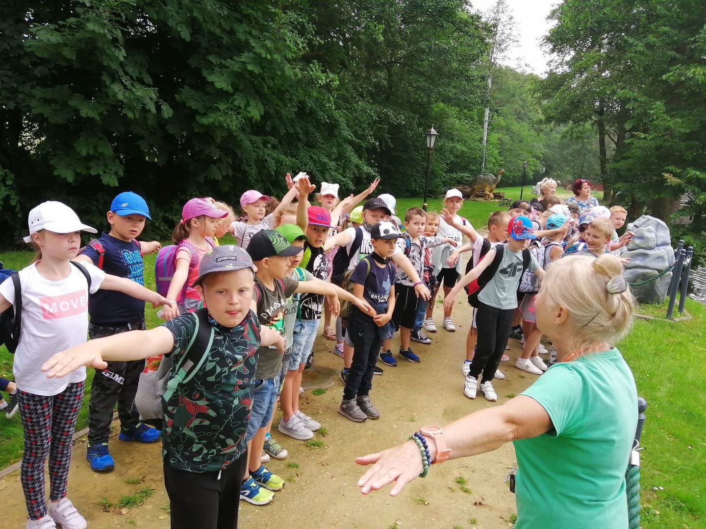 W dniu 23 czerwca 2021r. uczniowie klas I uczestniczyli w wycieczce do Dinoparku w Kołacinku. Wyjazd był sfinansowany ze środków Wojewódzkiego Funduszu Ochrony Środowiska i Gospodarki Wodnej w Łodzi w ramach realizacji projektu "By w przyszłych stuleciach nie utonąć w śmieciach". W trakcie wycieczki uczniowie przeszli z przewodnikiem ścieżką ery mezozoicznej. Zobaczyli figury dinozaurów w naturalnej wielkości oraz dowiedzieli się wielu ciekawostek z życia tych zwierząt. Zwiedzili wystawę geologiczno-paleontologiczną. Uczestniczyli również w spacerze Bajkową Ścieżką, gdzie pani przewodnik przypomniała treść i morały płynące z bajek i baśni. Podczas wycieczki nie zabrakło też wspaniałej zabawy w figloraju oraz zakupu pamiątek w sklepiku. Po okresie zdalnej nauki była to wspaniała chwila na integrację pierwszaków. Wszyscy wrócili zadowoleni i uśmiechnięci.