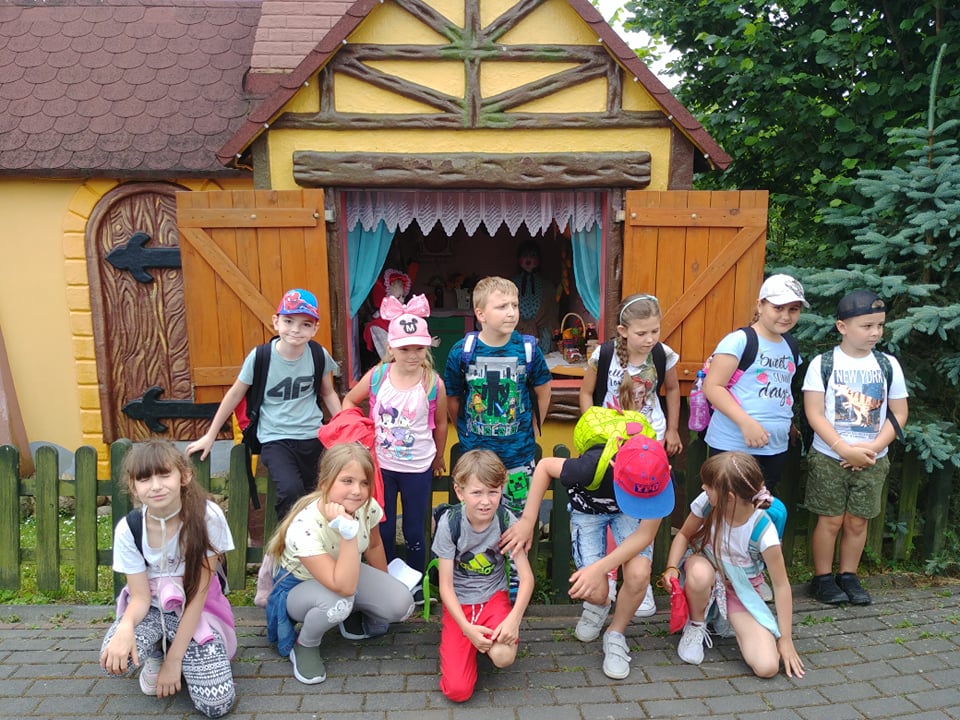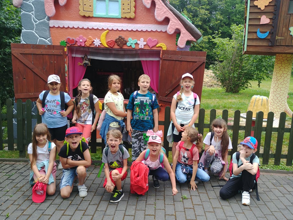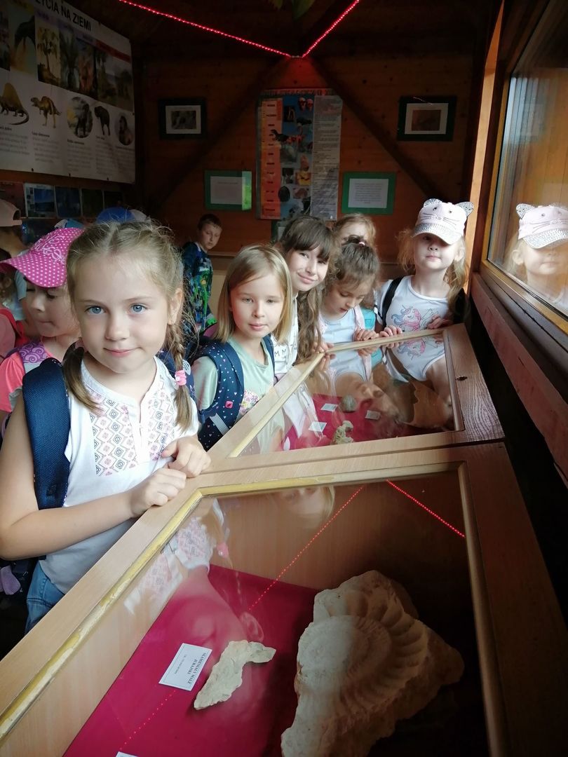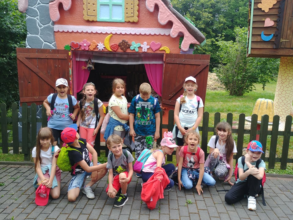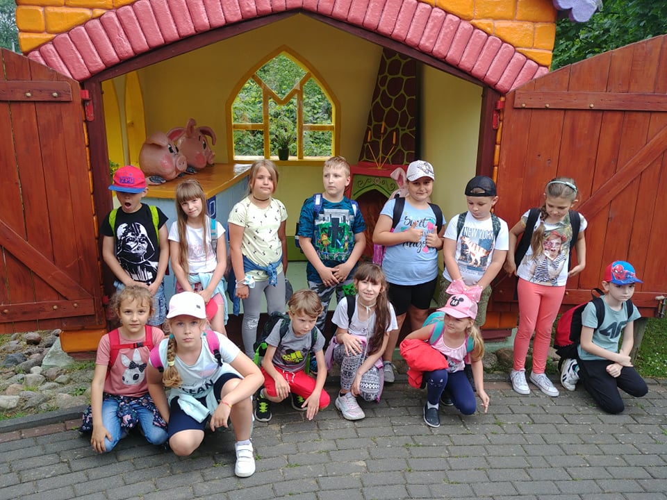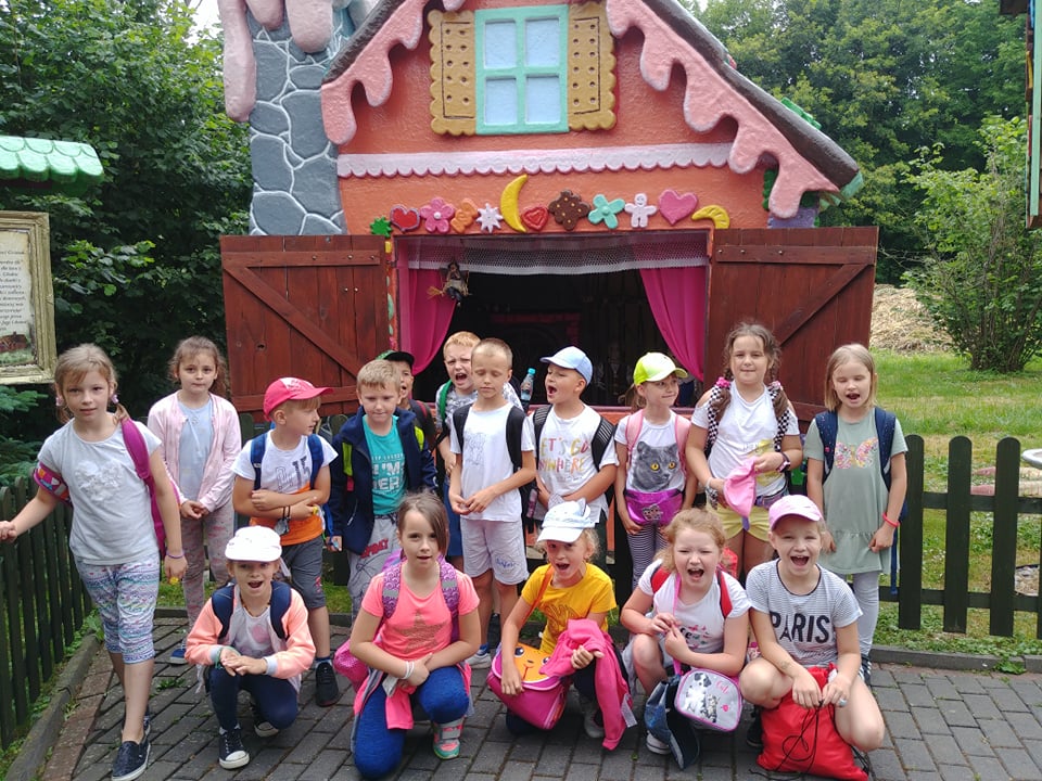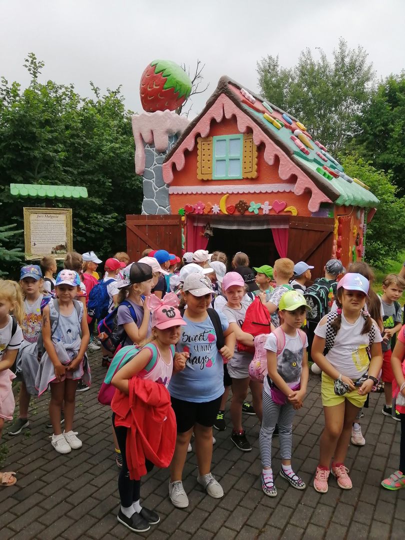 W dniu 23 czerwca 2021r. uczniowie klas I uczestniczyli w wycieczce do Dinoparku w Kołacinku. Wyjazd był sfinansowany ze środków Wojewódzkiego Funduszu Ochrony Środowiska i Gospodarki Wodnej w Łodzi w ramach realizacji projektu "By w przyszłych stuleciach nie utonąć w śmieciach". W trakcie wycieczki uczniowie przeszli z przewodnikiem ścieżką ery mezozoicznej. Zobaczyli figury dinozaurów w naturalnej wielkości oraz dowiedzieli się wielu ciekawostek z życia tych zwierząt. Zwiedzili wystawę geologiczno-paleontologiczną. Uczestniczyli również w spacerze Bajkową Ścieżką, gdzie pani przewodnik przypomniała treść i morały płynące z bajek i baśni. Podczas wycieczki nie zabrakło też wspaniałej zabawy w figloraju oraz zakupu pamiątek w sklepiku. Po okresie zdalnej nauki była to wspaniała chwila na integrację pierwszaków. Wszyscy wrócili zadowoleni i uśmiechnięci.