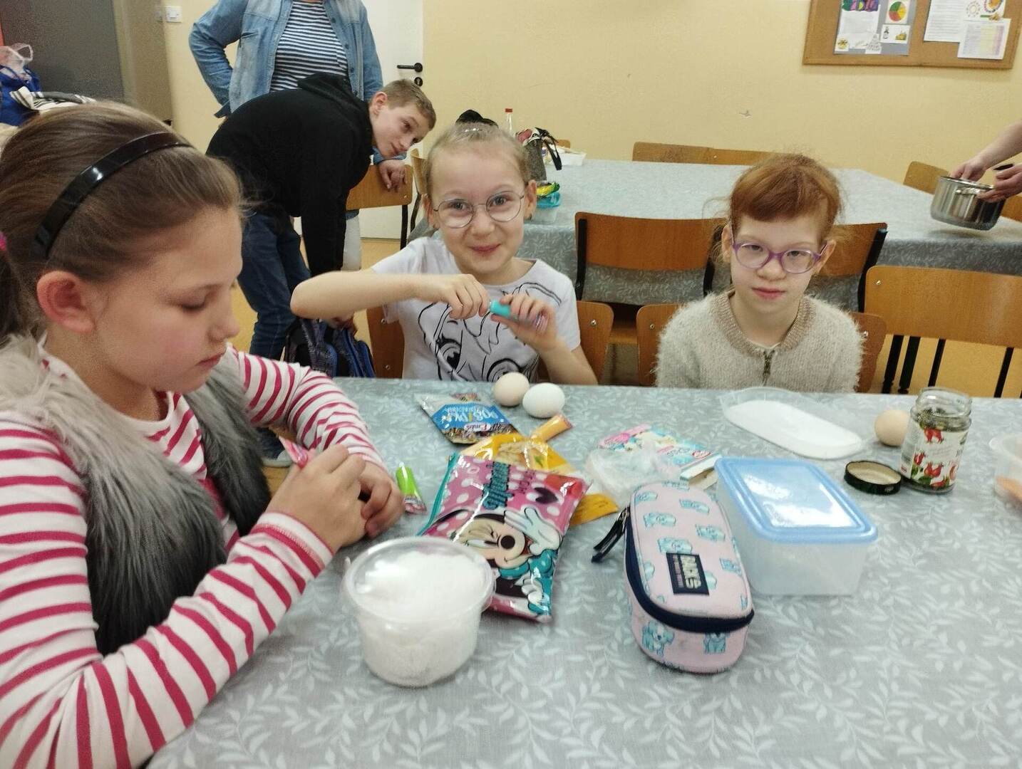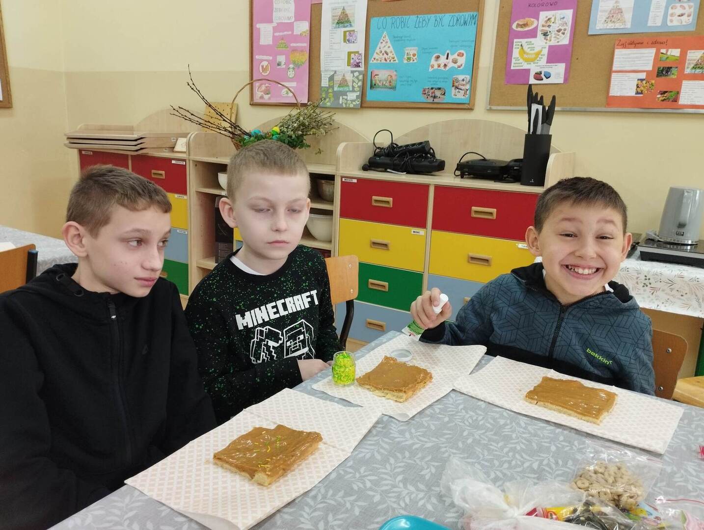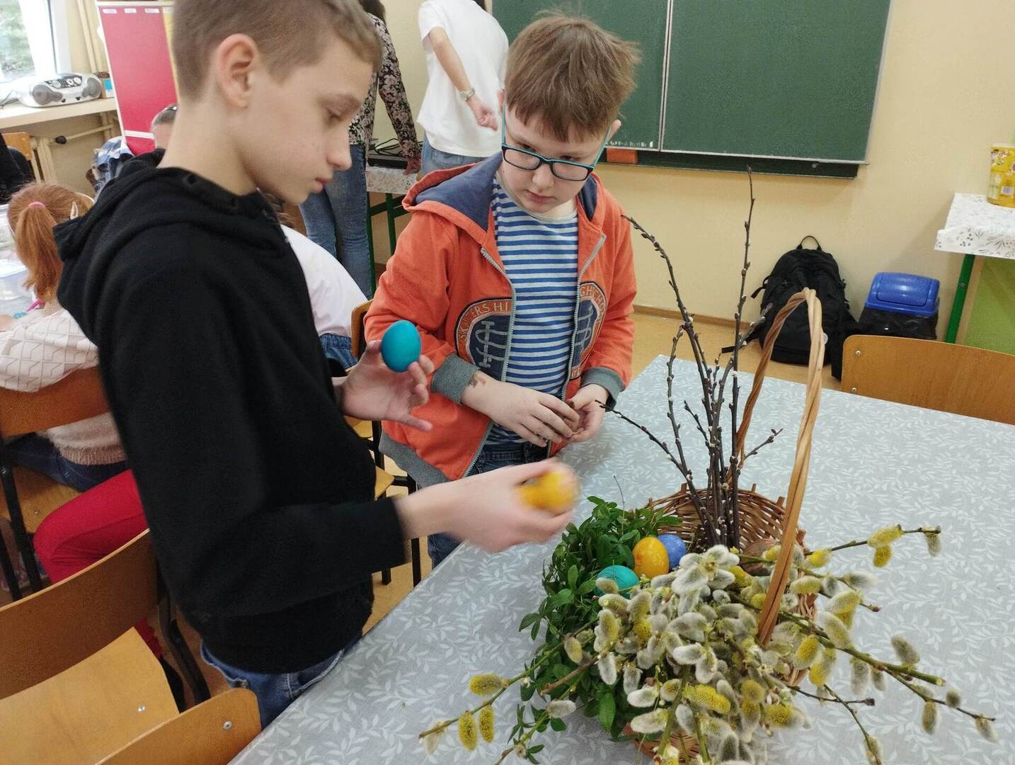 Dzisiaj w naszej szkole odbyły się warsztaty wielkanocne. Uczniowie mieli sporo pracy. Chętnie przystąpili do wykonania zadań specjalnych związanych ze świętami Wielkiej Nocy. Malowali pisanki, dekorowali pysznego mazurka oraz zrobili wielkanocne palemki. Czas minął wszystkim bardzo miło i przyjemnie, a także wprowadził w świąteczny nastrój.