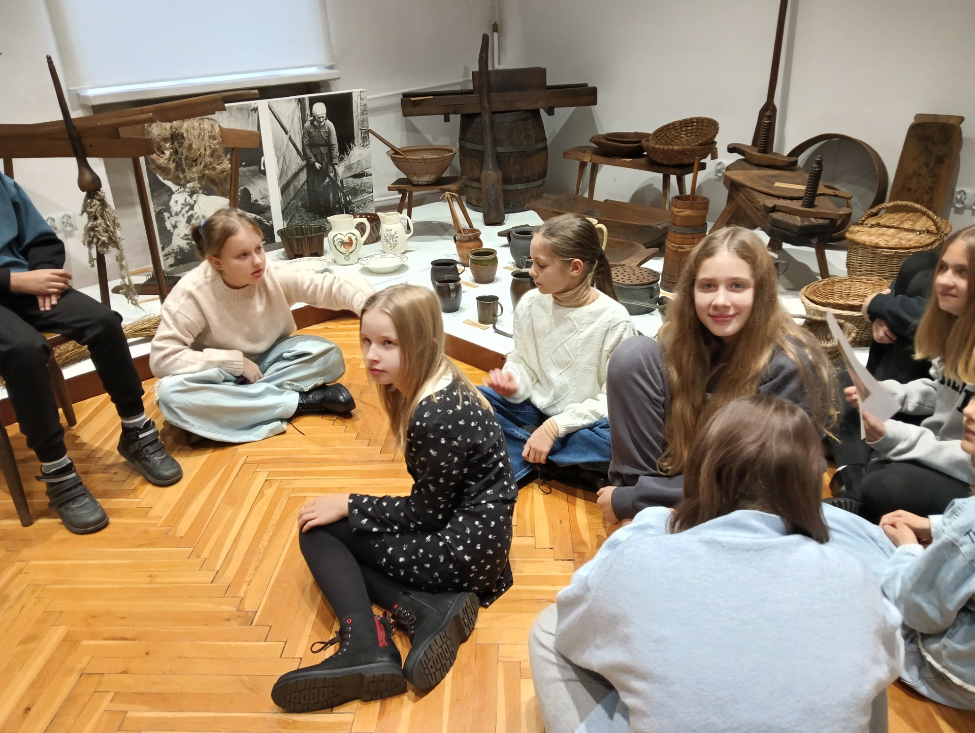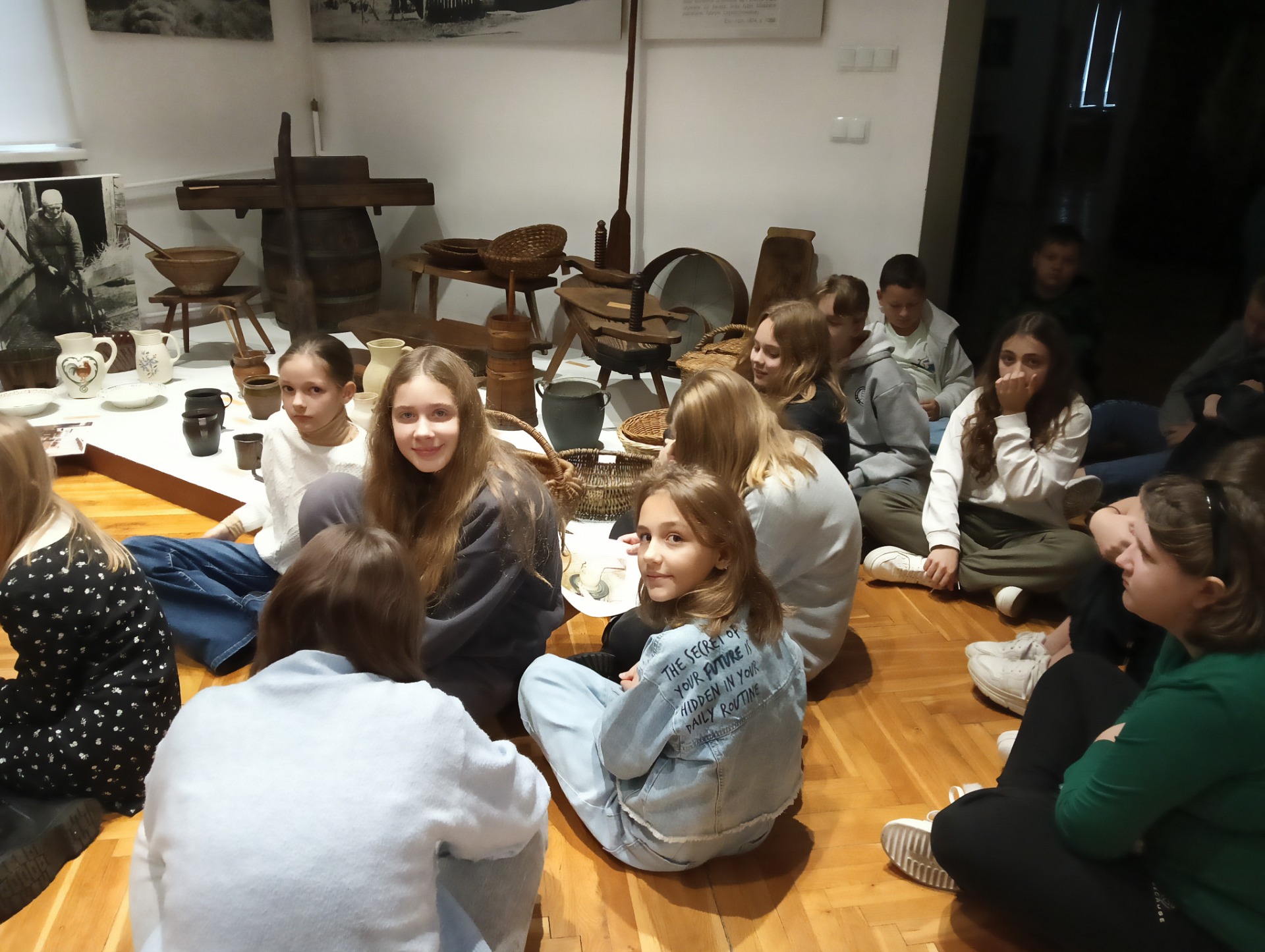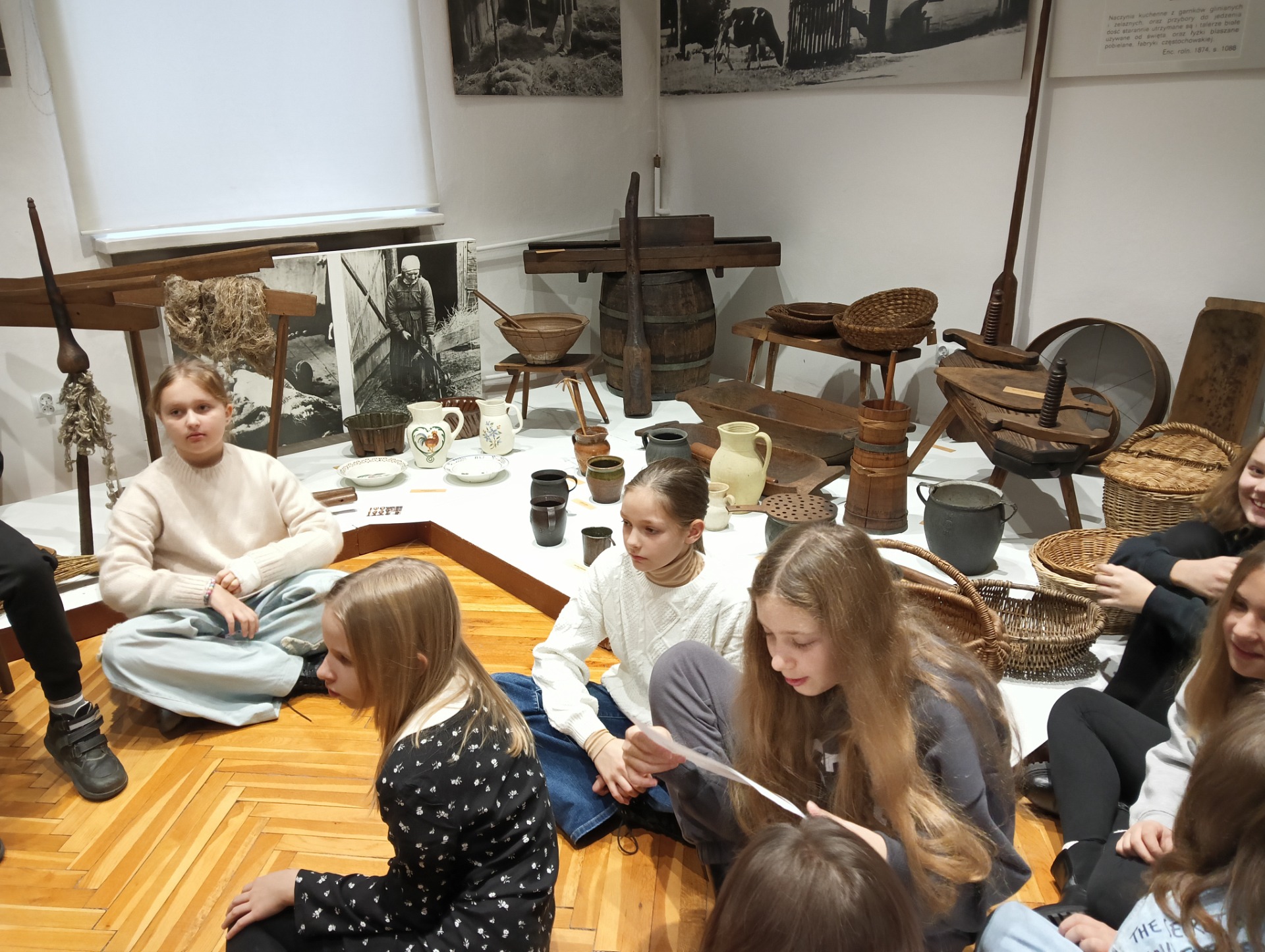 oraz wzięli aktywny udział w lekcji muzealnej Ginące zawody i dawne rzemiosła ludowe. Dowiedzieli się, czym zajmowali się: kowal, cieśla, bednarz, kołodziej, garncarz; jakich narzędzi używali oraz co powstawało w efekcie ich pracy.