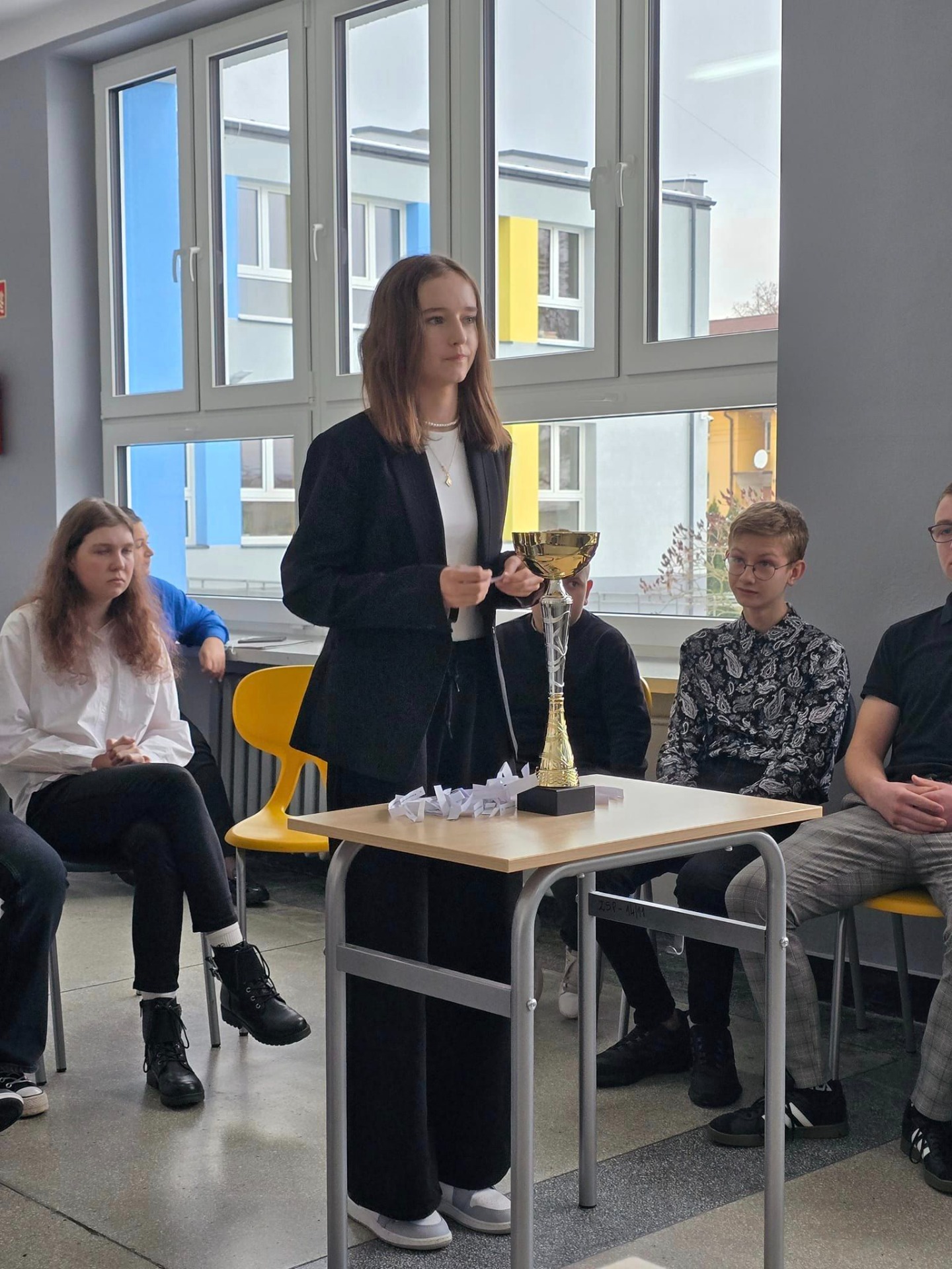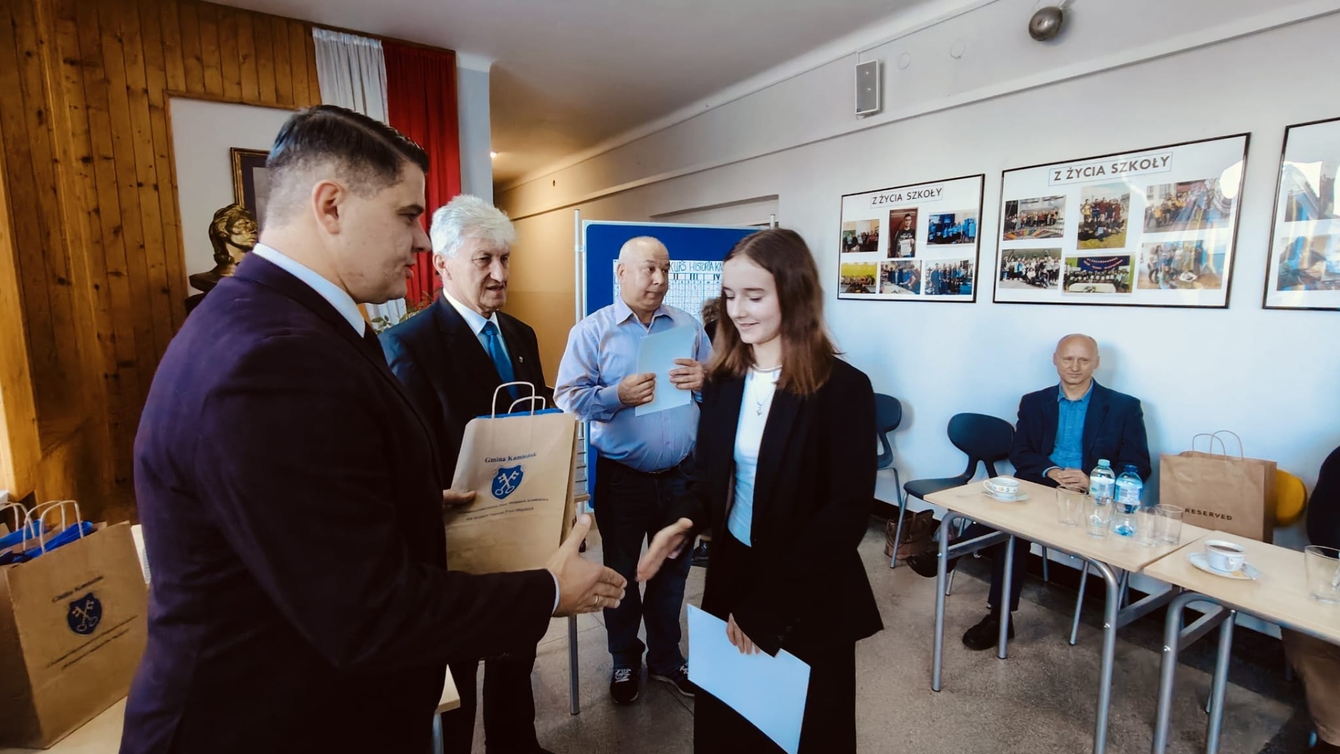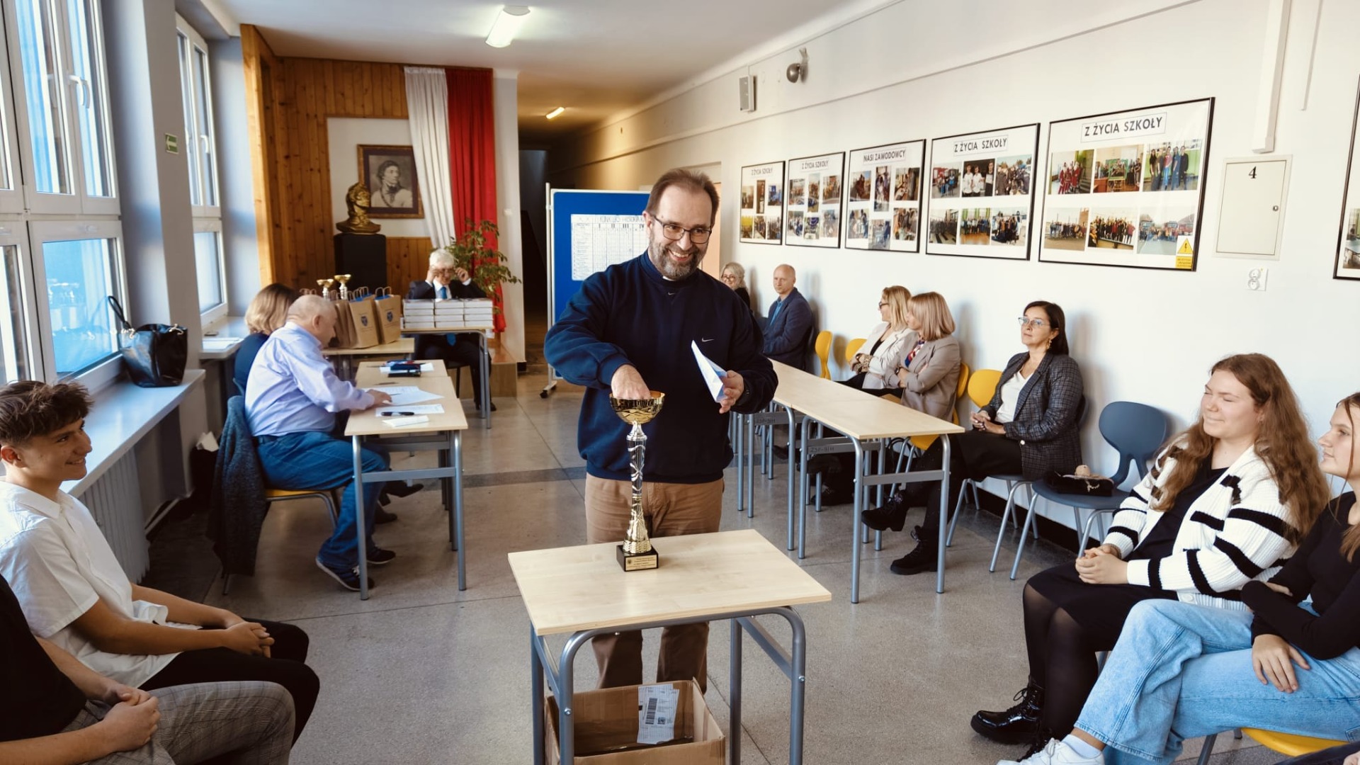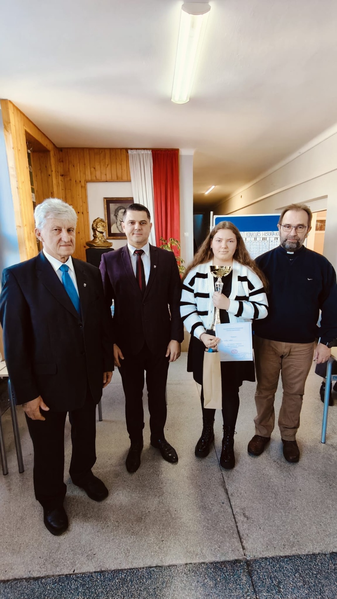 Dzisiaj, 23 listopada 2024 r. odbył się XXIII Konkurs ,,Historia Kamieńska", zorganizowany i przeprowadzony przez Stowarzyszenie Przyjaciół Miasta Kamieńska. Po eliminacjach szkolnych w finale konkursu rywalizowało 12 uczniów ze szkół z terenu Gminy Kamieńsk. Naszą szkołę reprezentowali: Hubert Madej, Oliwia Madej, Maja Michałowska, Konrad Tarnowski, Lena Gnyp, Wiktor Semeniuk. Każdy z uczestników konkursu odpowiadał na 12 pytań wylosowanych przez siebie. Pytania konkursowe dotyczyły wydarzeń i osób z zakresu ponad 700-letnich dziejów miasta Kamieńska. Poziom konkursu był wysoki, uczniowie wykazali się doskonałą wiedzą. Na pierwszym miejscu sklasyfikowano Lenę Gnyp z PSP im. Jana Pawła II w Kamieńsku (24 pkt), drugie miejsce zajął Hubert Madej z PSP im. Jana Pawła II w Kamieńsku (23,25 pkt), na trzecim miejscu sklasyfikowano Konrada Tarnowskiego z PSP im. Jana Pawła II w Kamieńsku (22 pkt) i Dominika Gałwę z ZSP im. Tadeusza Kościuszki w Kamieńsku (22 pkt). Wszyscy uczestnicy konkursu otrzymali nagrody ufundowane przez: Stowarzyszenie Przyjaciół Miasta Kamieńska, Burmistrza Kamieńska i indywidualnie przez członków SPMK.