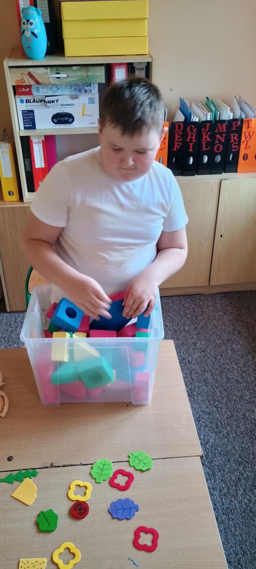 W ramach zajęć korekcyjno-kompensacyjnych przeprowadzono cykl spotkań mających na celu poprawę zdolności manualnych, takich jak chwytanie,manipulowanie przedmiotami, pisanie czy rysowanie. Zajęcia w ramach terapii ręki miały na celu poprawę siły mięśniowej, koordynacji, precyzji ruchów oraz percepcji sensorycznej. Uczniowie z wielkim zaangażowaniem wykonywali zadania, a tym samym kształtowali zdolności manualne dłoni i palców. Terapia ręki to również kluczowy proces wspierający rozwój samodzielności u dzieci.