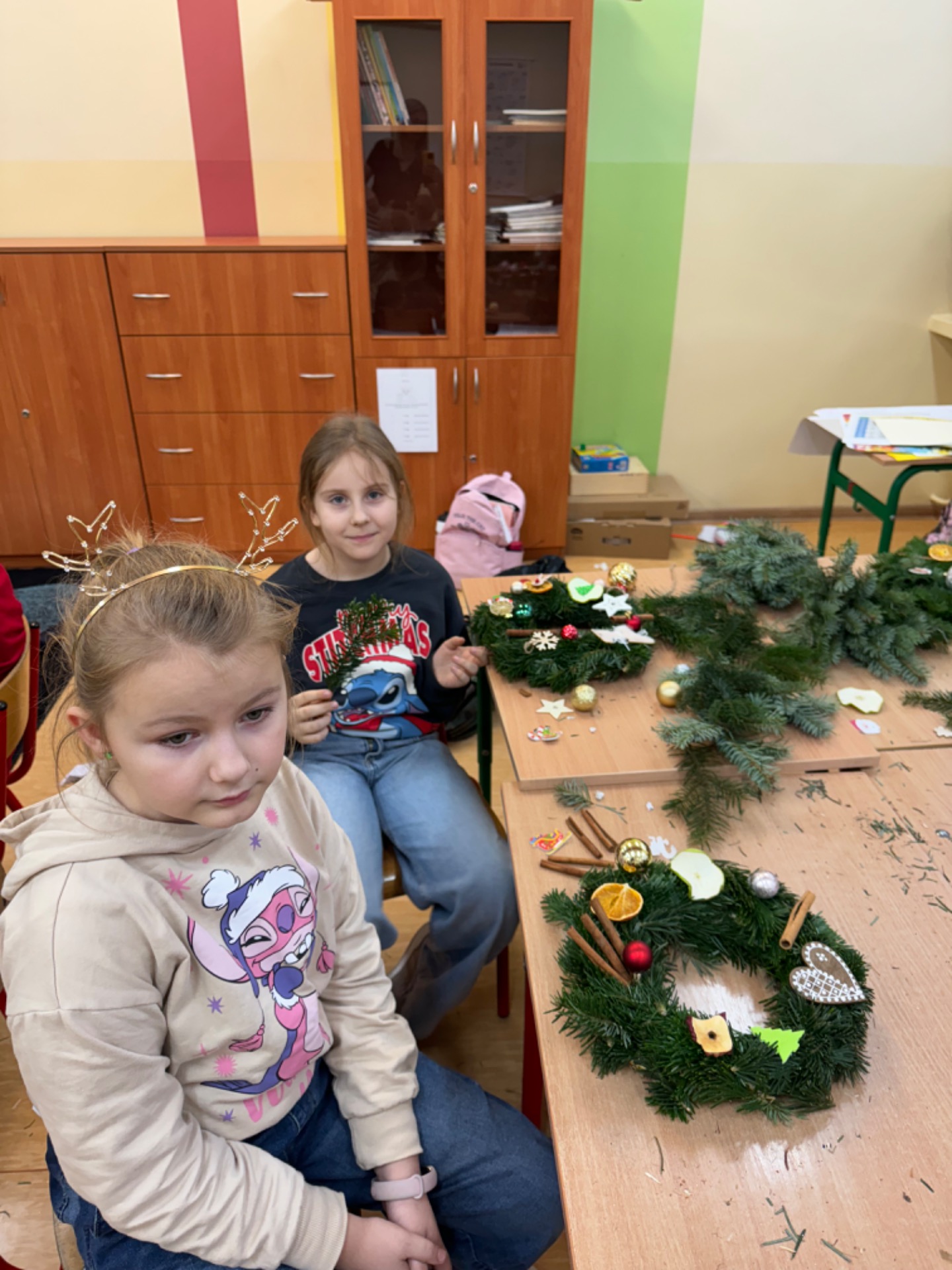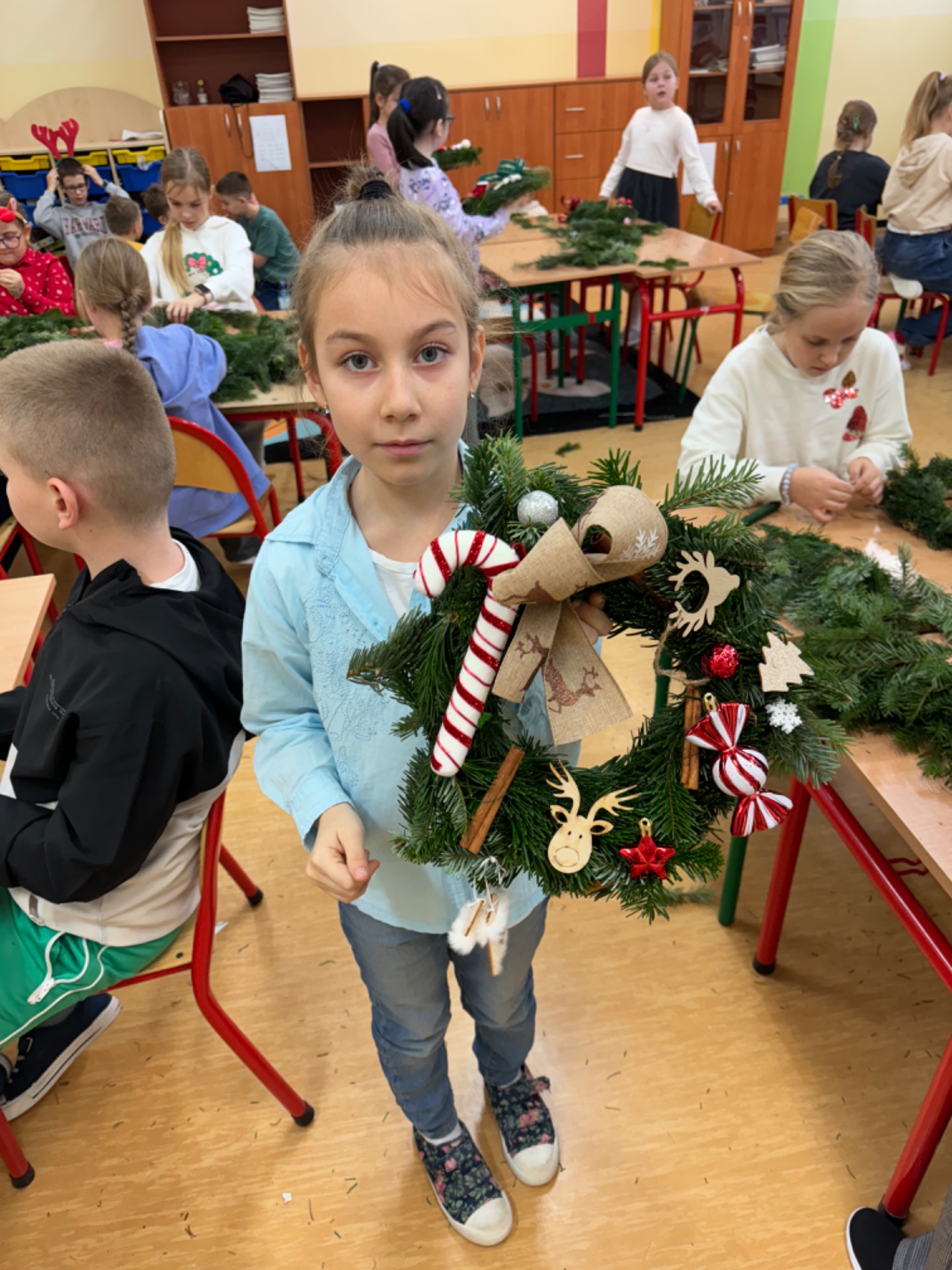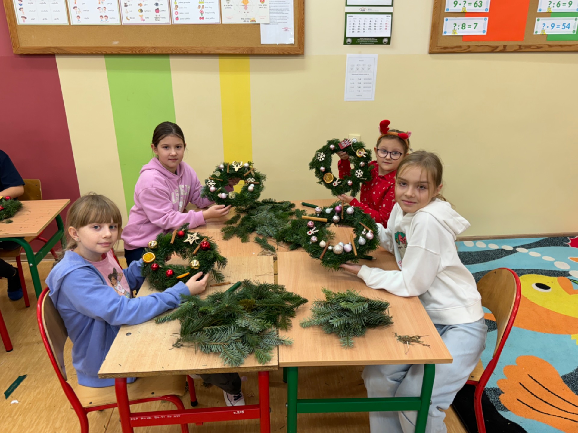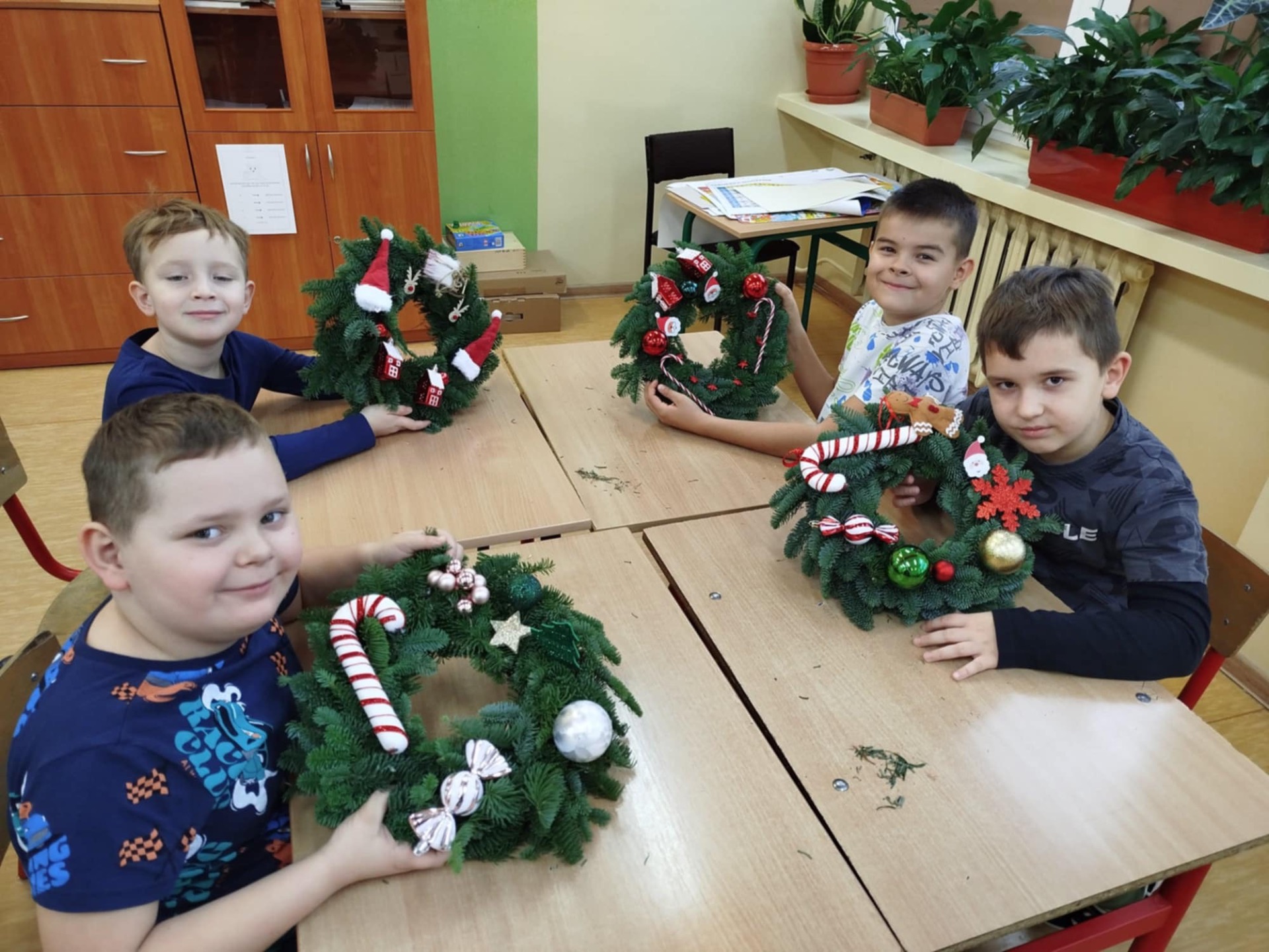 Dziś uczniowie edukacji wczesnoszkolnej mieli okazję uczestniczyć w wyjątkowych warsztatach tworzenia wianków bożonarodzeniowych. Zajęcia miały na celu rozwijanie wyobraźni, zdolności manualnych oraz umiejętności współpracy w grupie.