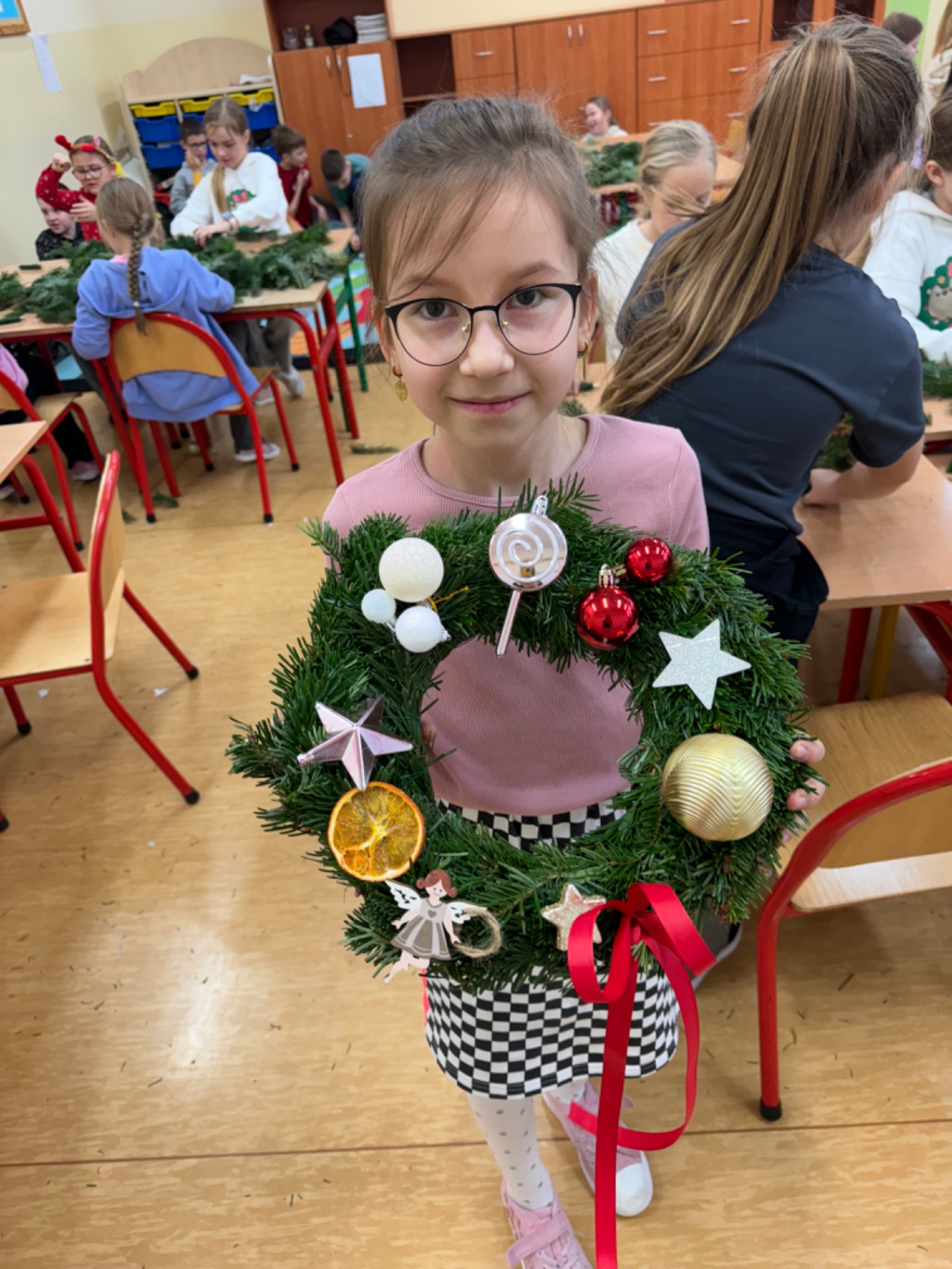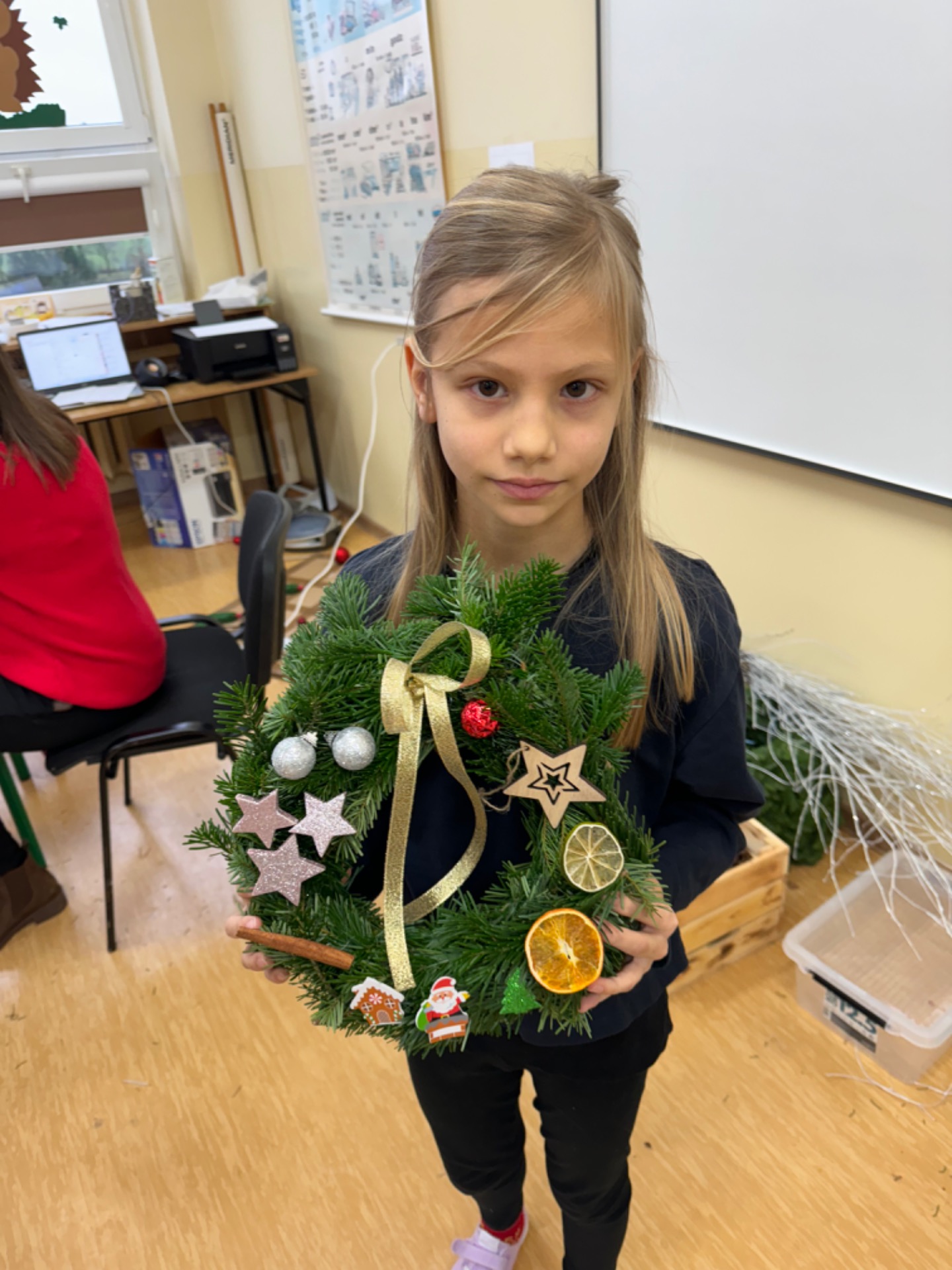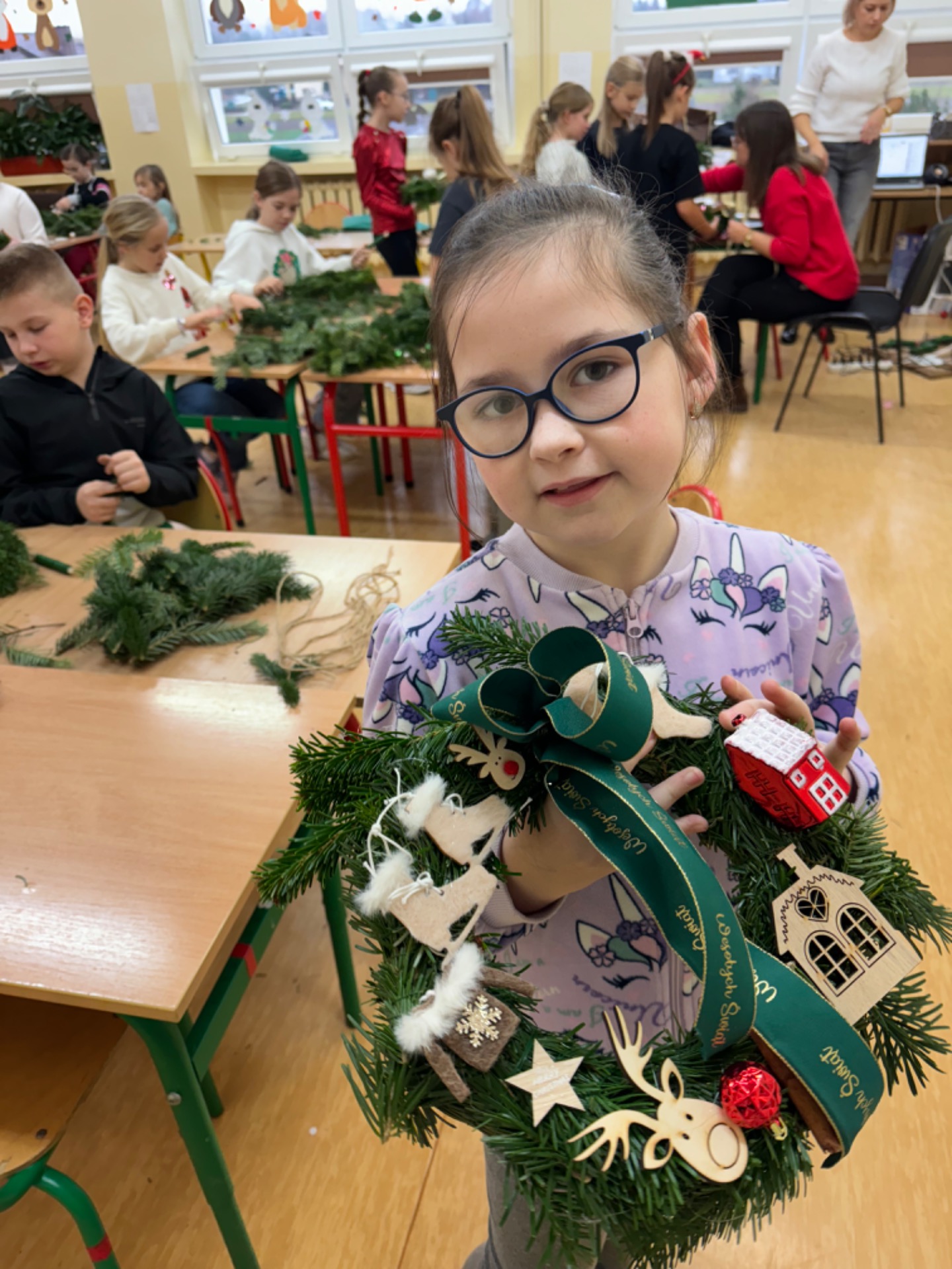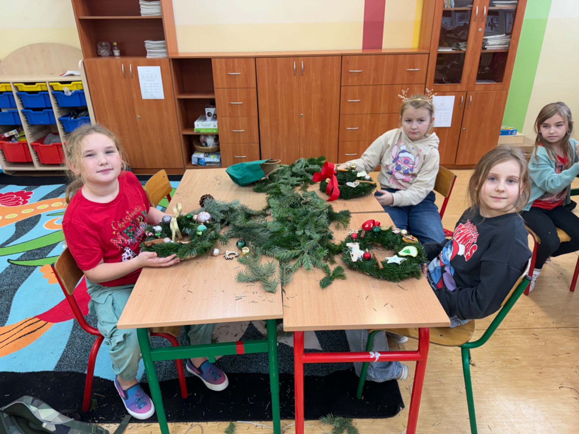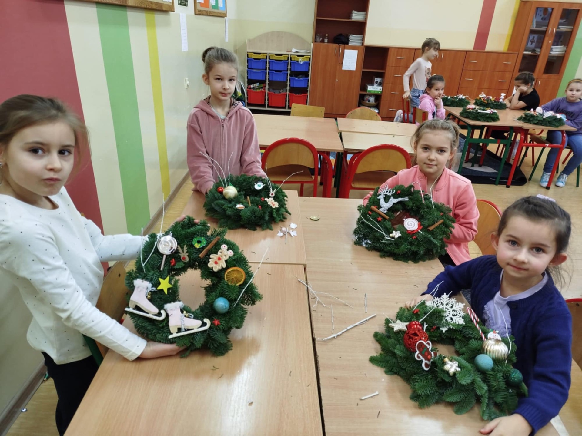 Dziś uczniowie edukacji wczesnoszkolnej mieli okazję uczestniczyć w wyjątkowych warsztatach tworzenia wianków bożonarodzeniowych. Zajęcia miały na celu rozwijanie wyobraźni, zdolności manualnych oraz umiejętności współpracy w grupie.
