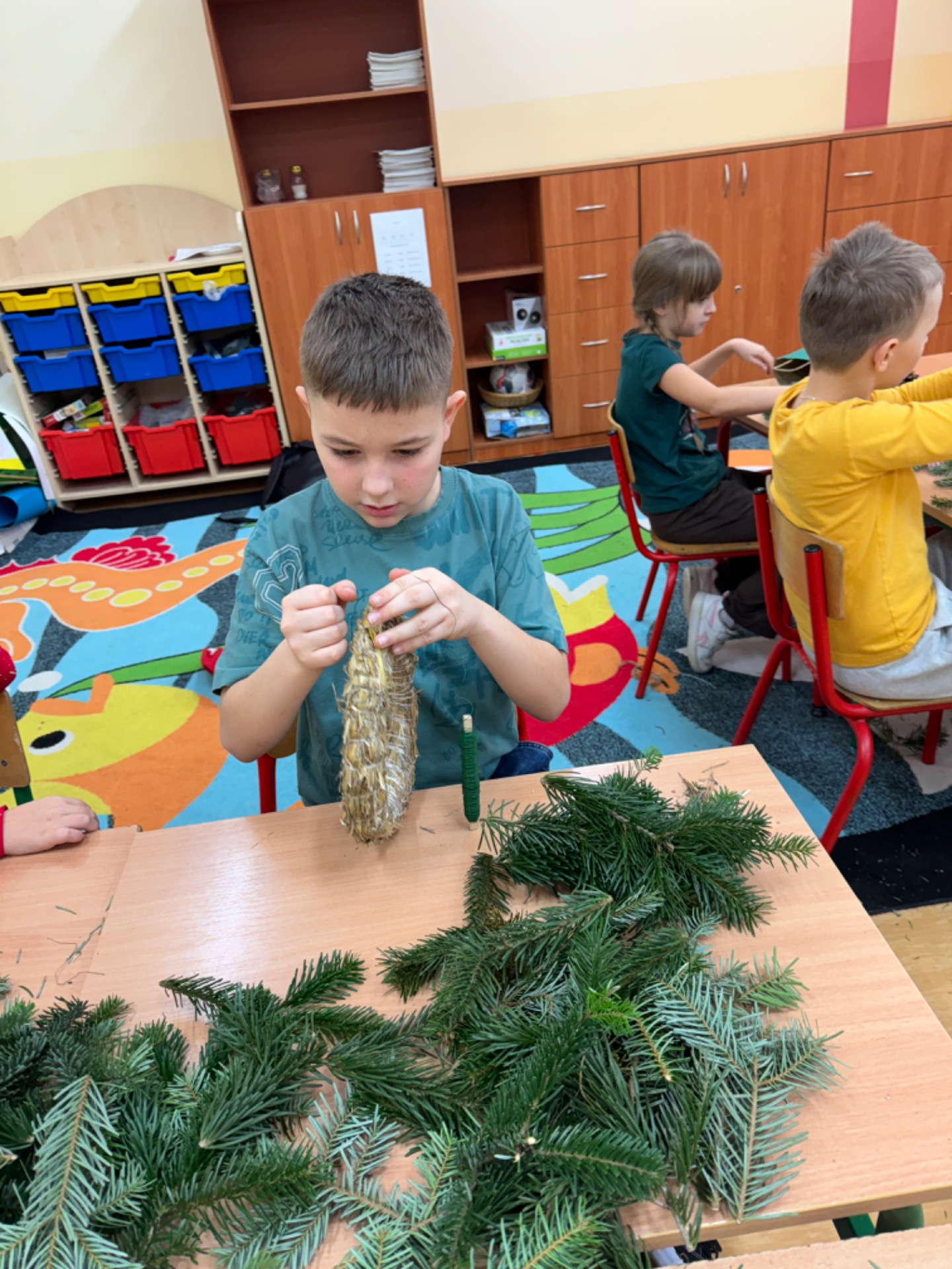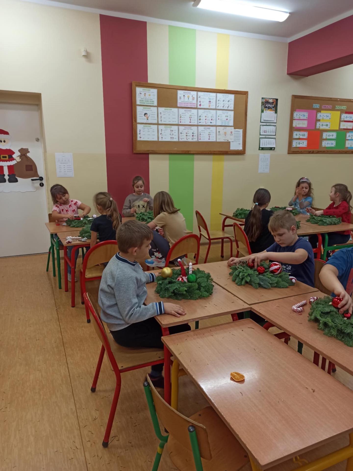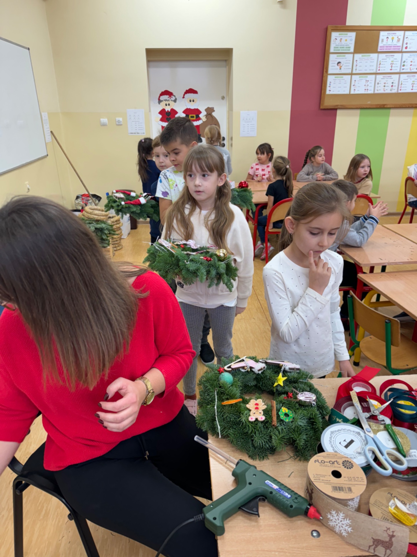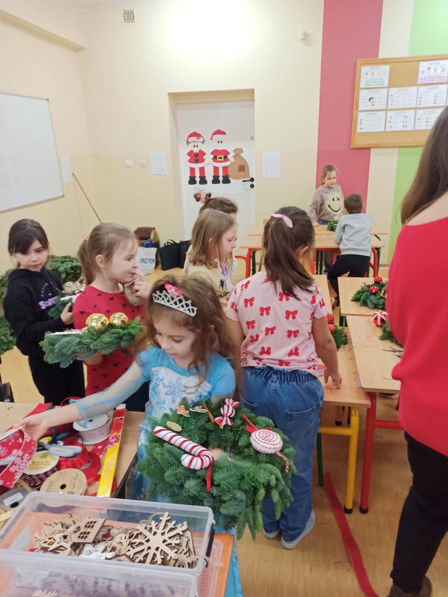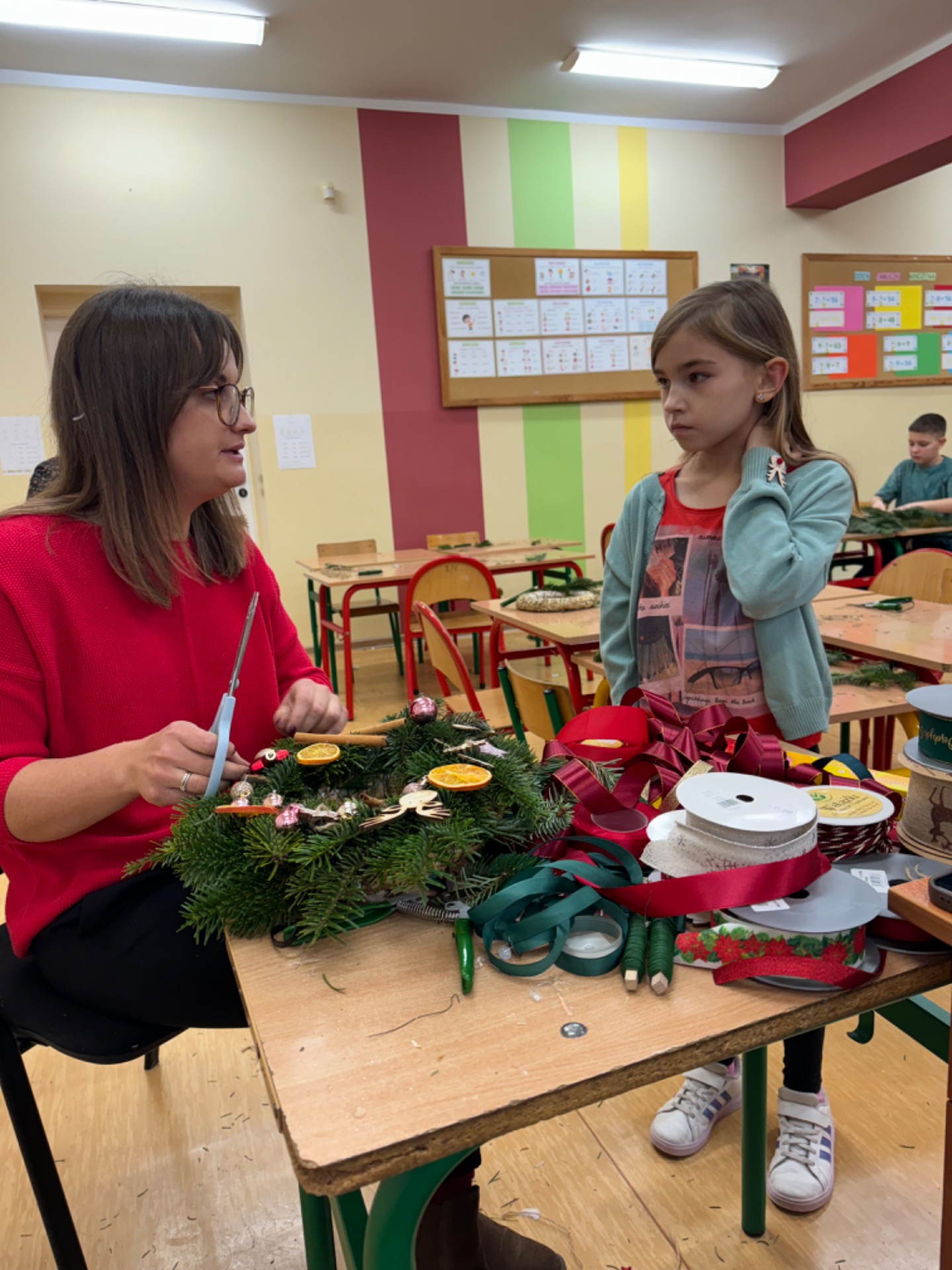 Dziś uczniowie edukacji wczesnoszkolnej mieli okazję uczestniczyć w wyjątkowych warsztatach tworzenia wianków bożonarodzeniowych. Zajęcia miały na celu rozwijanie wyobraźni, zdolności manualnych oraz umiejętności współpracy w grupie.