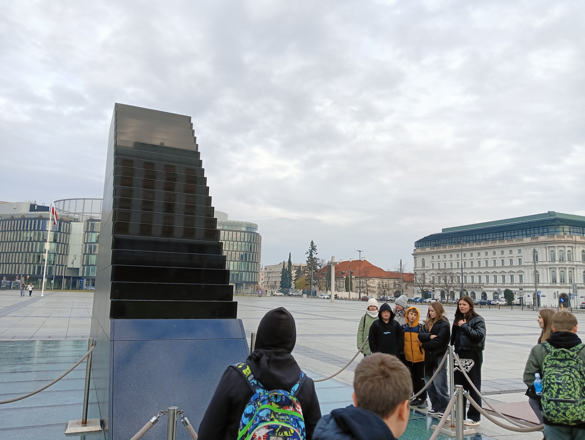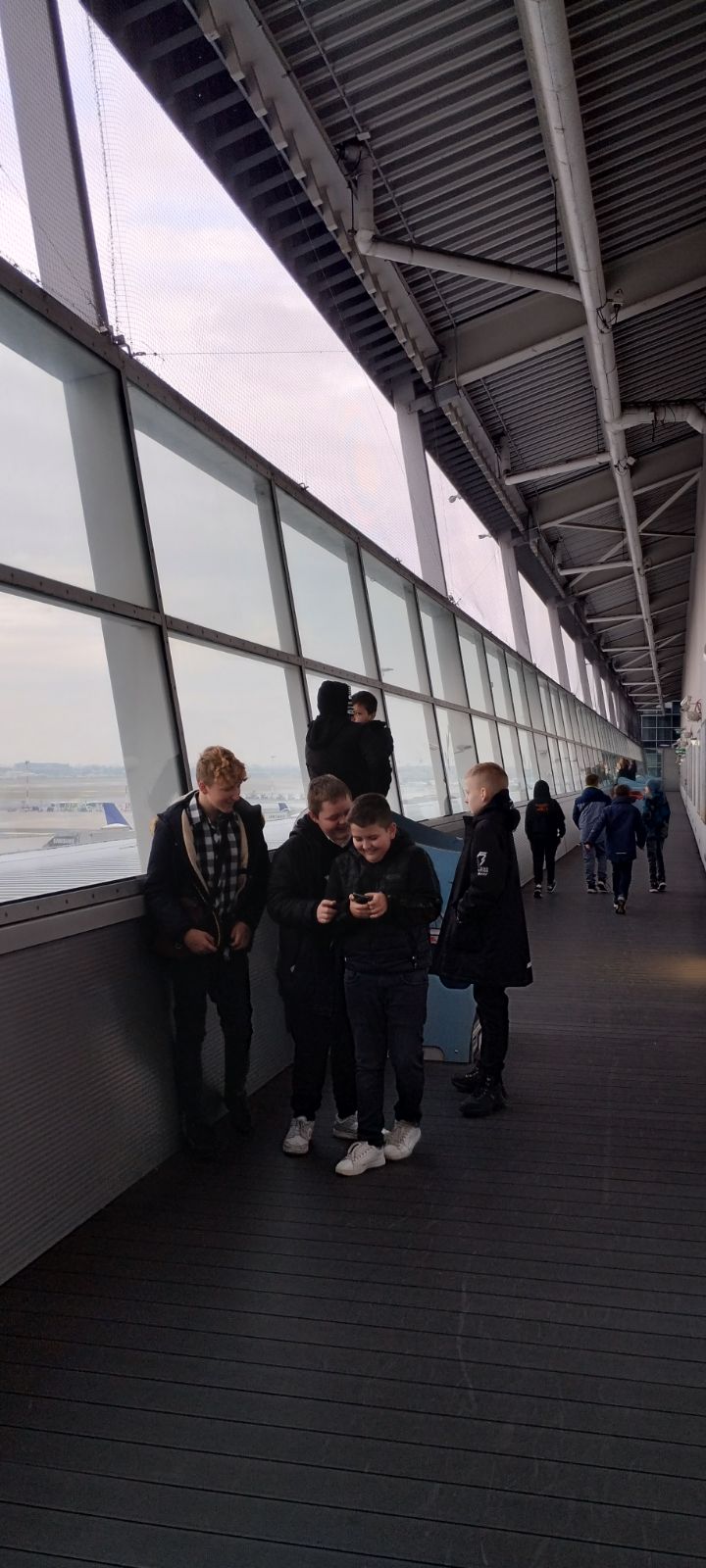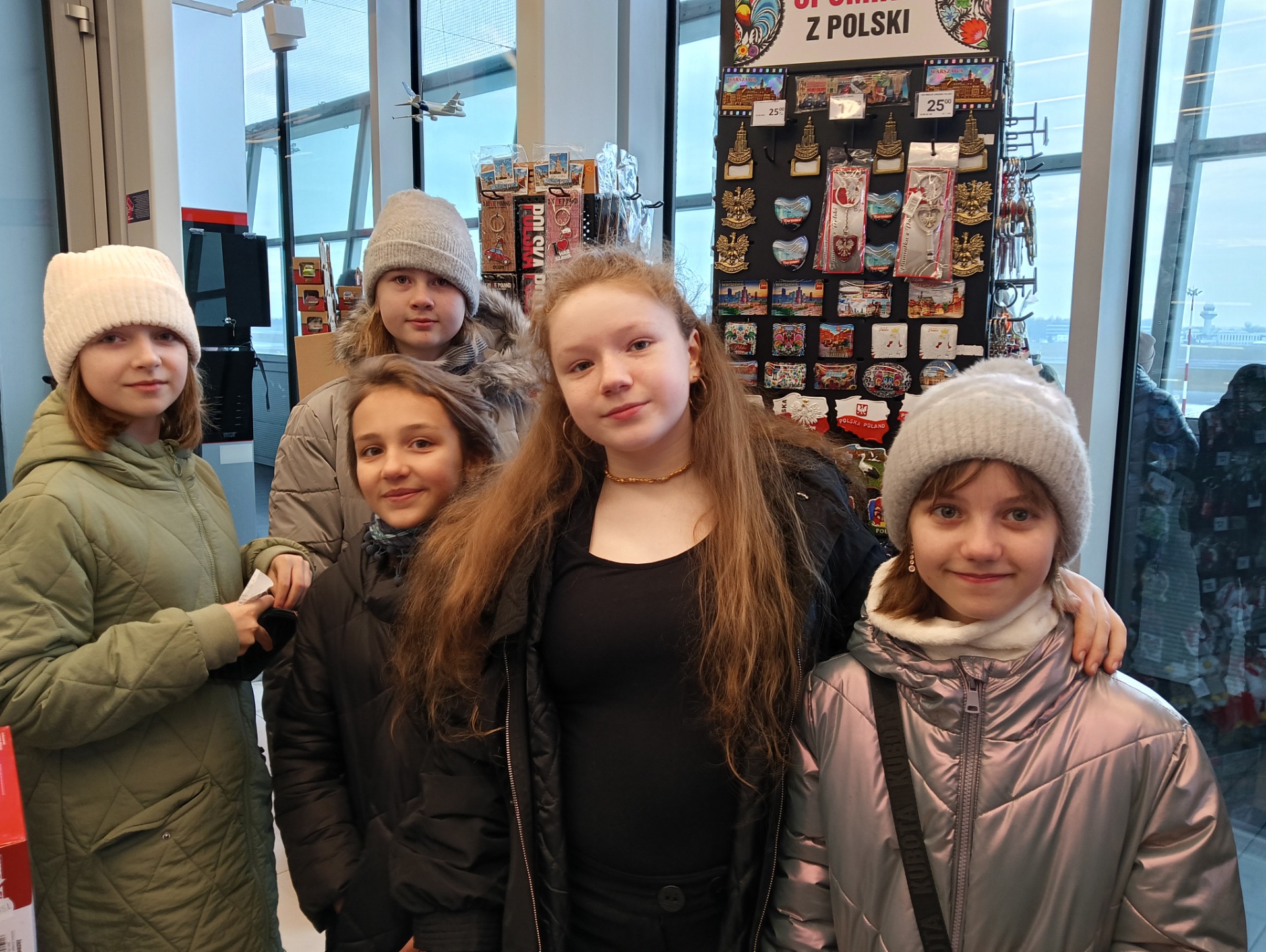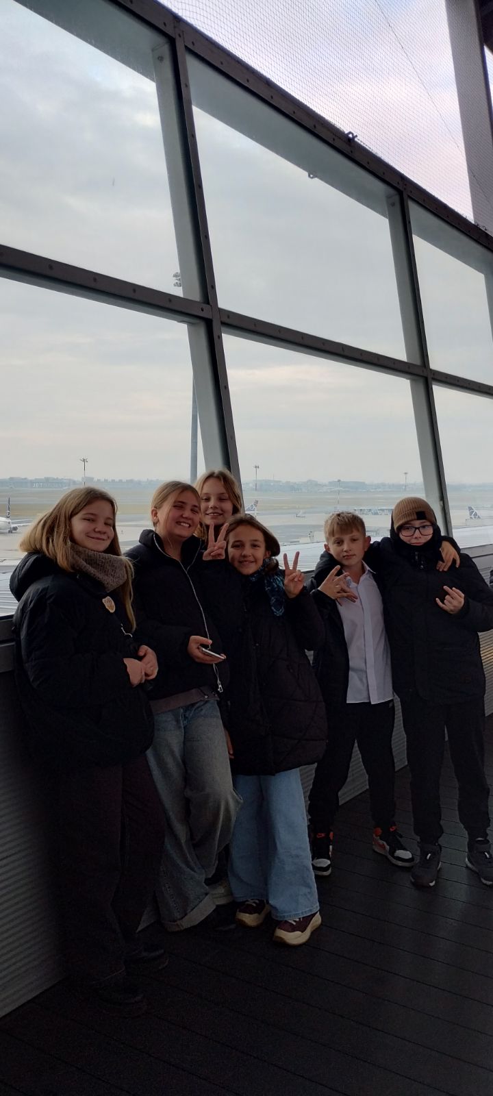 Pierwszym punktem naszej wycieczki był pobyt na Lotnisku im. F. Chopina. Uczniowie z tarasu widokowego obserwowali startujące i lądujące samoloty, robili pamiątkowe zdjęcia, kupowali pamiątki i planowali lot do Budapesztu, aby zobaczyć miejsca związane z omawianą lekturą Chłopcy z Placu Broni.