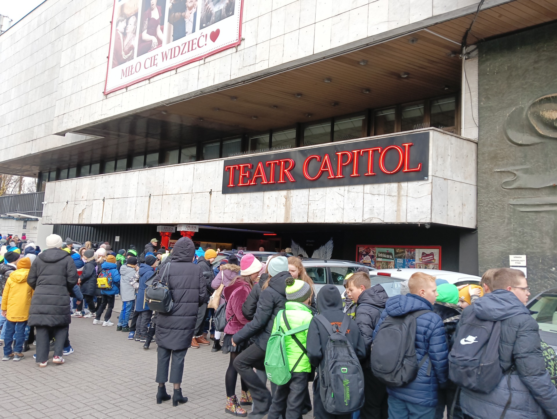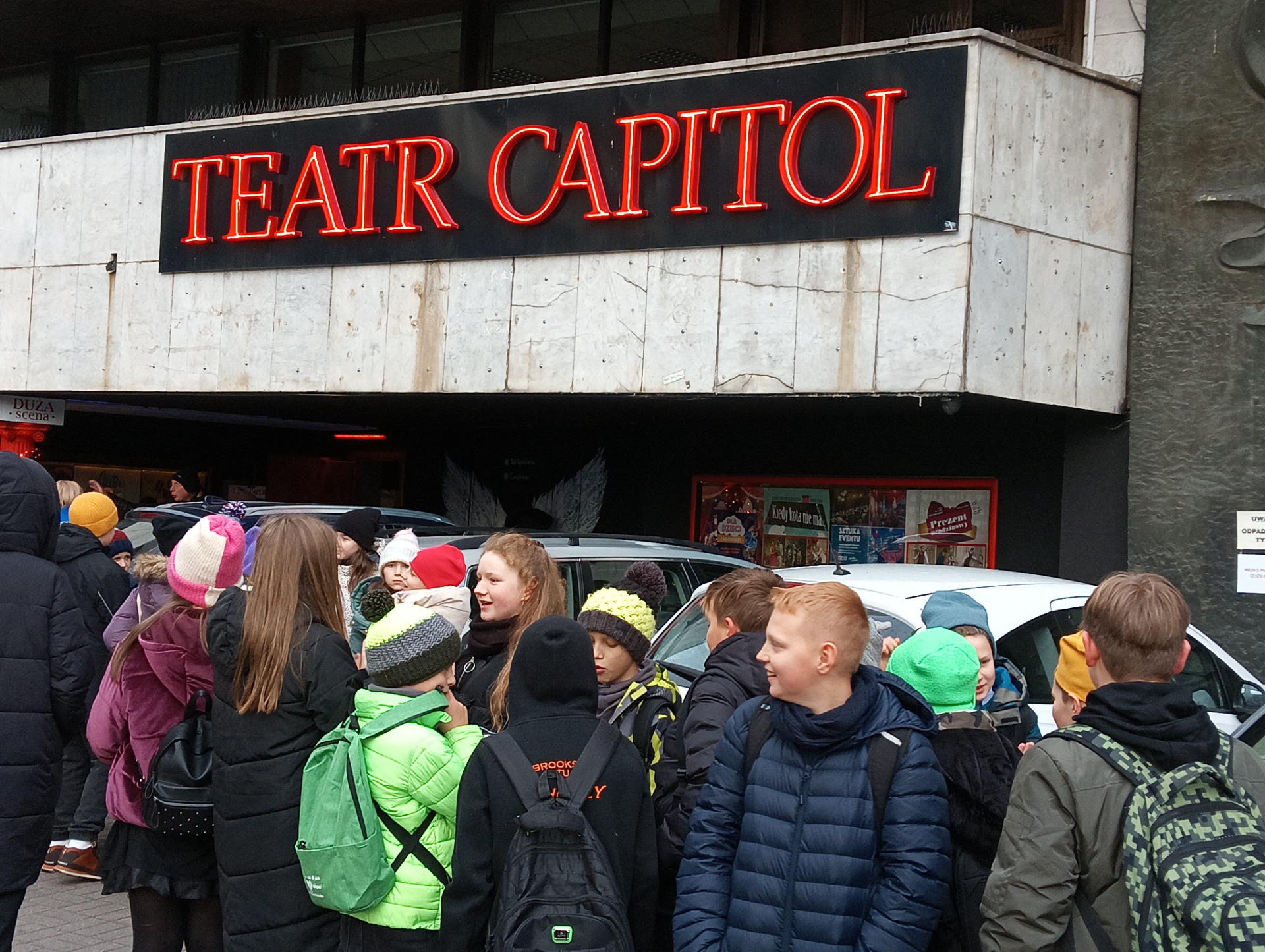 Spacerkiem, podziwiając uroki naszej stolicy, przeszliśmy do teatru Capitol, w którym obejrzeliśmy spektakl na motywach książki Jana Brzechwy pt. Akademia pana Kleksa. Niezwykłe widowisko teatralne przeniosło nas do magicznego świata akademii, krainy pełnej przygód, niesamowitych postaci i nieoczekiwanych zwrotów akcji. Multimedialne efekty specjalne, spektakularne projekcje, interaktywne elementy, aranżacje muzyczne znanych utworów jak: Meluzyna, Kaczka dziwaczka czy Dzik jest dziki sprawiły, że mogliśmy doświadczyć niezapomnianej przygody, która łączy pokolenia.