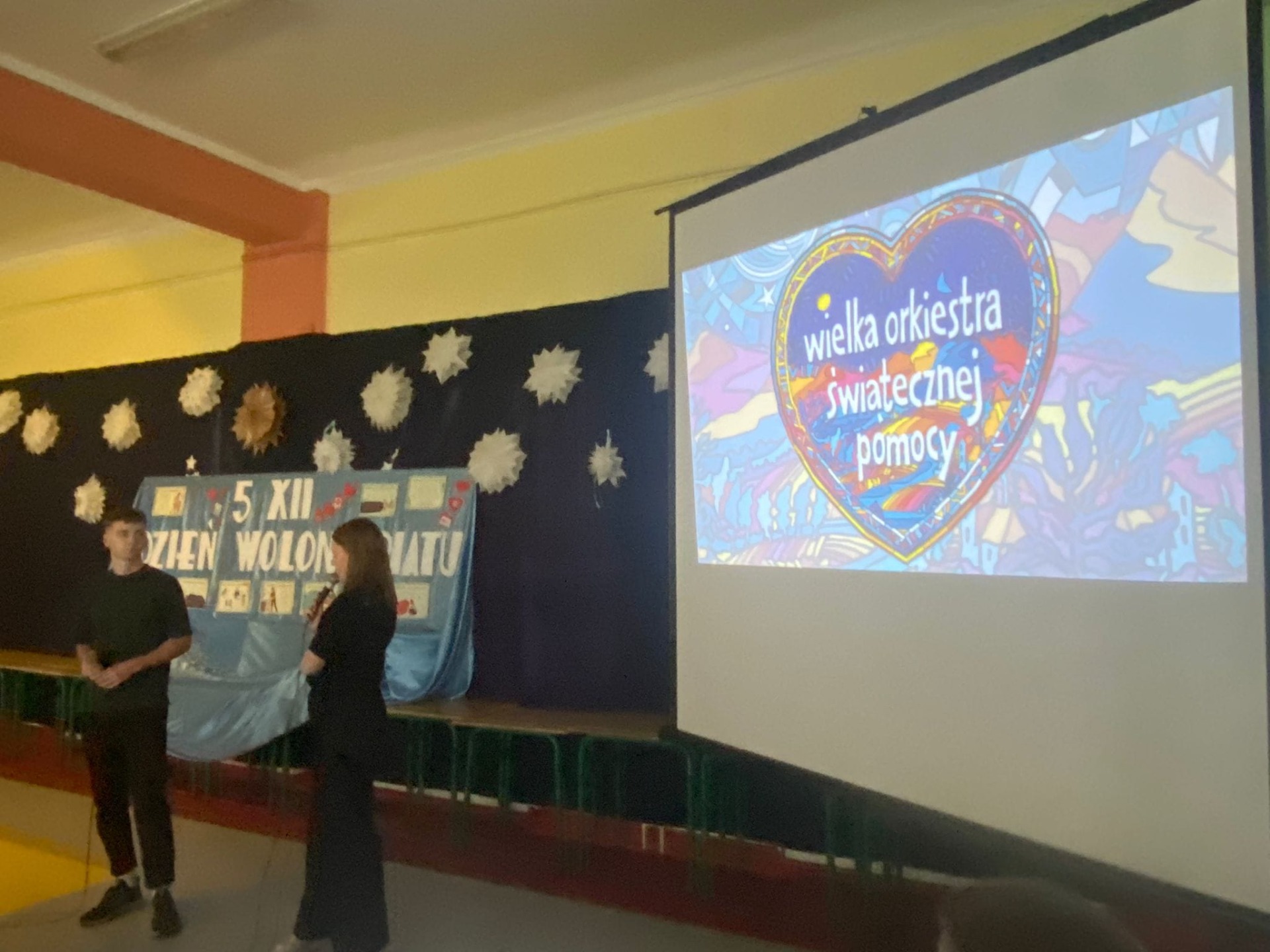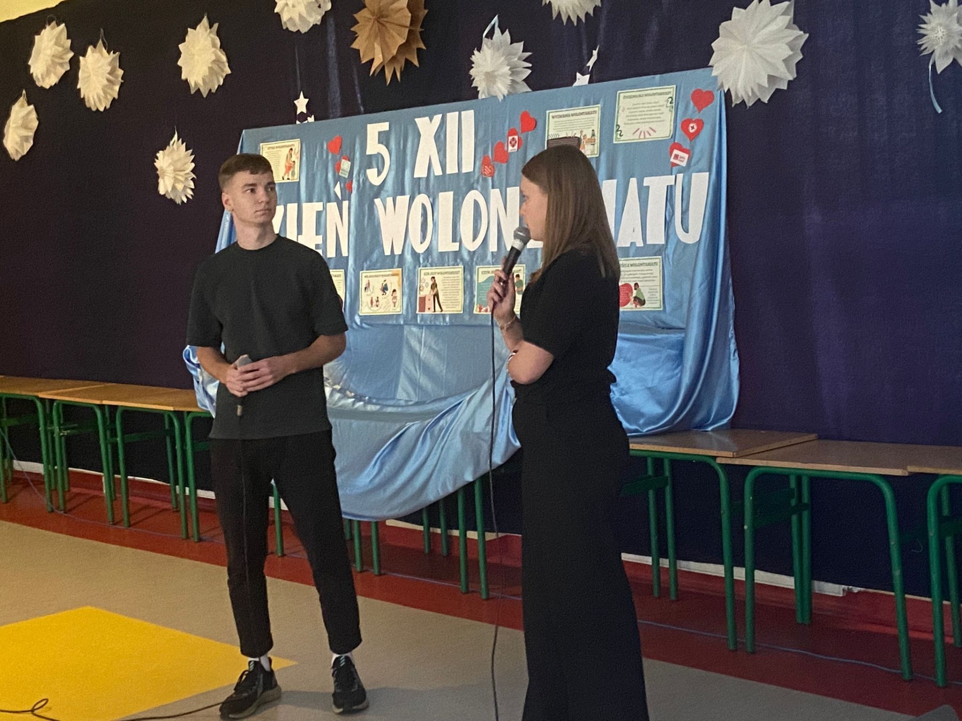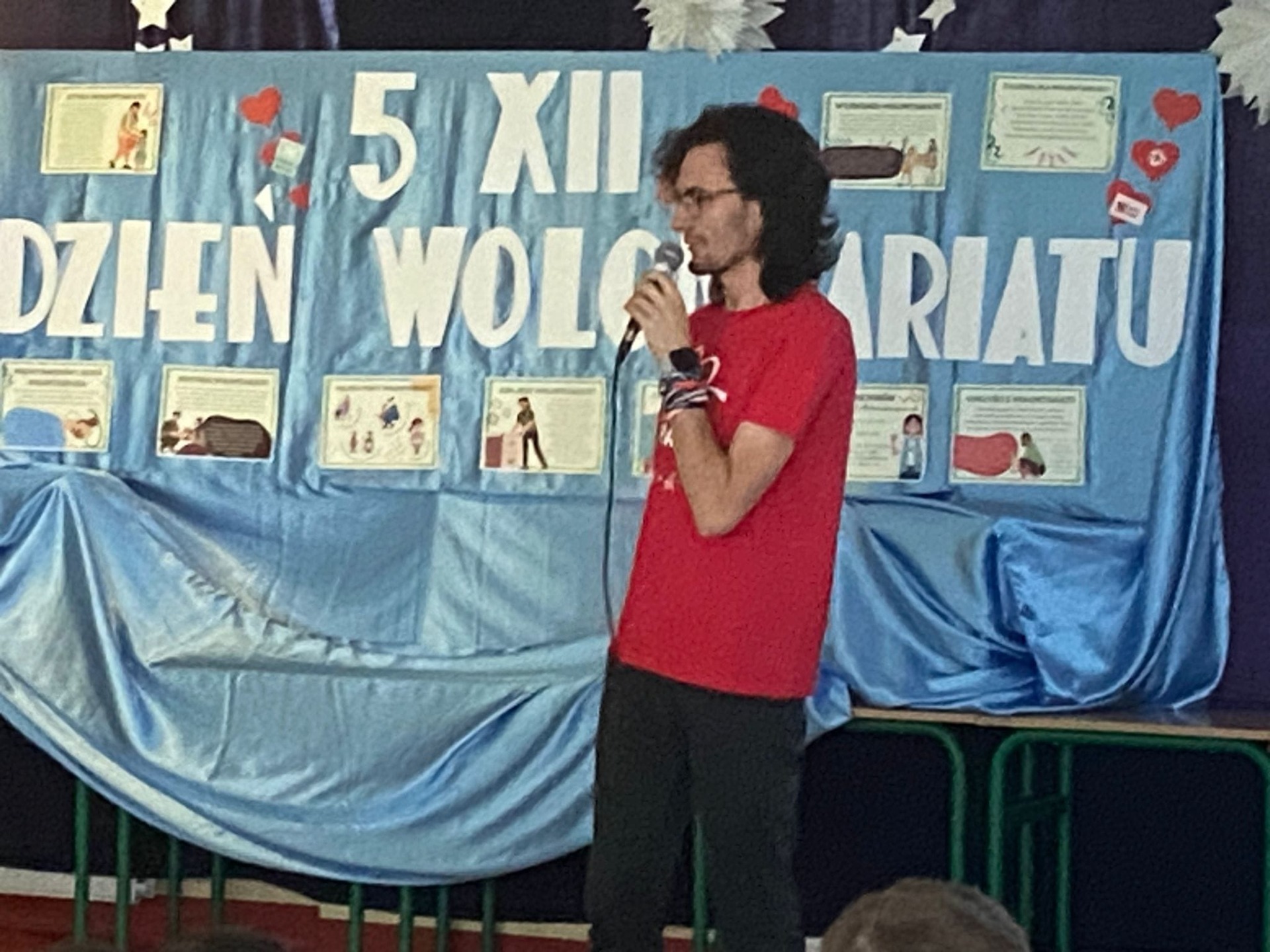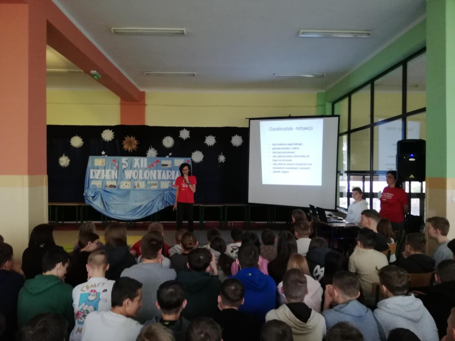5 grudnia obchodzimy Międzynarodowy Dzień Wolontariusza. Święto ustanowiono przez Zgromadzenie Ogólne Organizacji Narodów Zjednoczonych 17 grudnia 1985 roku. Ten dzień jest okazją do tego, by pokazać światu, jak wielką rolę odgrywają osoby zaangażowane w pracę społeczną na rzecz drugiego człowieka, zwierząt czy środowiska. To bezinteresowana pomoc innym. Chcemy przez to nasze wspólne spotkanie z wolontariuszami: Bartłomiejem Pokusińskim - Szlachetna Paczka, Weronią Górzyńską, Szymonem Niebelskim - WOŚP oraz wolontariat sportowy, wolontariuszami Szkolnego Koła Caritas, Szkolnego Koła PCK, wolontariuszy Samorządu Uczniowskiego pokazać naszej młodzieży i nie tylko, że wrażliwość, dobroć, bezinteresowność i serdeczność są cechami, które w tak szlachetny sposób będą potrafili spożytkować i obdarować nimi drugiego człowieka. Serdeczne podziękowania dla zaproszonych gości, za tak pięknie opowiedzianą własną historię o pracy w wolontariacie. Wszystkim wolontariuszom życzymy, aby niesienie pomocy innym, wnosiło w ich życie radość i szczęście oraz stawało się źródłem osobistego rozwoju.