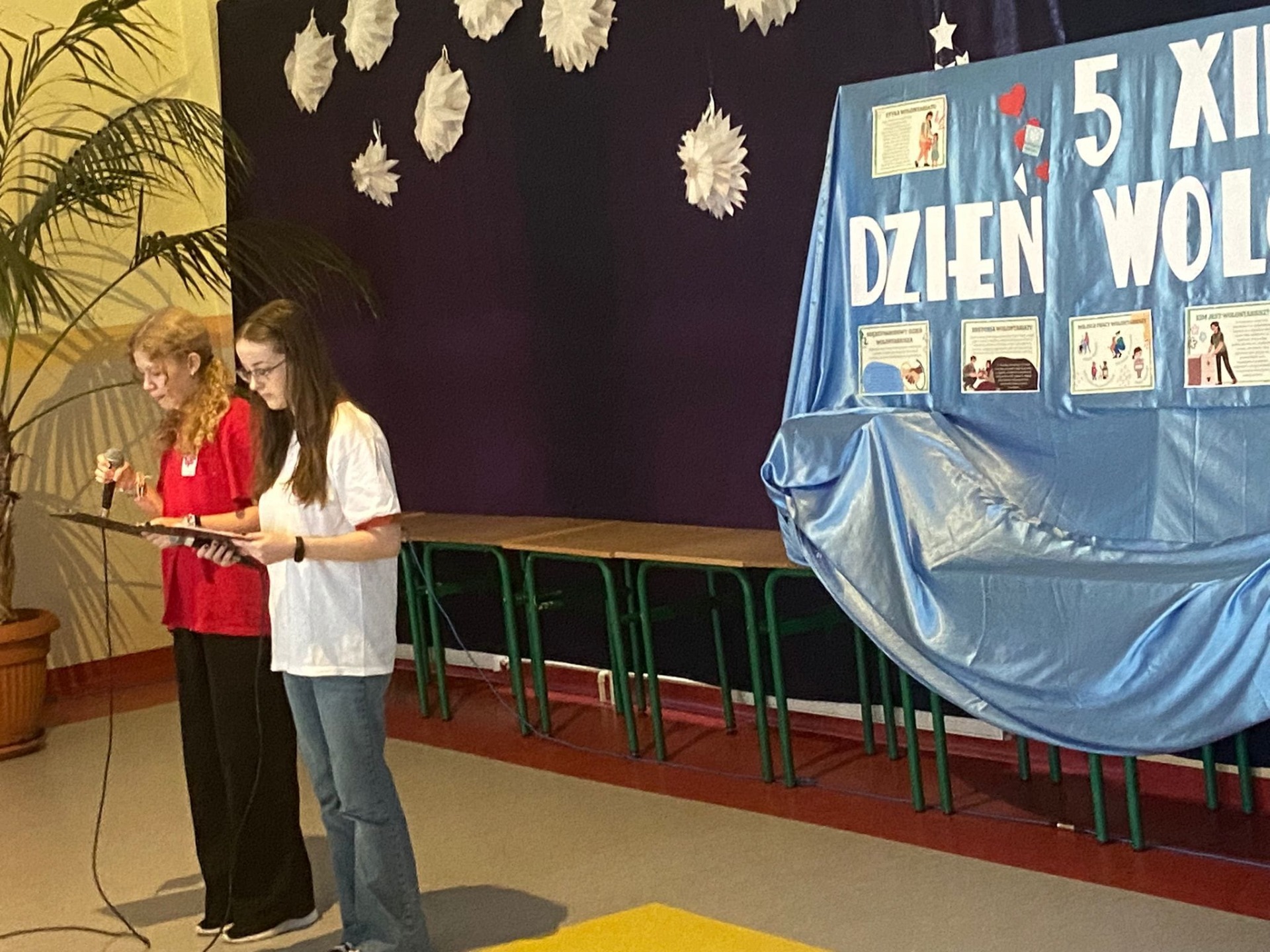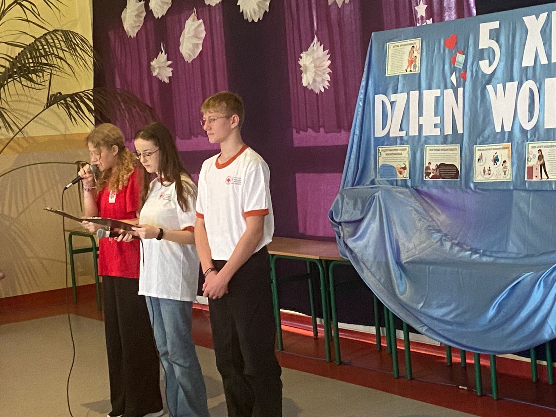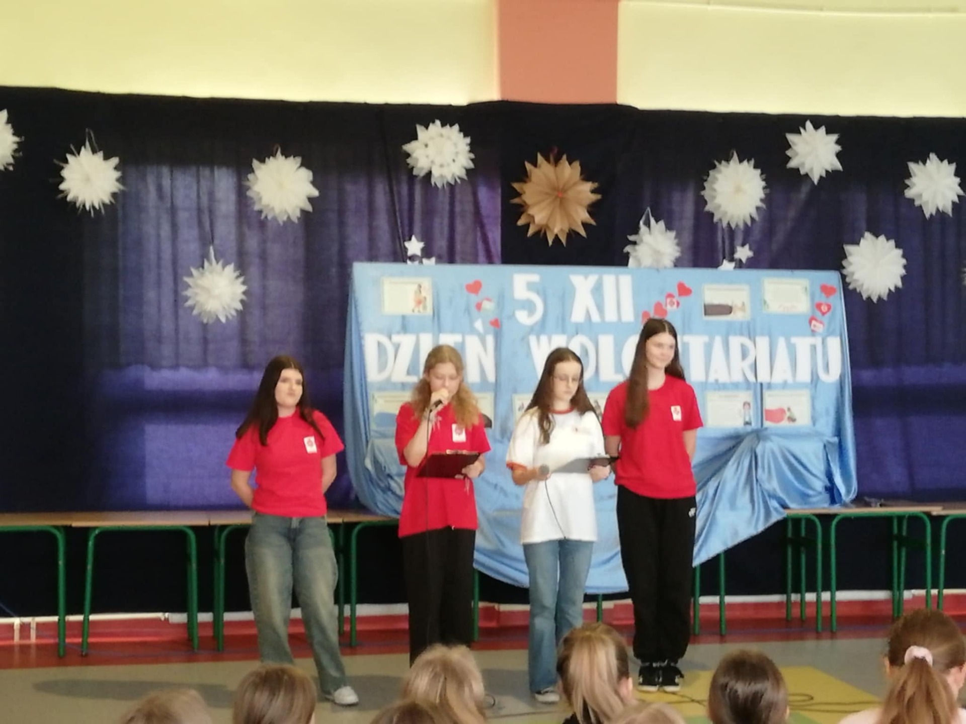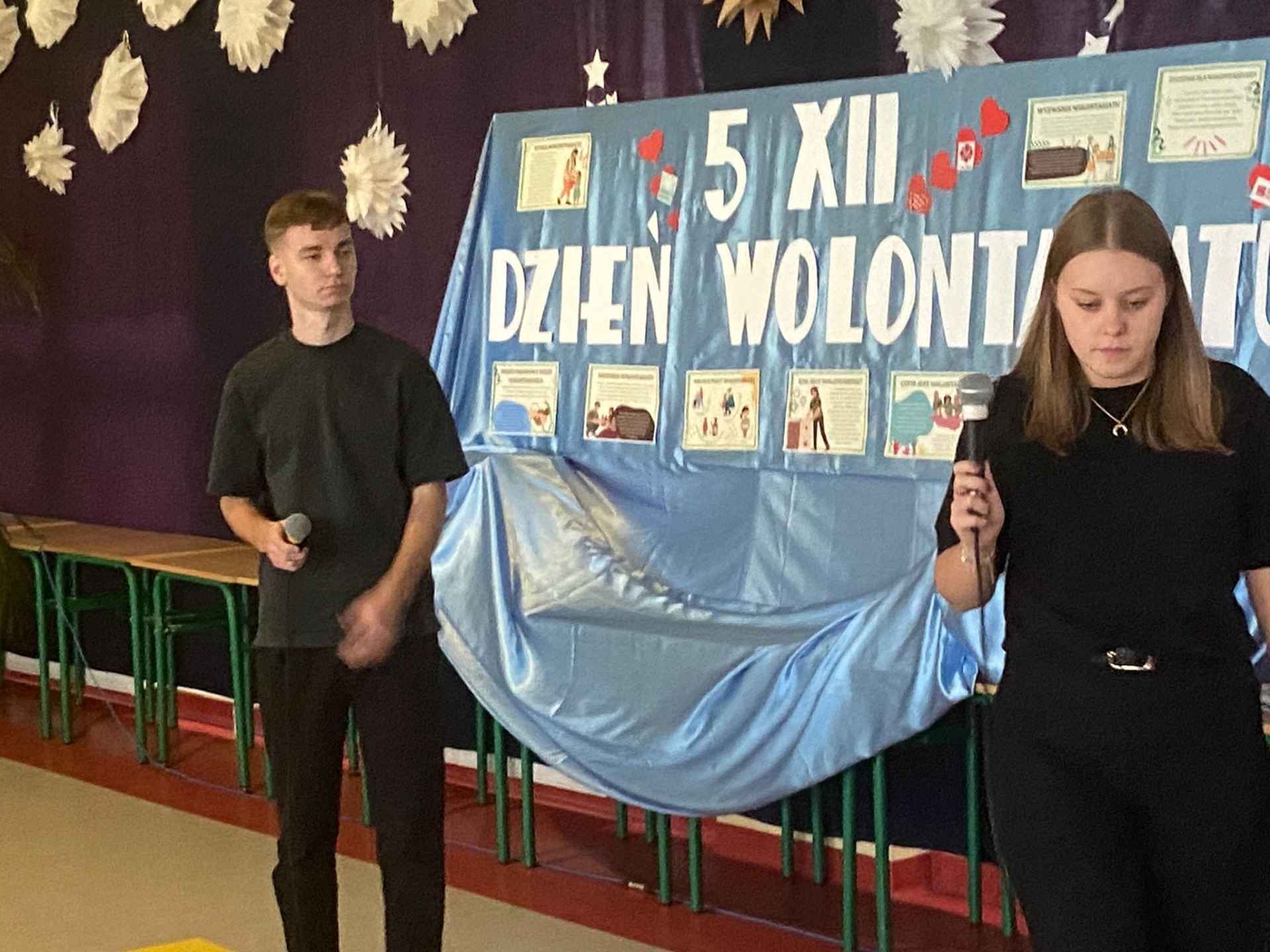 5 grudnia obchodzimy Międzynarodowy Dzień Wolontariusza. Święto ustanowiono przez Zgromadzenie Ogólne Organizacji Narodów Zjednoczonych 17 grudnia 1985 roku. Ten dzień jest okazją do tego, by pokazać światu, jak wielką rolę odgrywają osoby zaangażowane w pracę społeczną na rzecz drugiego człowieka, zwierząt czy środowiska. To bezinteresowana pomoc innym. Chcemy przez to nasze wspólne spotkanie z wolontariuszami: Bartłomiejem Pokusińskim - Szlachetna Paczka, Weronią Górzyńską, Szymonem Niebelskim - WOŚP oraz wolontariat sportowy, wolontariuszami Szkolnego Koła Caritas, Szkolnego Koła PCK, wolontariuszy Samorządu Uczniowskiego pokazać naszej młodzieży i nie tylko, że wrażliwość, dobroć, bezinteresowność i serdeczność są cechami, które w tak szlachetny sposób będą potrafili spożytkować i obdarować nimi drugiego człowieka. Serdeczne podziękowania dla zaproszonych gości, za tak pięknie opowiedzianą własną historię o pracy w wolontariacie. Wszystkim wolontariuszom życzymy, aby niesienie pomocy innym, wnosiło w ich życie radość i szczęście oraz stawało się źródłem osobistego rozwoju.