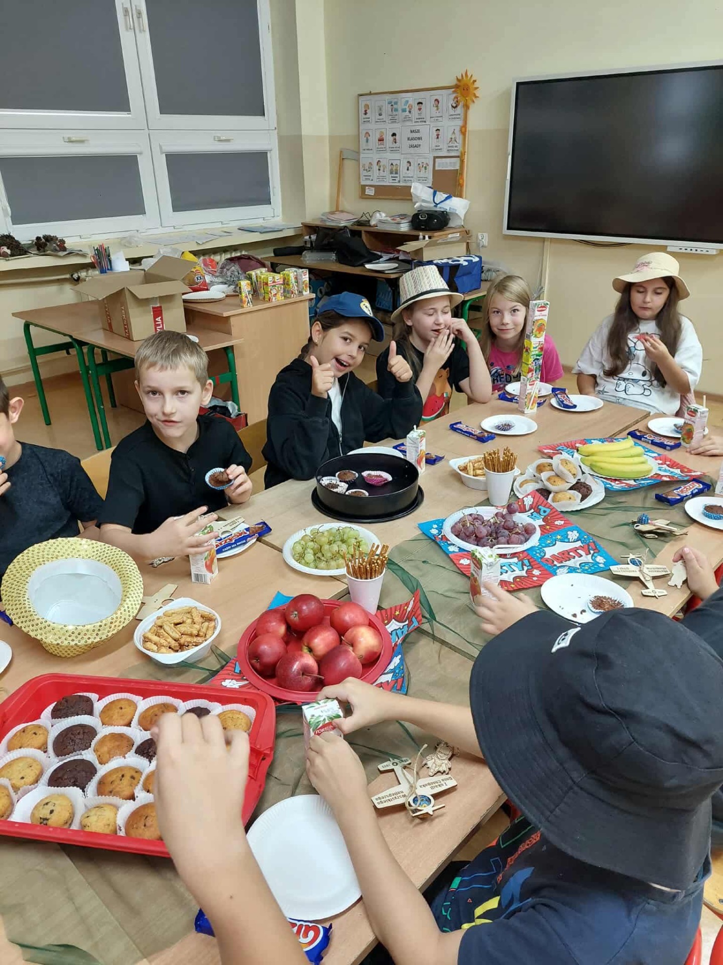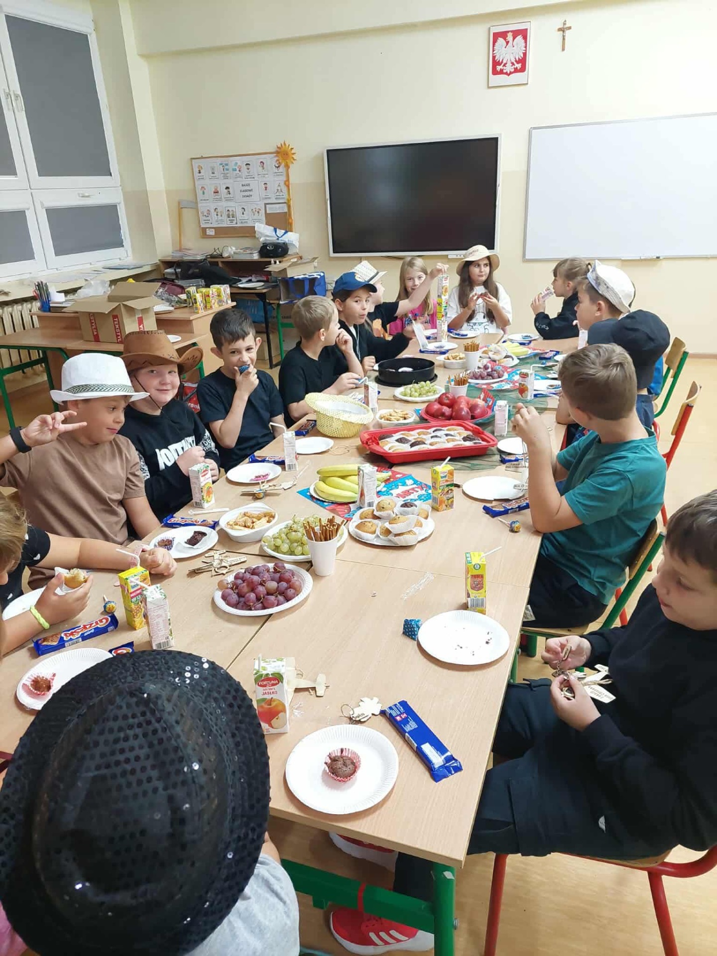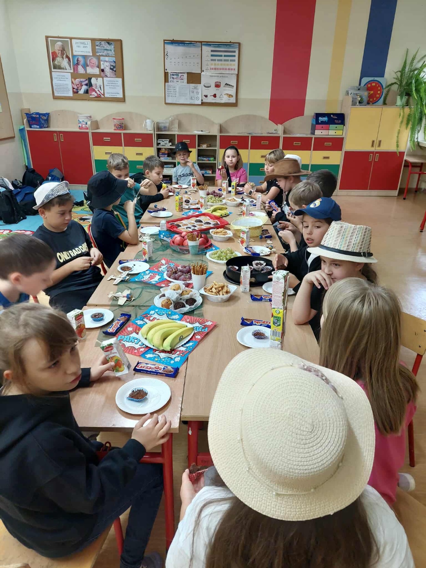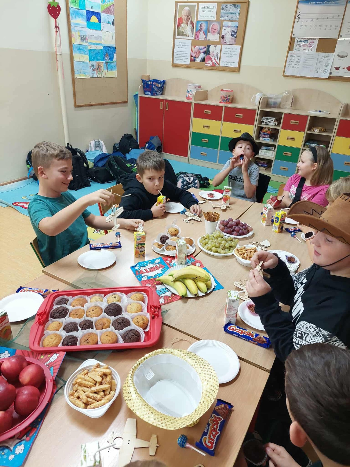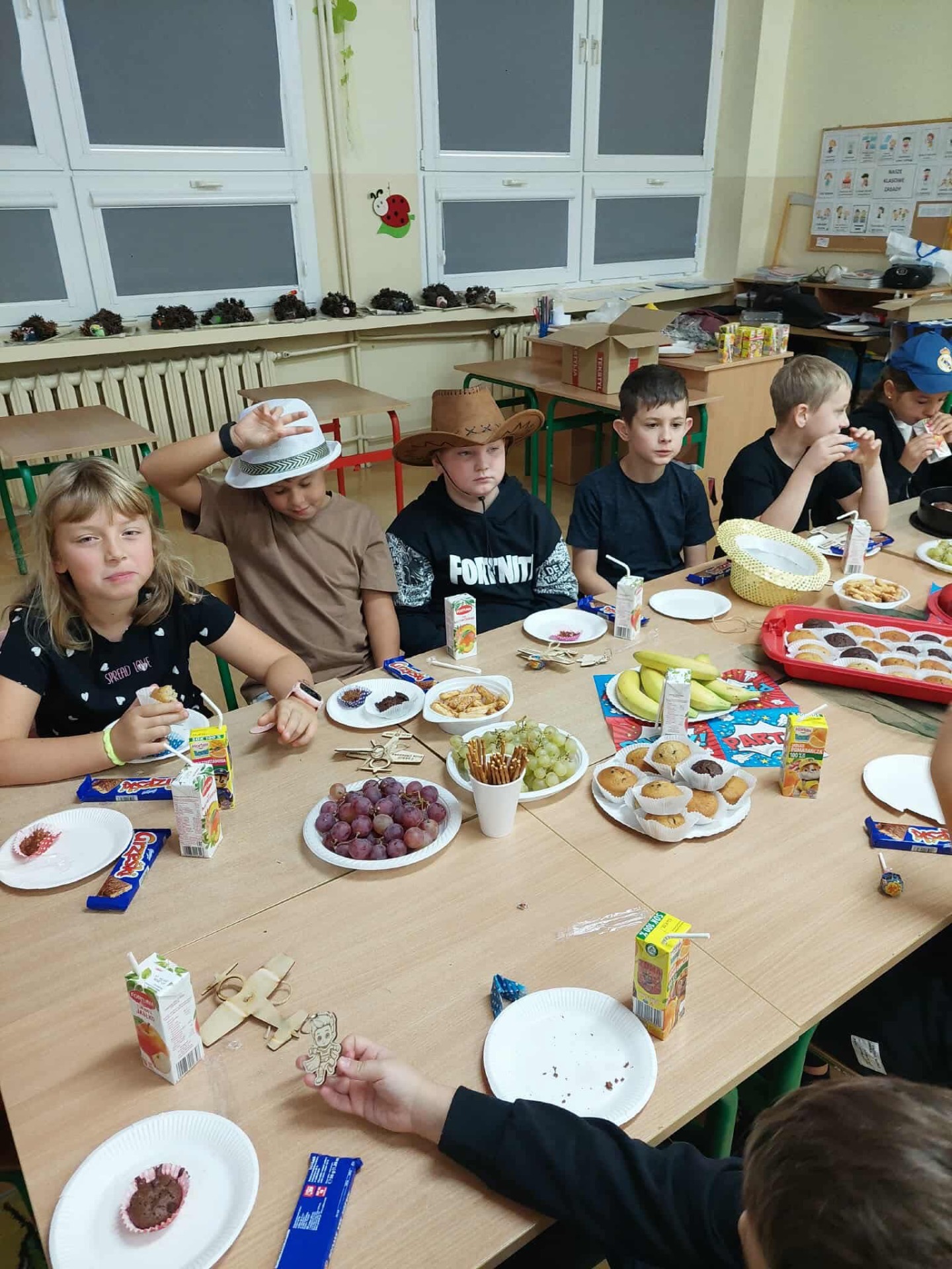 Dziś w naszej szkole obchodziliśmy Dzień Chłopaka. Z tej okazji dziewczynki złożyły swoim kolegom życzenia oraz obdarowały ich drobnymi upominkami. Dzięki temu w klasach zapanowała miła i przyjazna atmosfera. Następnie wszyscy zasiedli do stołu, by wspólnie uczcić ten wyjątkowy dzień przy smacznym poczęstunku i serdecznych rozmowach. Działania te miały na celu zacieśnienie koleżeńskich relacji oraz budowanie pozytywnej atmosfery w społeczności szkolnej. Dziękujemy wszystkim za zaangażowanie.