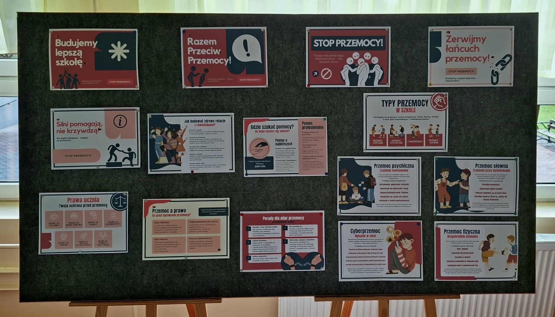 hasła i plakaty promujące życie szkolne wolne od przemocy,