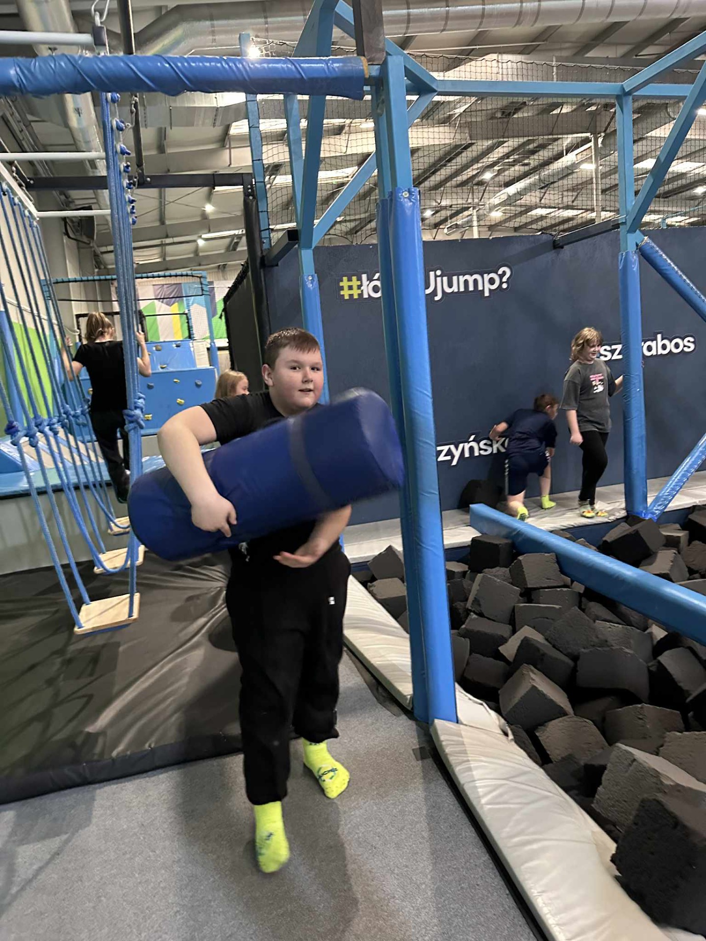 Najpierw odbyła się wyjątkowa lekcja wychowania fizycznego w parku trampolin, gdzie każdy mógł sprawdzić swoją sprawność, energię i poczuć radość z aktywnego ruchu 🤸♂️🤸♀️