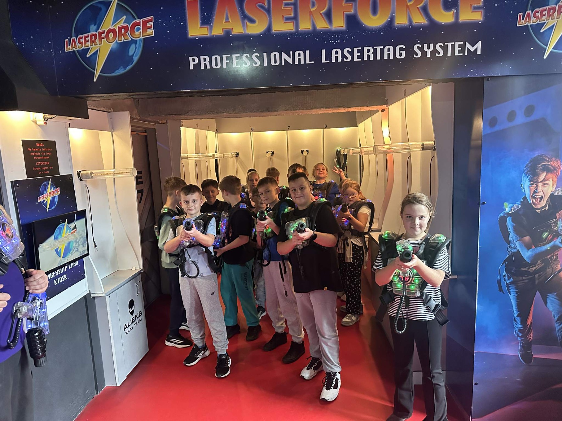 Kolejnym punktem programu była wizyta na Arenie Laser Games, gdzie czwartoklasiści wzięli udział w emocjonującej grze w laserowy paintball! 🔫✨