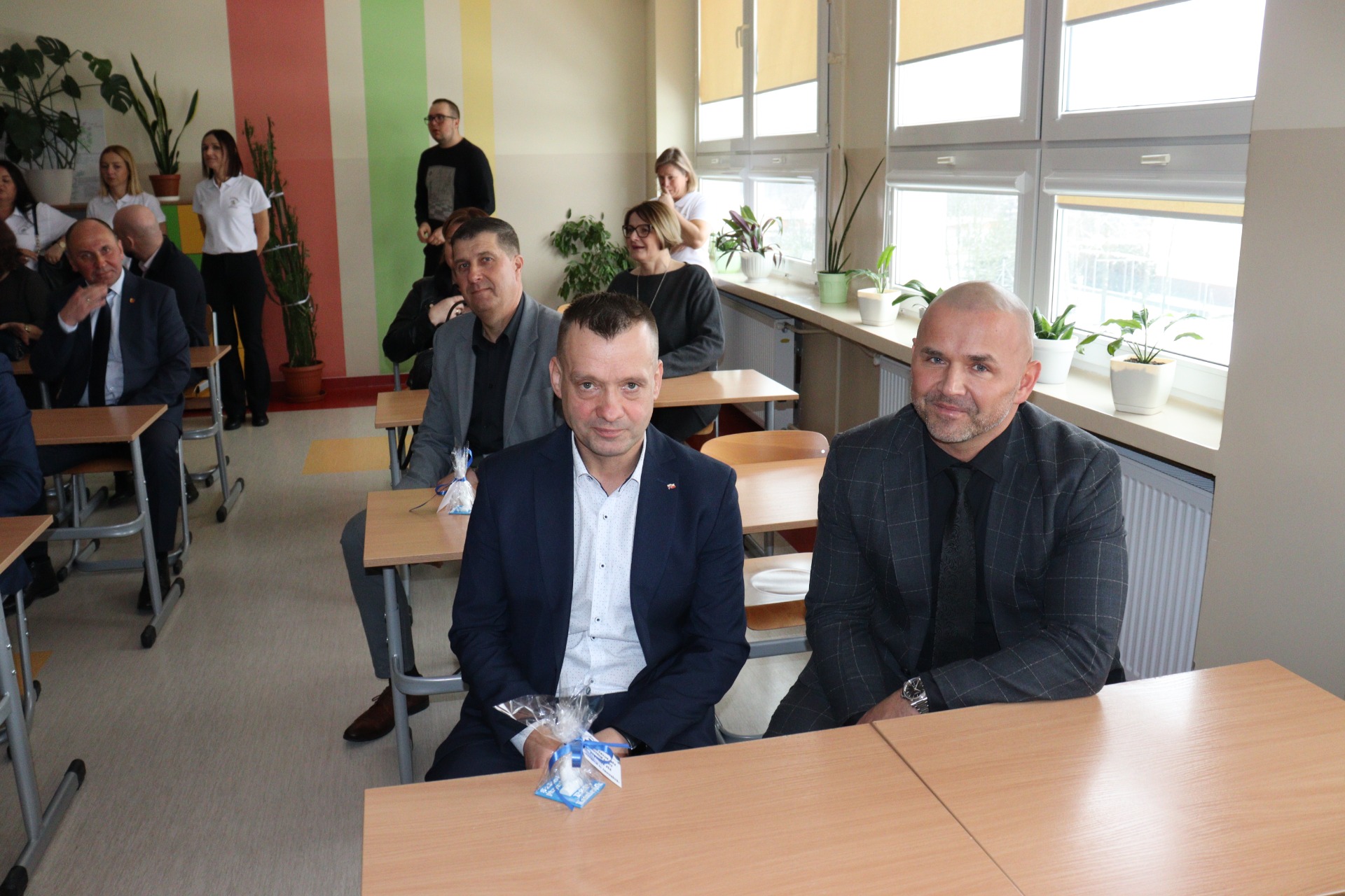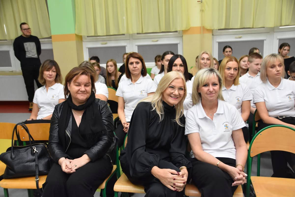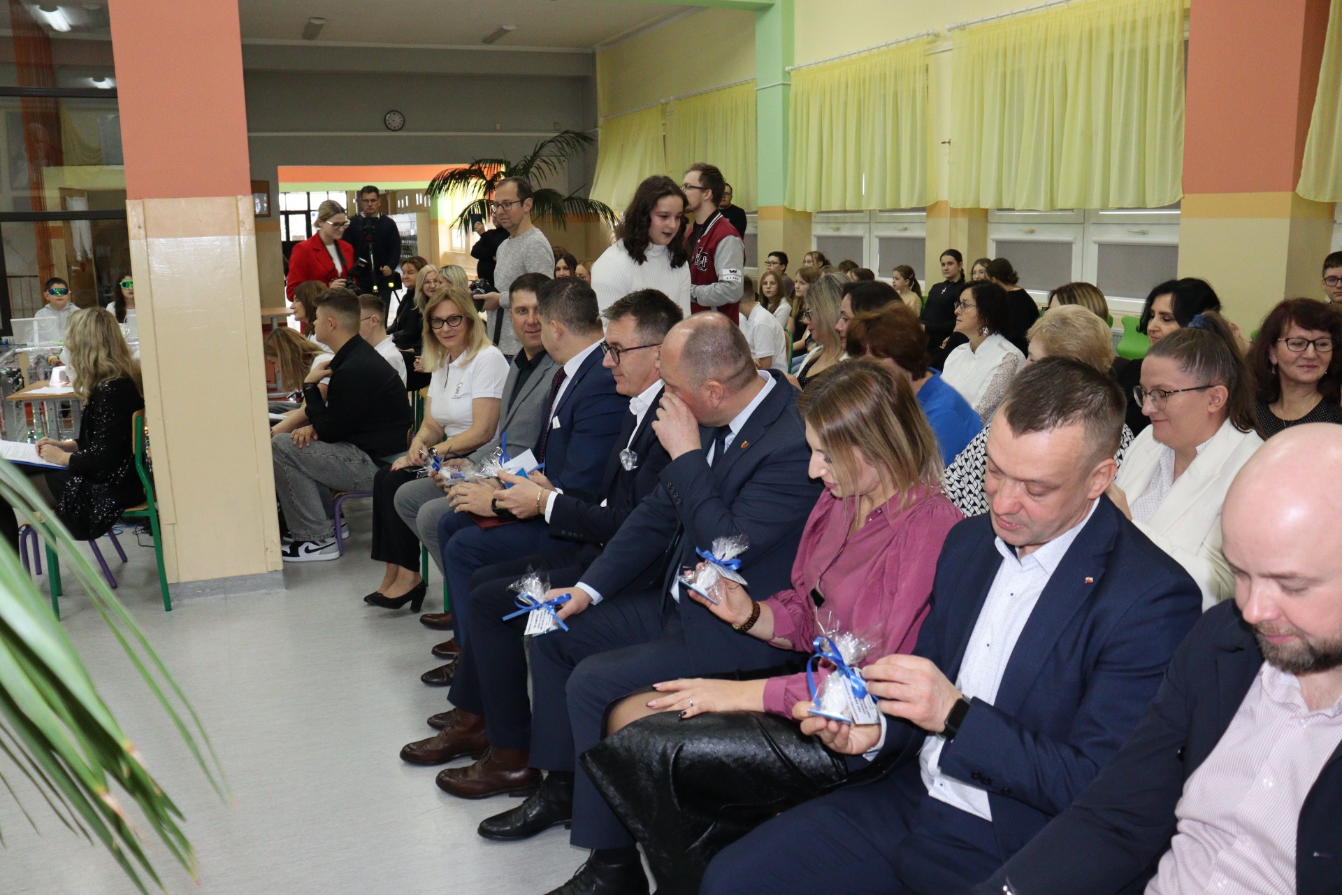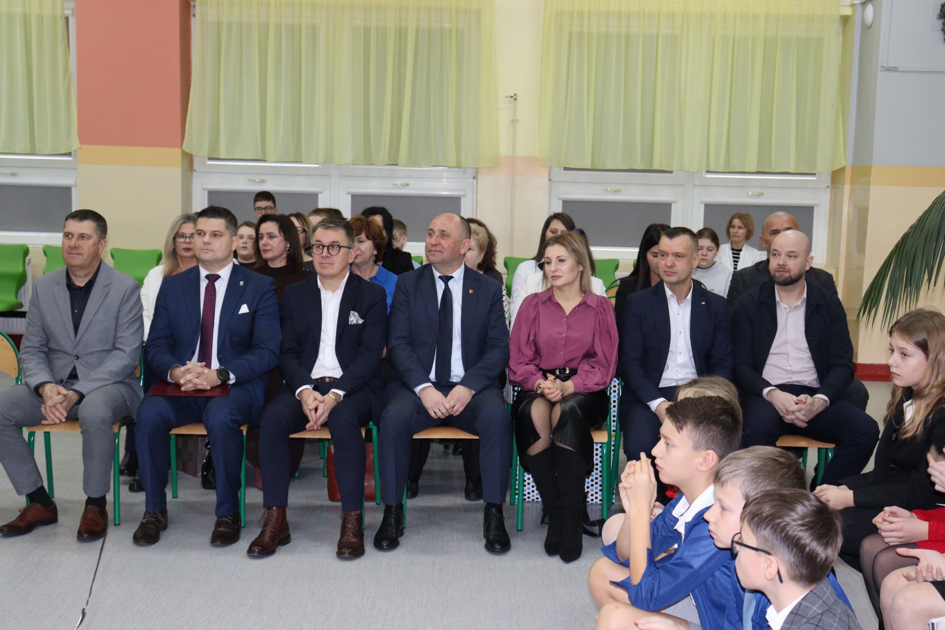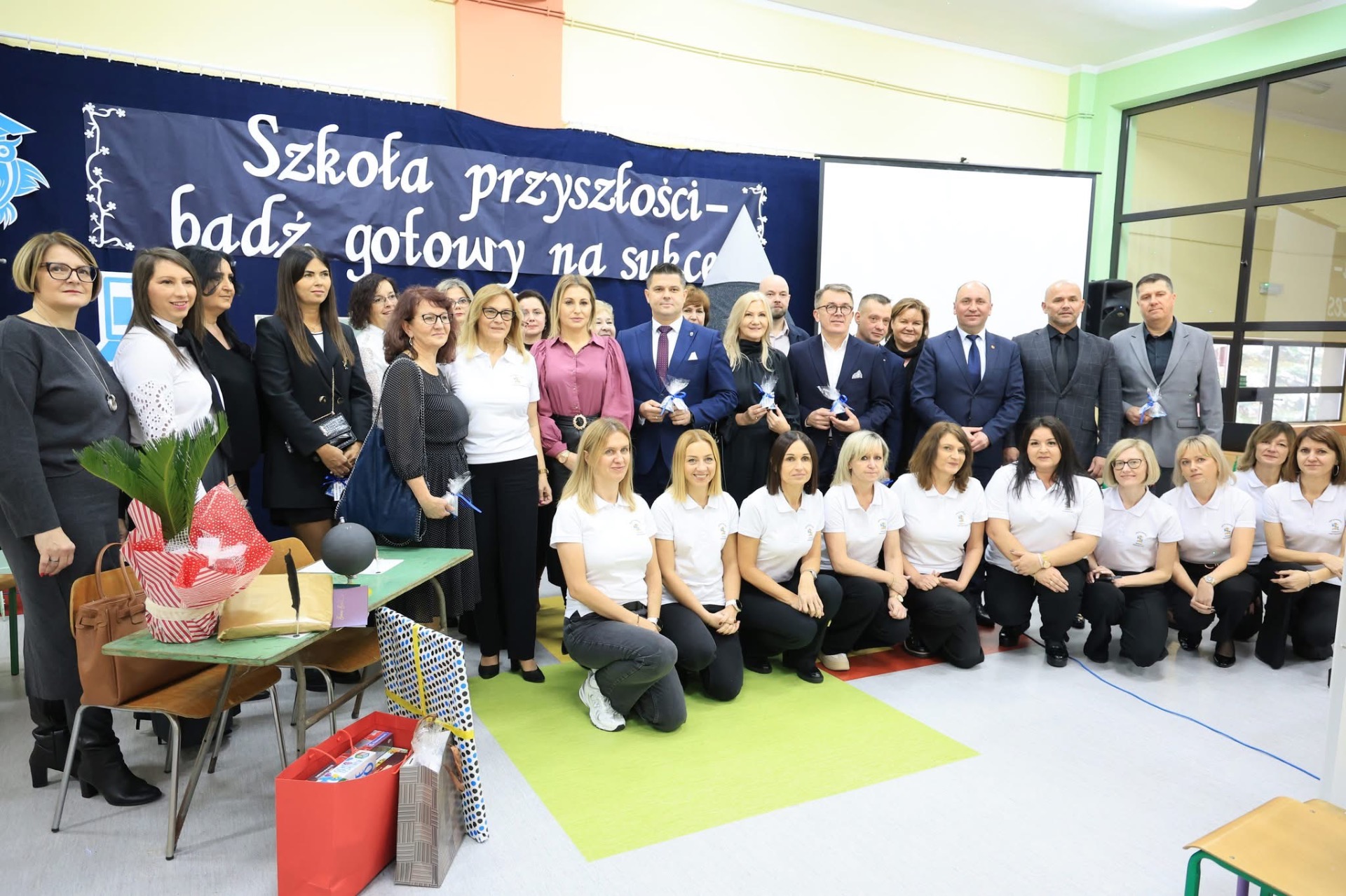 W dniu 26 listopada nasza szkoła zmieniła się w prawdziwe centrum edukacyjnych odkryć! W atmosferze radości, dumy i lekkiej nuty ekscytacji otworzyliśmy trzy absolutnie wyjątkowe pracownie: językową, informatyczną i sensoryczną. Można śmiało powiedzieć, że to dzień,który zapisze się w historii szkoły złotymi literami... albo przynajmniej bardzo błyszczącym markerem. Na uroczystość przybyli liczni goście - przedstawiciele sejmiku wojewódzkiego, powiatu, władz gmin sąsiednich, władz lokalnych, dyrektorzy szkół, nauczyciele, członkowie rad rodziców oraz sympatycy wszystkiego, co pachnie nowoczesnością. Wszyscy zgodnie przyznali, że atmosfera była tak podniosła, iż spokojnie mogłaby konkurować z ceremonią rozdania nagród Nobla. Prawdziwym hitem była część artystyczna przygotowana przez uczniów. Ich występ nie tylko rozśmieszył publiczność do łez, ale też poruszył struny nostalgii, pokazując dawną szkołę oraz tę przyszłościową - pełną technologii , kreatywności i niekończących się możliwości. Na scenie pojawiła się nawet "szkoła roku 2050", a widownia zaczęła się zastanawiać, czy na pewno nie mamy wehikułu czasu ukrytego w piwnicy.