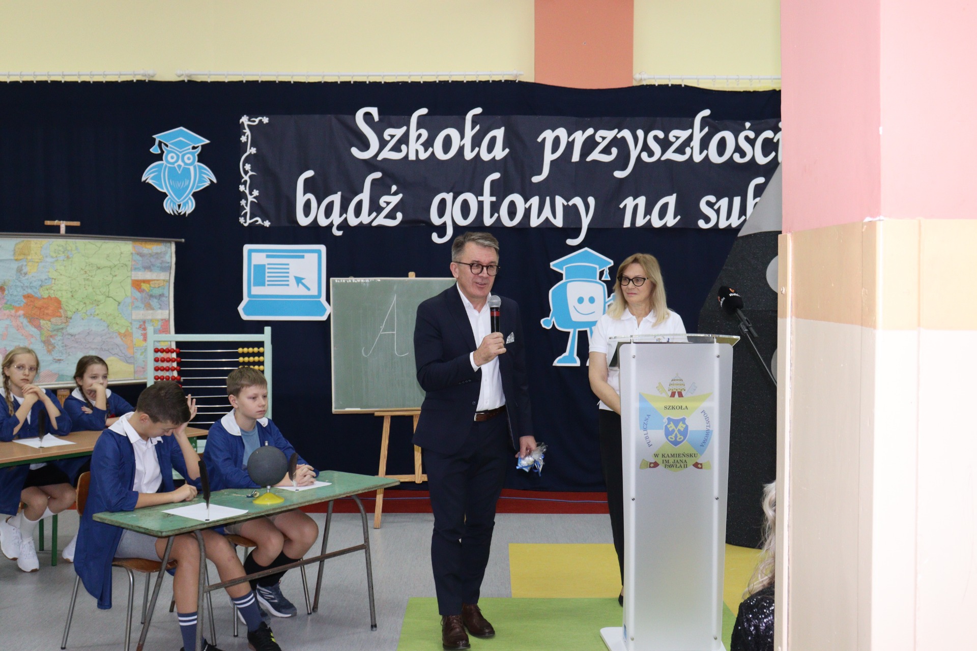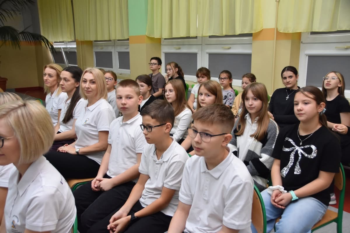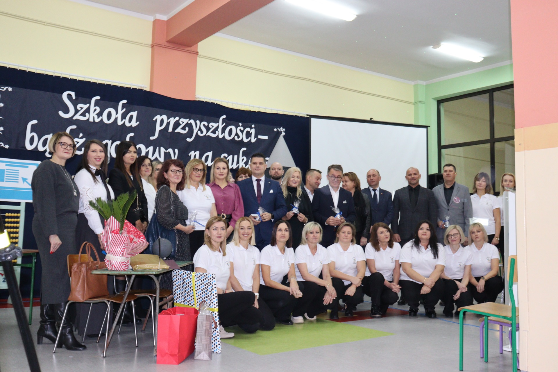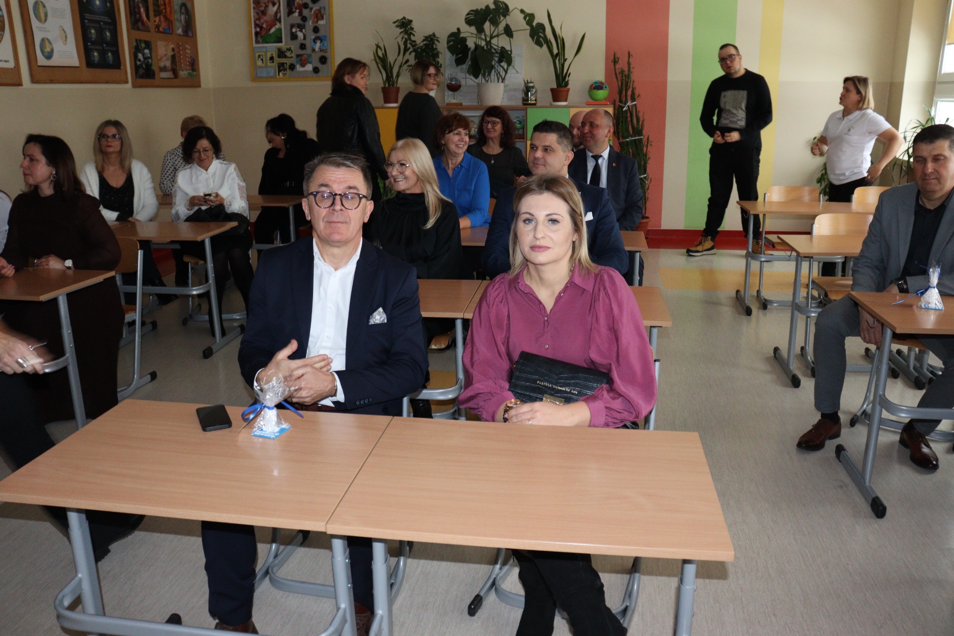 W dniu 26 listopada nasza szkoła zmieniła się w prawdziwe centrum edukacyjnych odkryć! W atmosferze radości, dumy i lekkiej nuty ekscytacji otworzyliśmy trzy absolutnie wyjątkowe pracownie: językową, informatyczną i sensoryczną. Można śmiało powiedzieć, że to dzień,który zapisze się w historii szkoły złotymi literami... albo przynajmniej bardzo błyszczącym markerem. Na uroczystość przybyli liczni goście - przedstawiciele sejmiku wojewódzkiego, powiatu, władz gmin sąsiednich, władz lokalnych, dyrektorzy szkół, nauczyciele, członkowie rad rodziców oraz sympatycy wszystkiego, co pachnie nowoczesnością. Wszyscy zgodnie przyznali, że atmosfera była tak podniosła, iż spokojnie mogłaby konkurować z ceremonią rozdania nagród Nobla. Prawdziwym hitem była część artystyczna przygotowana przez uczniów. Ich występ nie tylko rozśmieszył publiczność do łez, ale też poruszył struny nostalgii, pokazując dawną szkołę oraz tę przyszłościową - pełną technologii , kreatywności i niekończących się możliwości. Na scenie pojawiła się nawet "szkoła roku 2050", a widownia zaczęła się zastanawiać, czy na pewno nie mamy wehikułu czasu ukrytego w piwnicy.