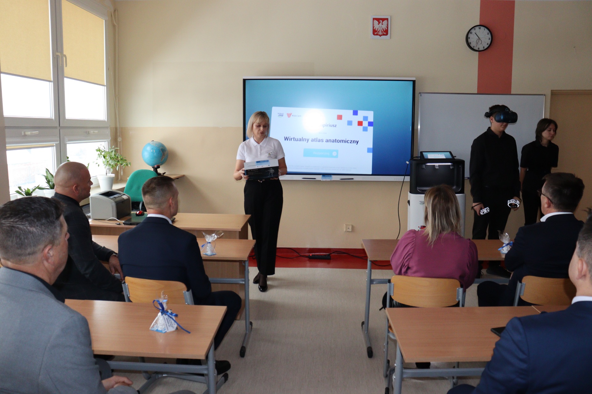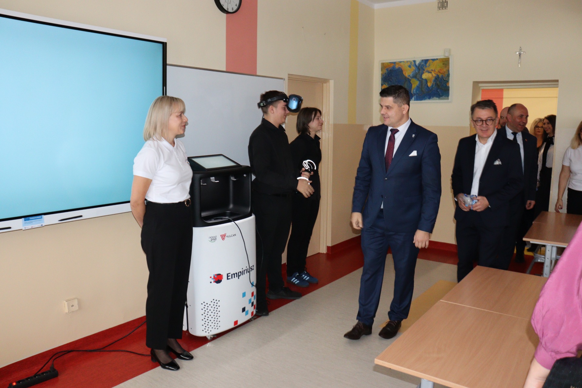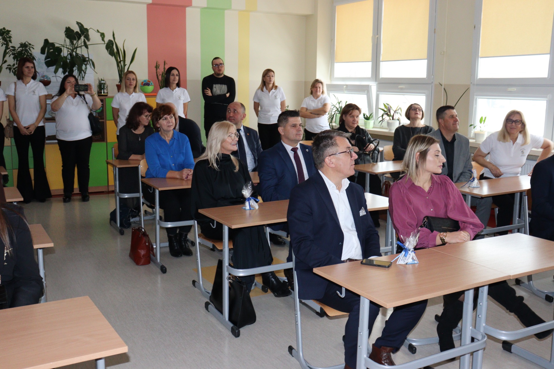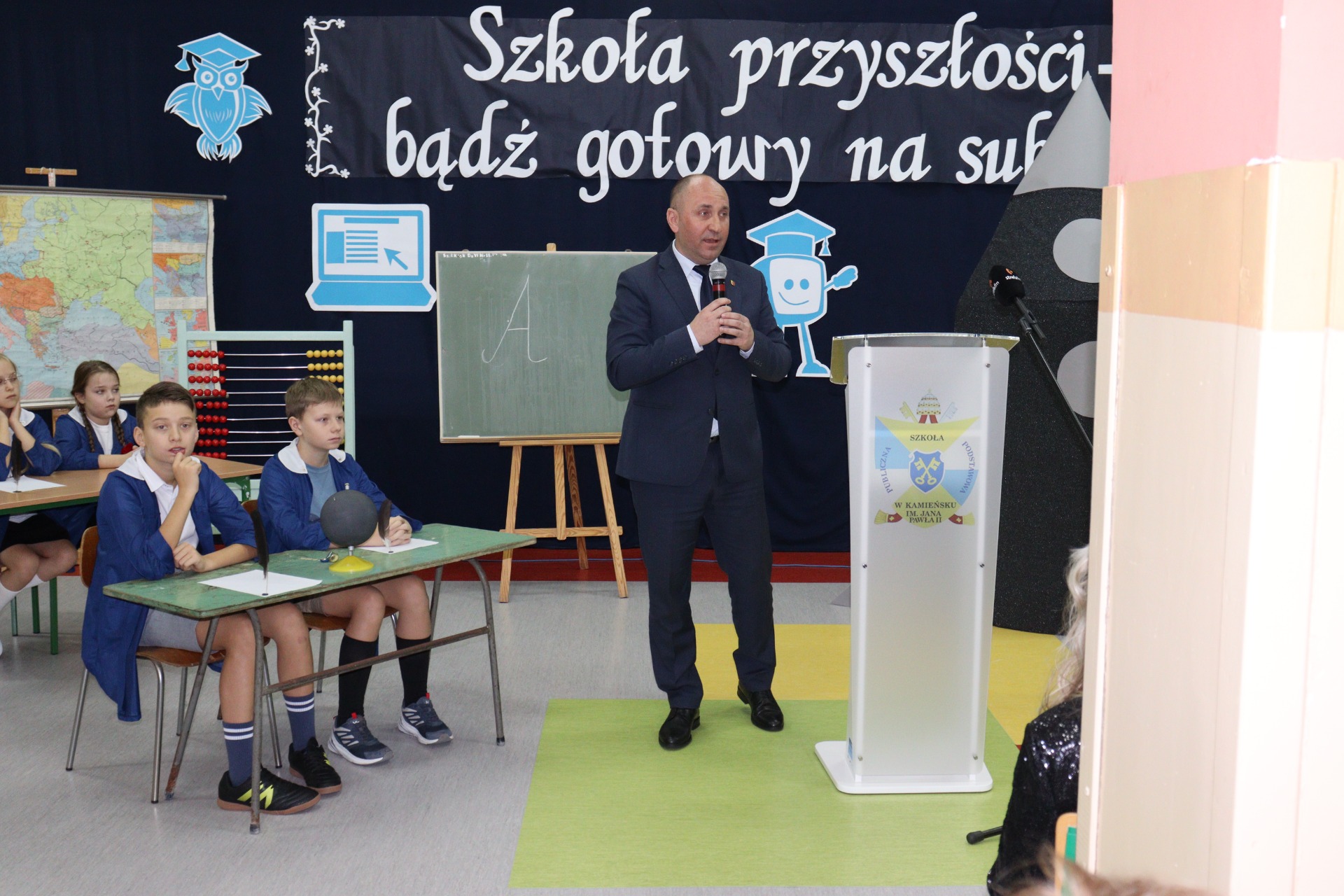 W dniu 26 listopada nasza szkoła zmieniła się w prawdziwe centrum edukacyjnych odkryć! W atmosferze radości, dumy i lekkiej nuty ekscytacji otworzyliśmy trzy absolutnie wyjątkowe pracownie: językową, informatyczną i sensoryczną. Można śmiało powiedzieć, że to dzień,który zapisze się w historii szkoły złotymi literami... albo przynajmniej bardzo błyszczącym markerem. Na uroczystość przybyli liczni goście - przedstawiciele sejmiku wojewódzkiego, powiatu, władz gmin sąsiednich, władz lokalnych, dyrektorzy szkół, nauczyciele, członkowie rad rodziców oraz sympatycy wszystkiego, co pachnie nowoczesnością. Wszyscy zgodnie przyznali, że atmosfera była tak podniosła, iż spokojnie mogłaby konkurować z ceremonią rozdania nagród Nobla. Prawdziwym hitem była część artystyczna przygotowana przez uczniów. Ich występ nie tylko rozśmieszył publiczność do łez, ale też poruszył struny nostalgii, pokazując dawną szkołę oraz tę przyszłościową - pełną technologii , kreatywności i niekończących się możliwości. Na scenie pojawiła się nawet "szkoła roku 2050", a widownia zaczęła się zastanawiać, czy na pewno nie mamy wehikułu czasu ukrytego w piwnicy.