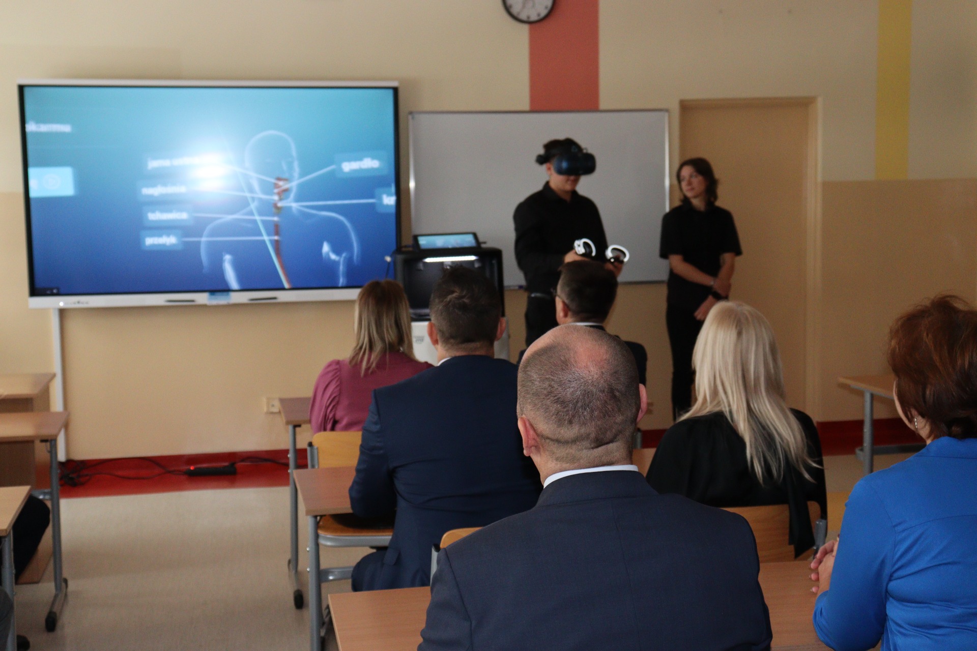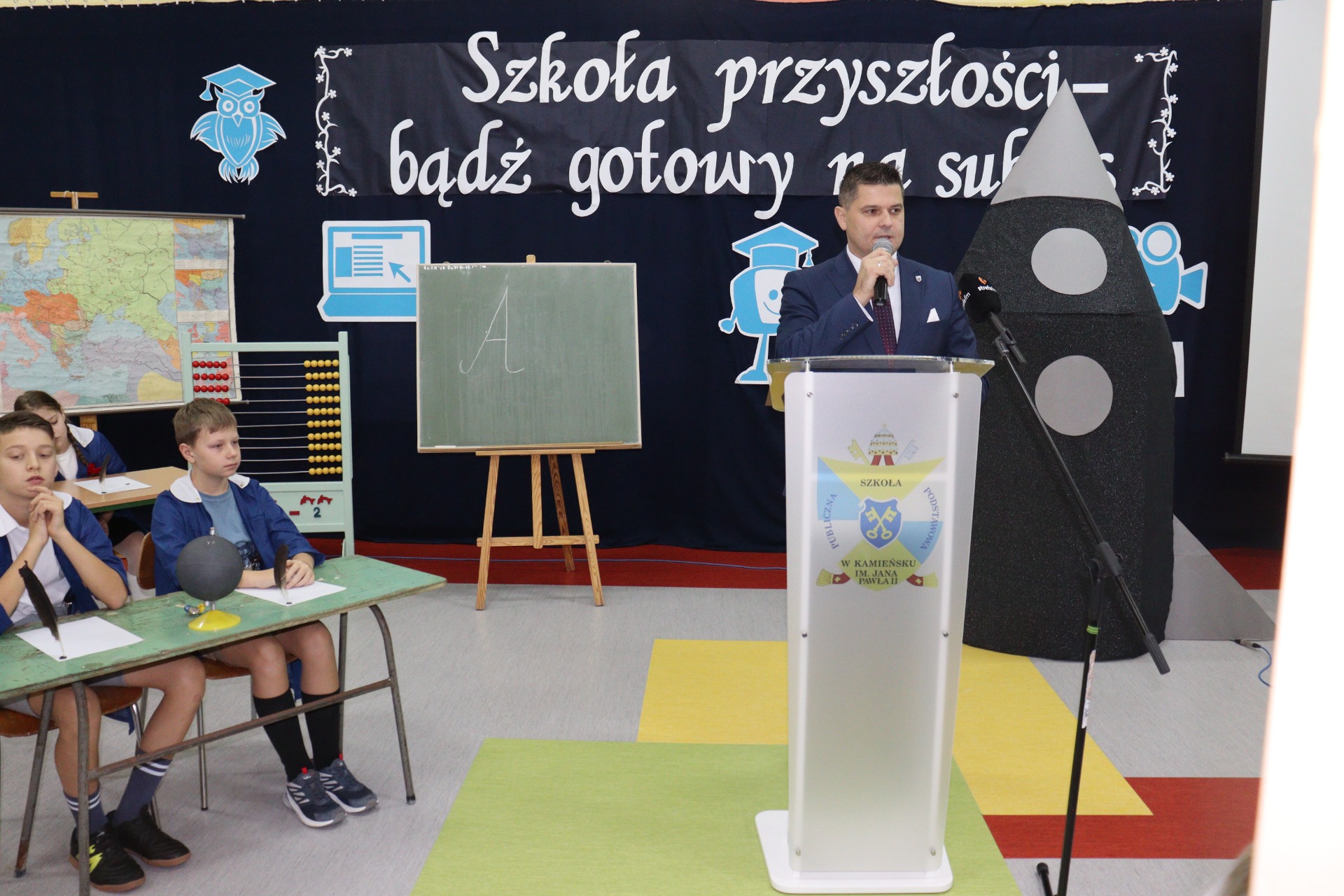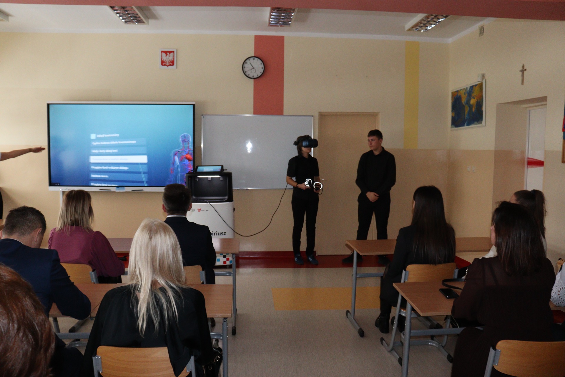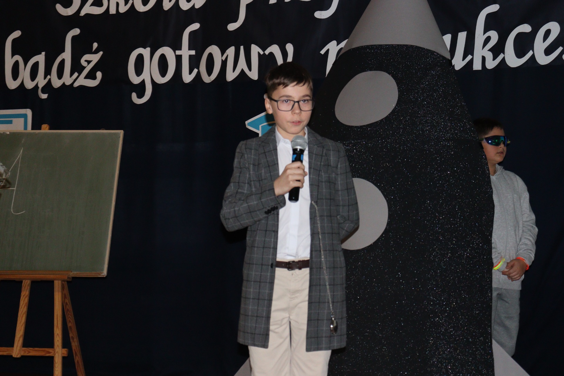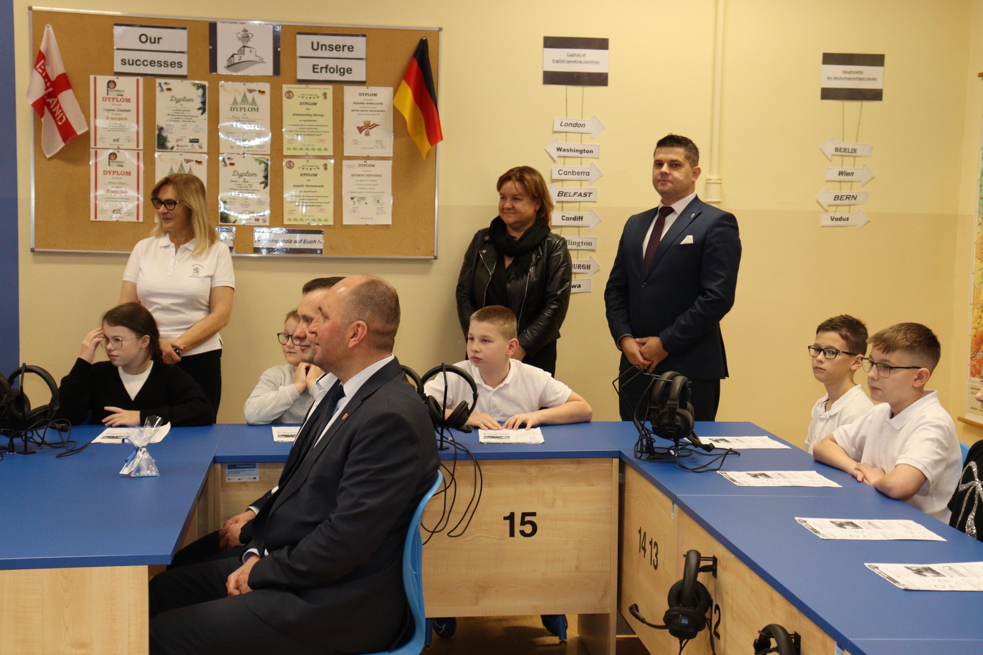 W dniu 26 listopada nasza szkoła zmieniła się w prawdziwe centrum edukacyjnych odkryć! W atmosferze radości, dumy i lekkiej nuty ekscytacji otworzyliśmy trzy absolutnie wyjątkowe pracownie: językową, informatyczną i sensoryczną. Można śmiało powiedzieć, że to dzień,który zapisze się w historii szkoły złotymi literami... albo przynajmniej bardzo błyszczącym markerem. Na uroczystość przybyli liczni goście - przedstawiciele sejmiku wojewódzkiego, powiatu, władz gmin sąsiednich, władz lokalnych, dyrektorzy szkół, nauczyciele, członkowie rad rodziców oraz sympatycy wszystkiego, co pachnie nowoczesnością. Wszyscy zgodnie przyznali, że atmosfera była tak podniosła, iż spokojnie mogłaby konkurować z ceremonią rozdania nagród Nobla. Prawdziwym hitem była część artystyczna przygotowana przez uczniów. Ich występ nie tylko rozśmieszył publiczność do łez, ale też poruszył struny nostalgii, pokazując dawną szkołę oraz tę przyszłościową - pełną technologii , kreatywności i niekończących się możliwości. Na scenie pojawiła się nawet "szkoła roku 2050", a widownia zaczęła się zastanawiać, czy na pewno nie mamy wehikułu czasu ukrytego w piwnicy.