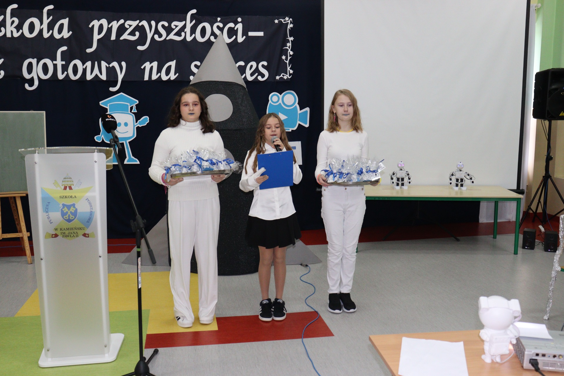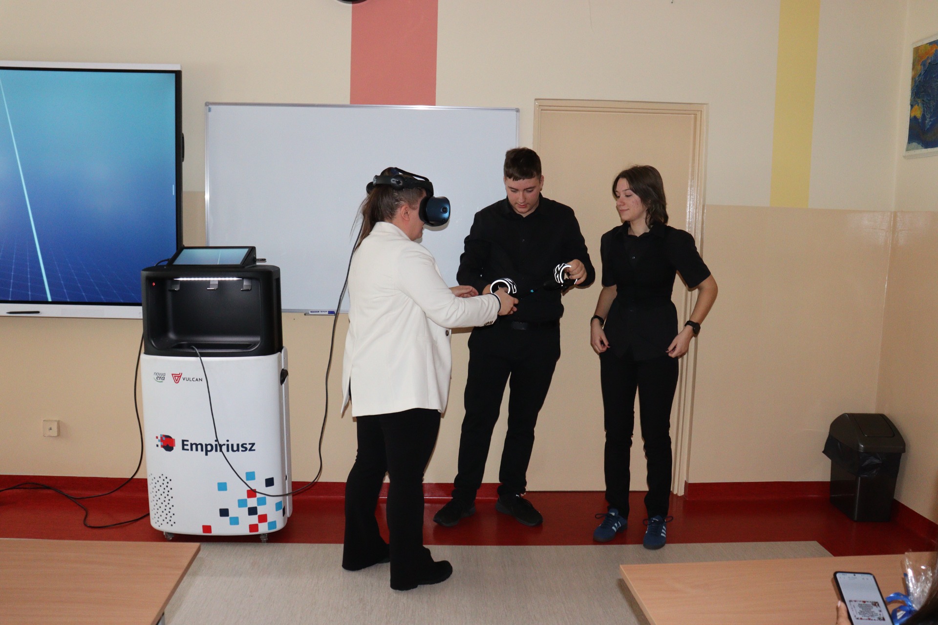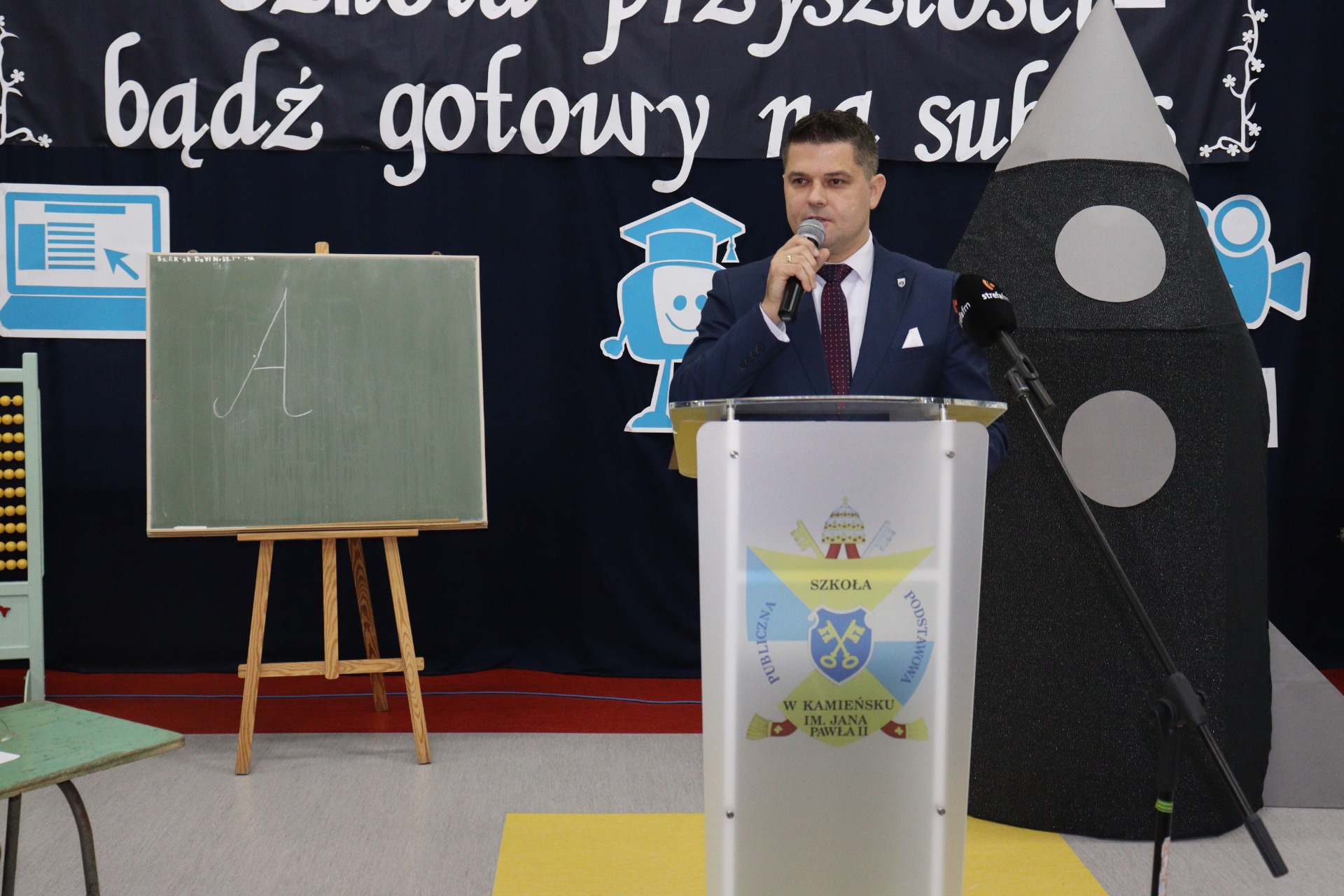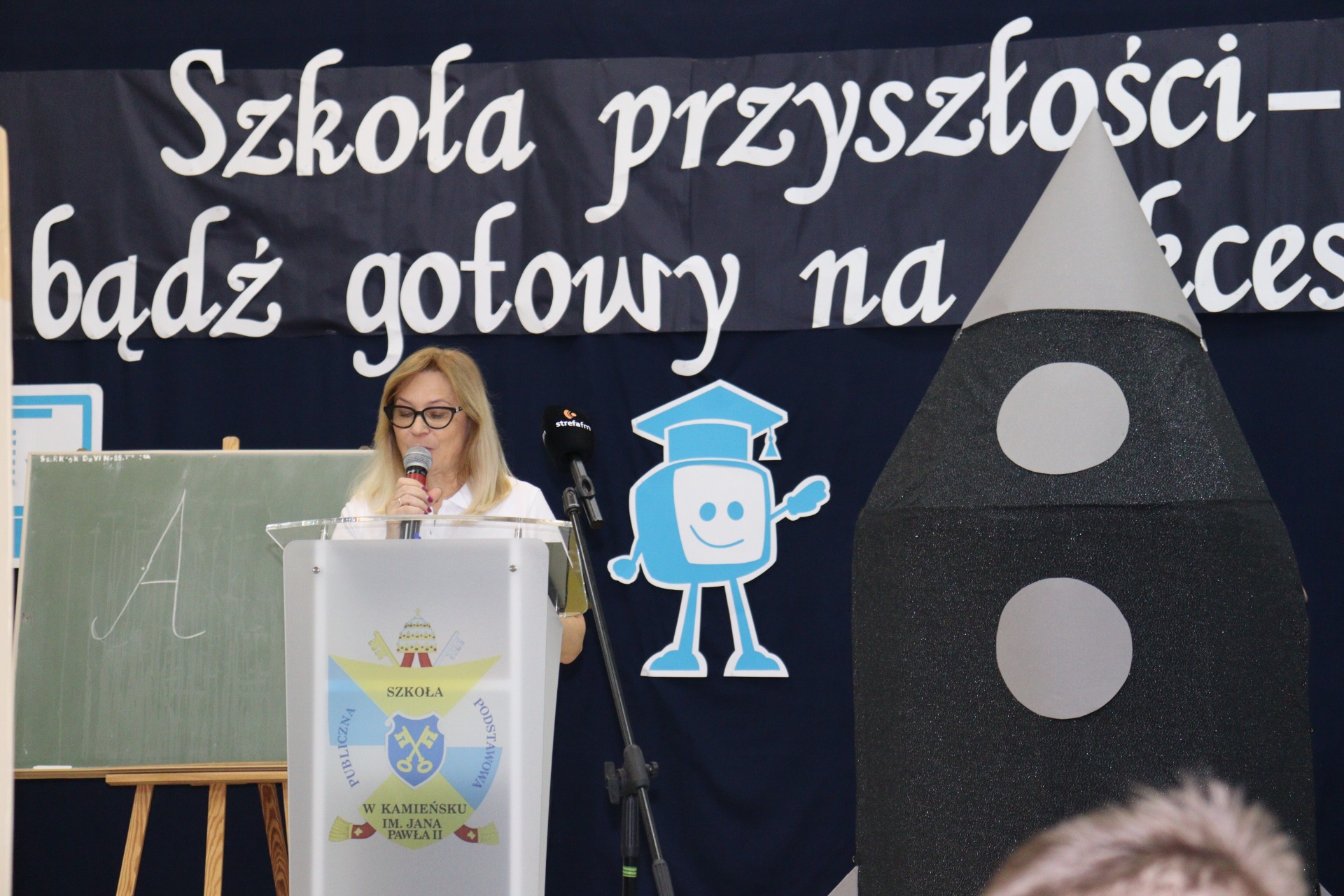 W dniu 26 listopada nasza szkoła zmieniła się w prawdziwe centrum edukacyjnych odkryć! W atmosferze radości, dumy i lekkiej nuty ekscytacji otworzyliśmy trzy absolutnie wyjątkowe pracownie: językową, informatyczną i sensoryczną. Można śmiało powiedzieć, że to dzień,który zapisze się w historii szkoły złotymi literami... albo przynajmniej bardzo błyszczącym markerem. Na uroczystość przybyli liczni goście - przedstawiciele sejmiku wojewódzkiego, powiatu, władz gmin sąsiednich, władz lokalnych, dyrektorzy szkół, nauczyciele, członkowie rad rodziców oraz sympatycy wszystkiego, co pachnie nowoczesnością. Wszyscy zgodnie przyznali, że atmosfera była tak podniosła, iż spokojnie mogłaby konkurować z ceremonią rozdania nagród Nobla. Prawdziwym hitem była część artystyczna przygotowana przez uczniów. Ich występ nie tylko rozśmieszył publiczność do łez, ale też poruszył struny nostalgii, pokazując dawną szkołę oraz tę przyszłościową - pełną technologii , kreatywności i niekończących się możliwości. Na scenie pojawiła się nawet "szkoła roku 2050", a widownia zaczęła się zastanawiać, czy na pewno nie mamy wehikułu czasu ukrytego w piwnicy.