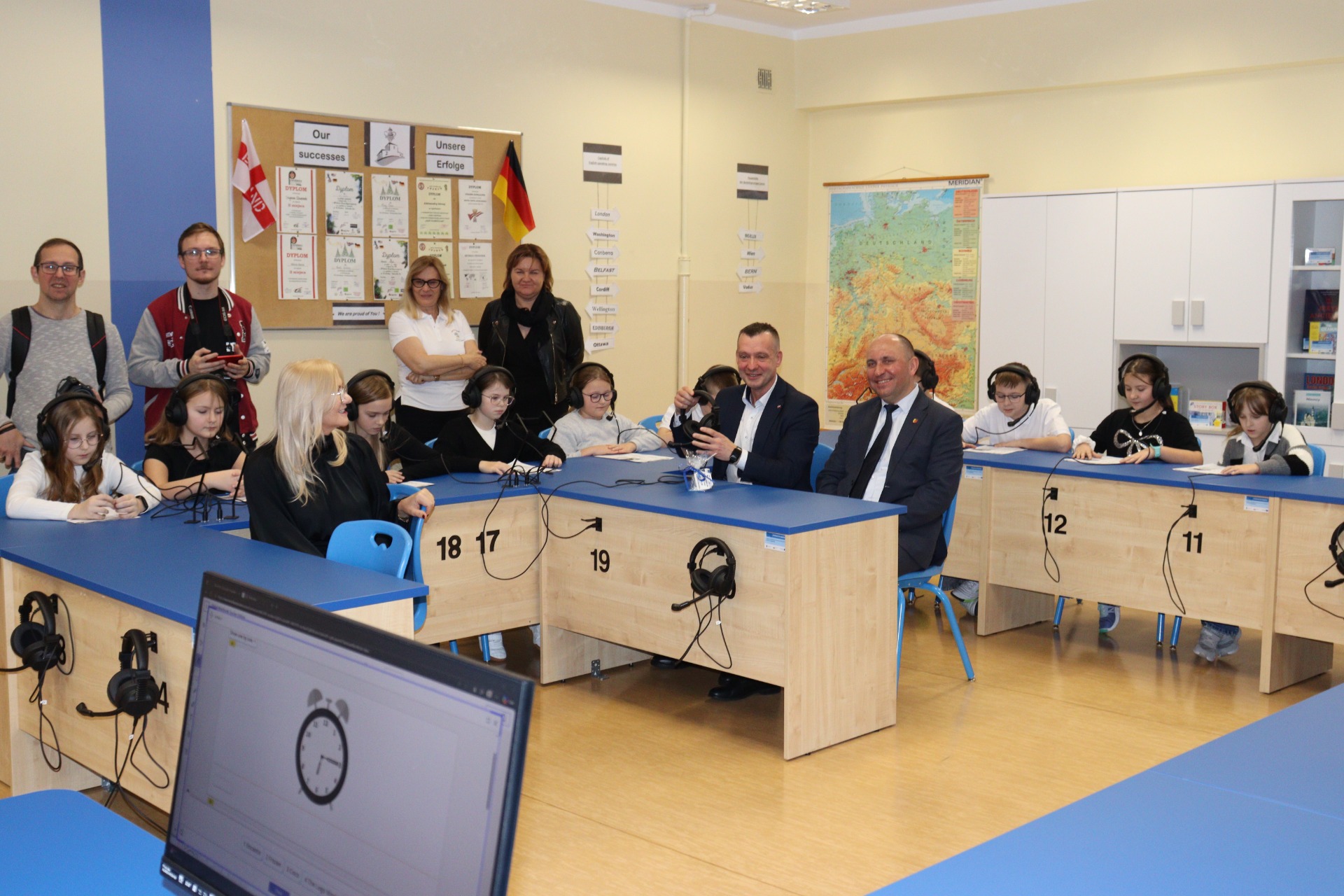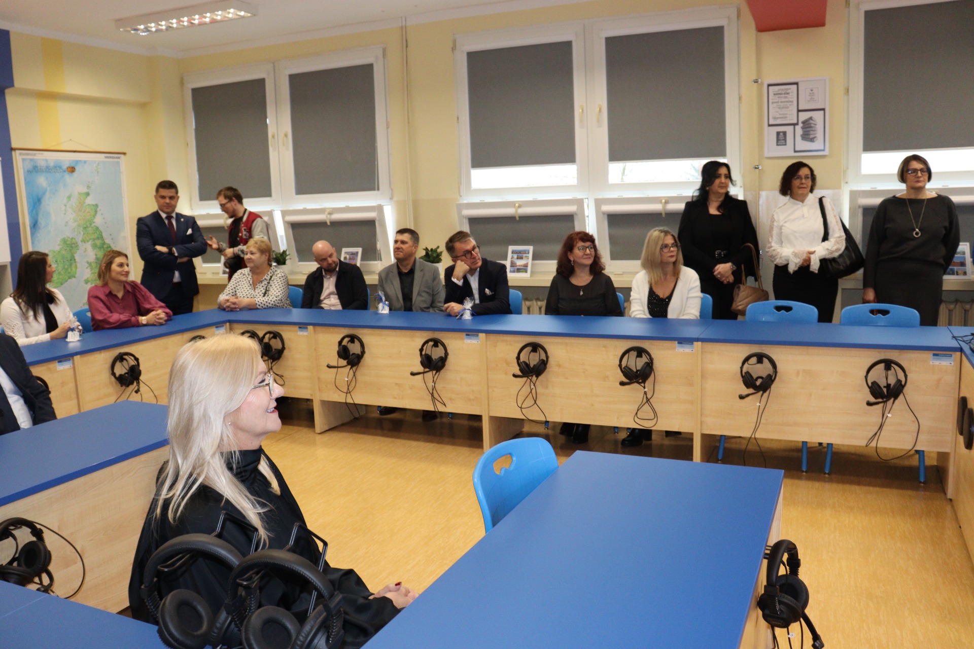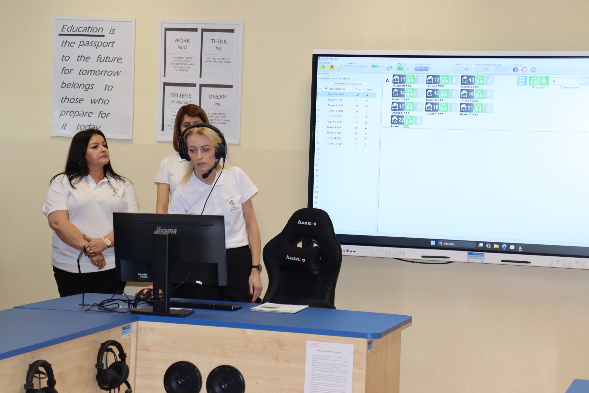pracownia językowa - olśniewająca nowoczesnym sprzętem audio i stanowiskami, które aż proszą, by usiąść i zacząć mówić w obcym języku z pewnością godną rasowego poligloty;