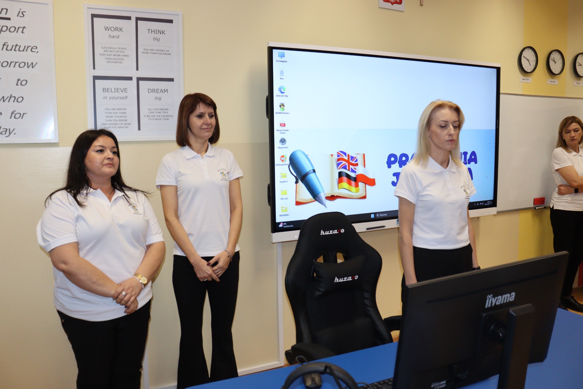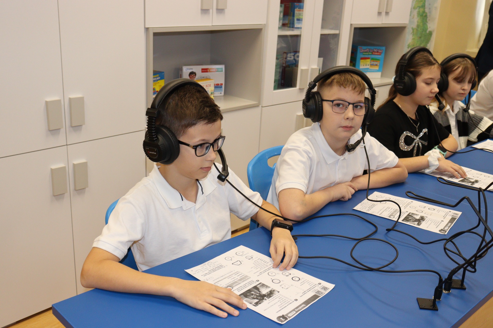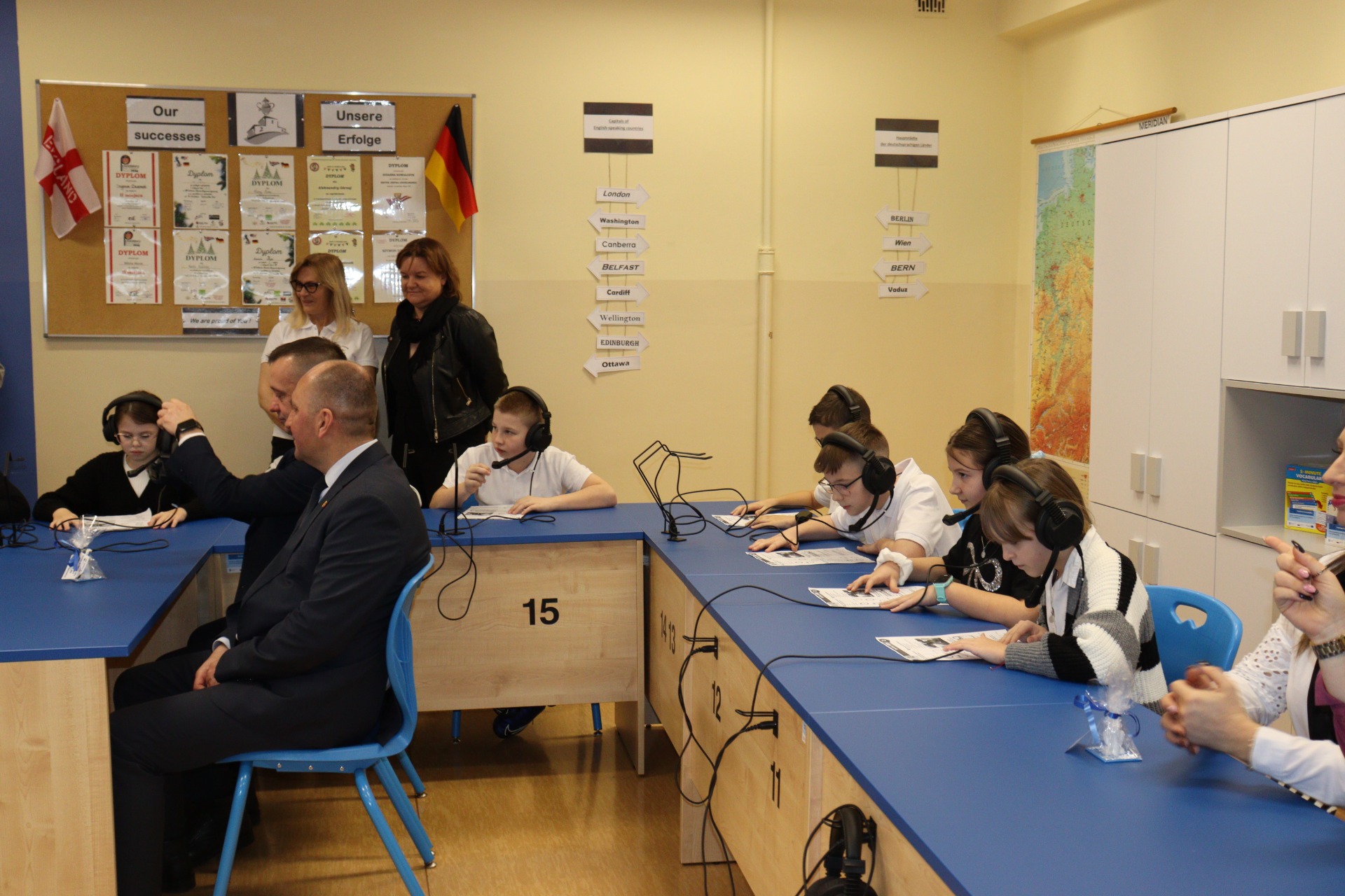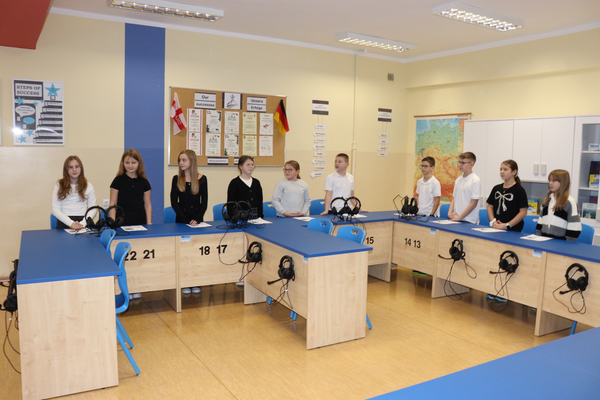 pracownia językowa - olśniewająca nowoczesnym sprzętem audio i stanowiskami, które aż proszą, by usiąść i zacząć mówić w obcym języku z pewnością godną rasowego poligloty;
