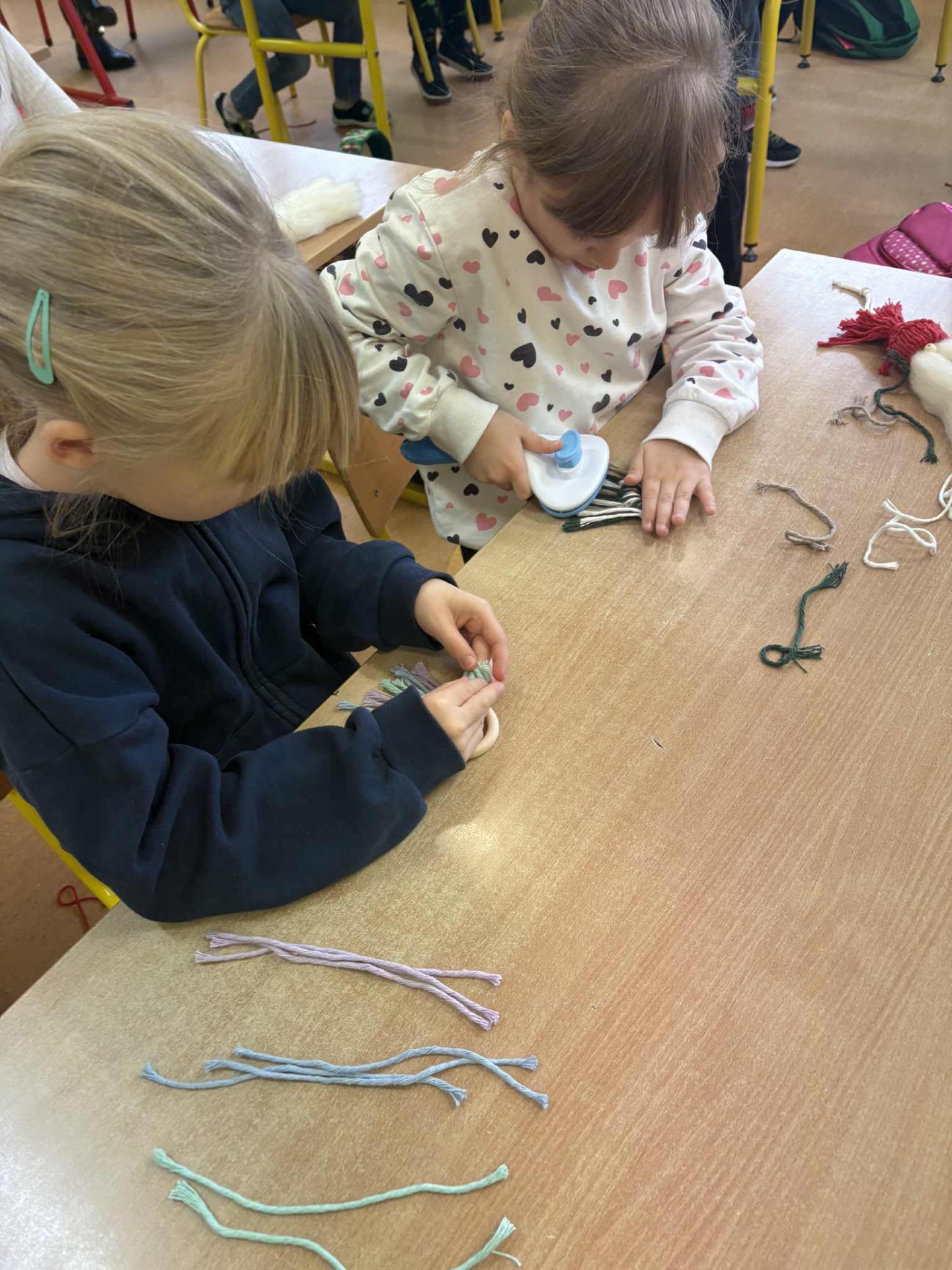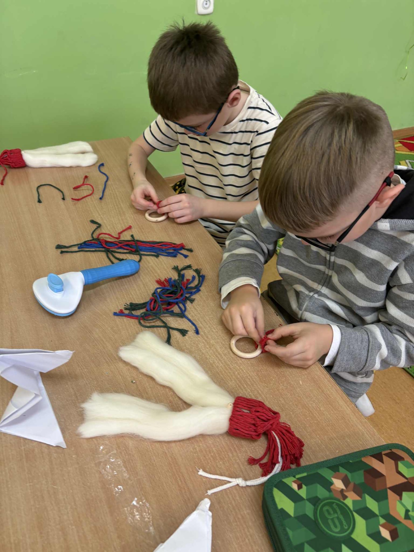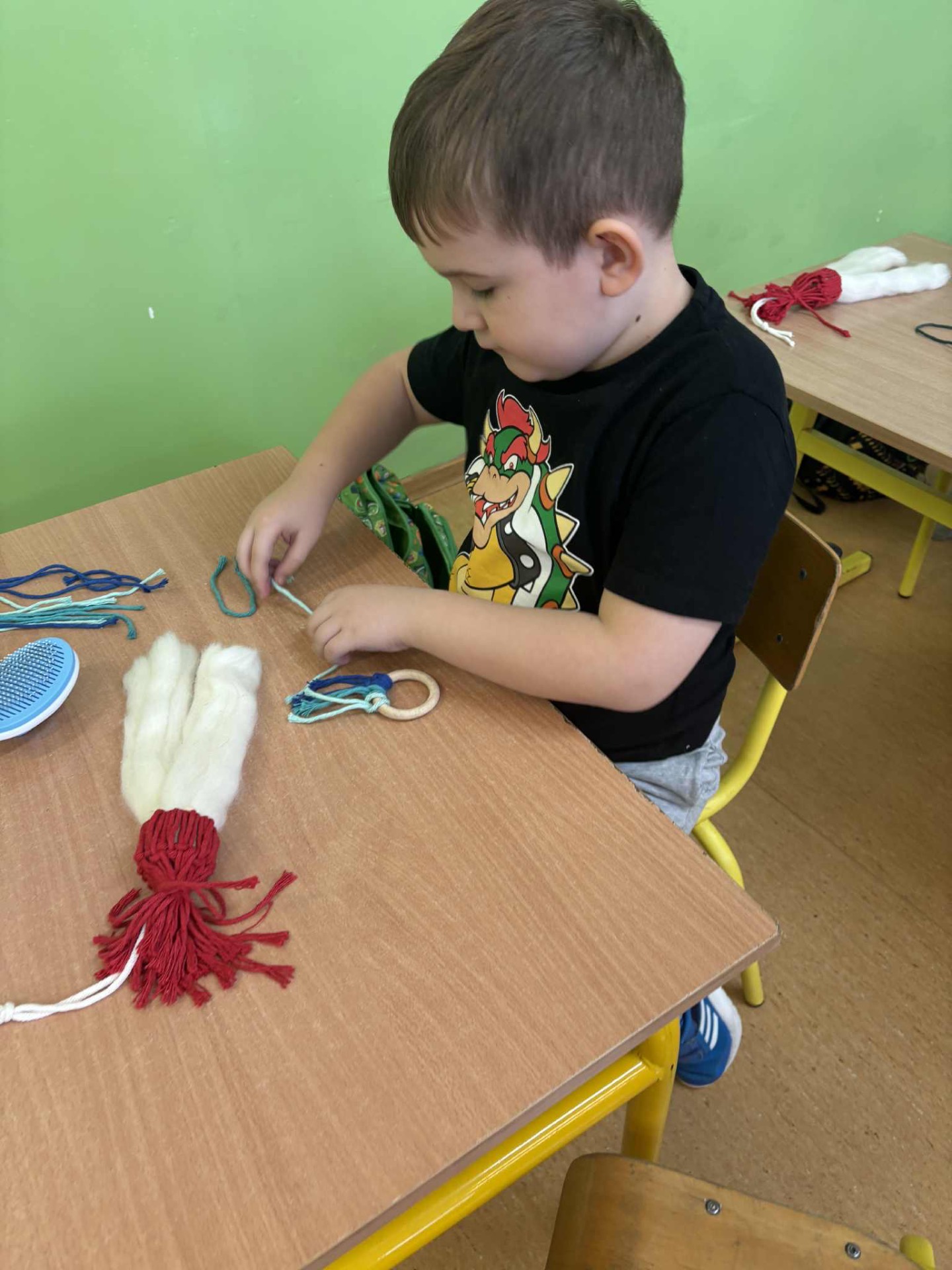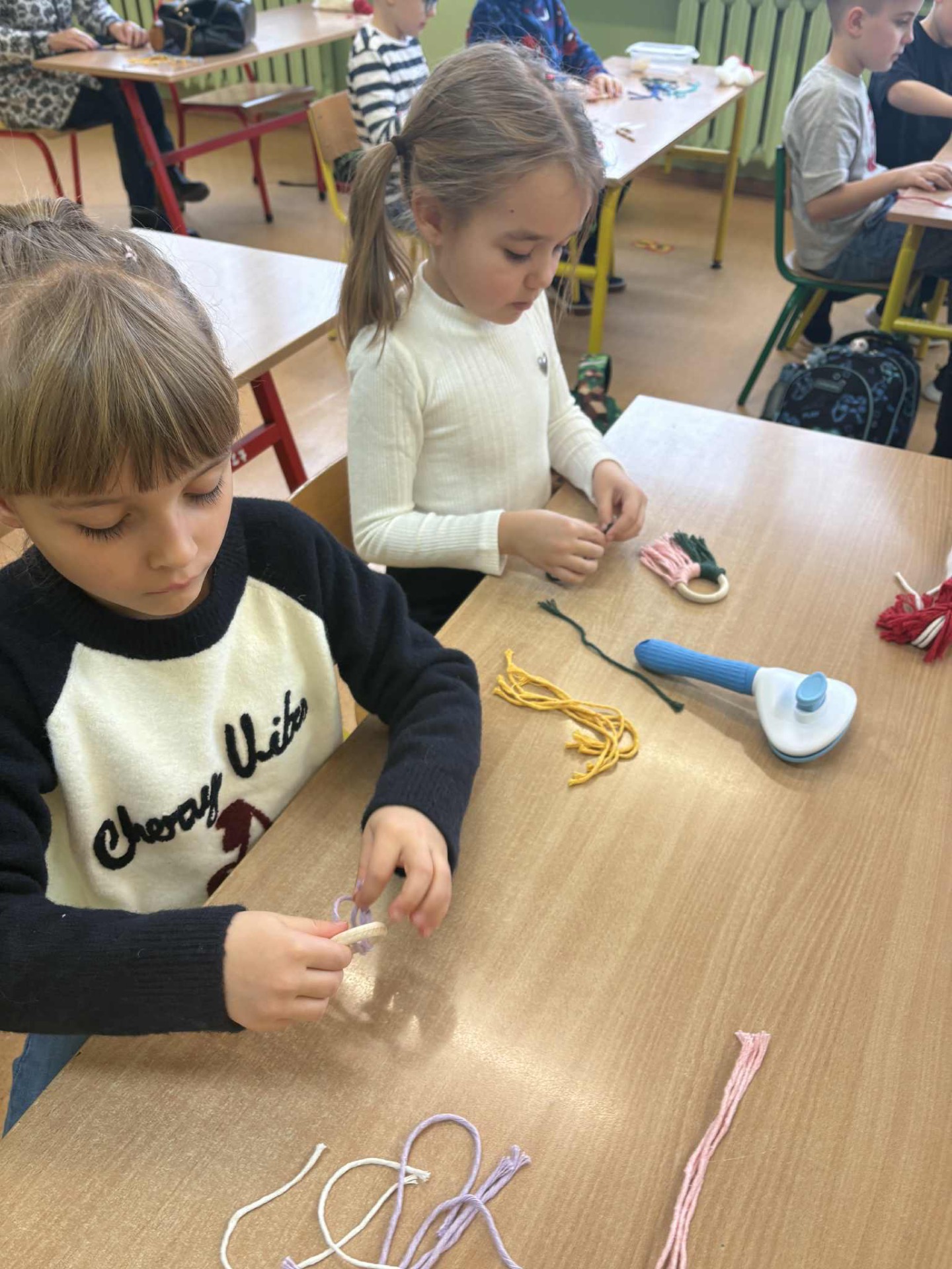 W poniedziałkowy dzień 1 grudnia uczniowie klasy IA brali udział w świątecznych🎄warsztatach z makramy. Dzieci wykonywały 2 ozdoby świąteczne: Mikołaja z długą brodą 🎅🏻 i zawieszkę. Pracę te pod czujnym kierunkiem Pani Oli wykonywały z dużym zaangażowaniem i dbałością o szczegóły. Uczniowie z wielką starannością dobierali kolory włóczki, zawiązywali pętelki, tworząc niepowtarzalne świąteczne dekoracje. Zajęcia przebiegały w miłej atmosferze i napewno udzielił im się świąteczny nastrój. Pierwszoklasiści mogli rozwijać wyobraźnię i swoje zdolności artystyczne. Brawo dla klasy IA🧑🎄
