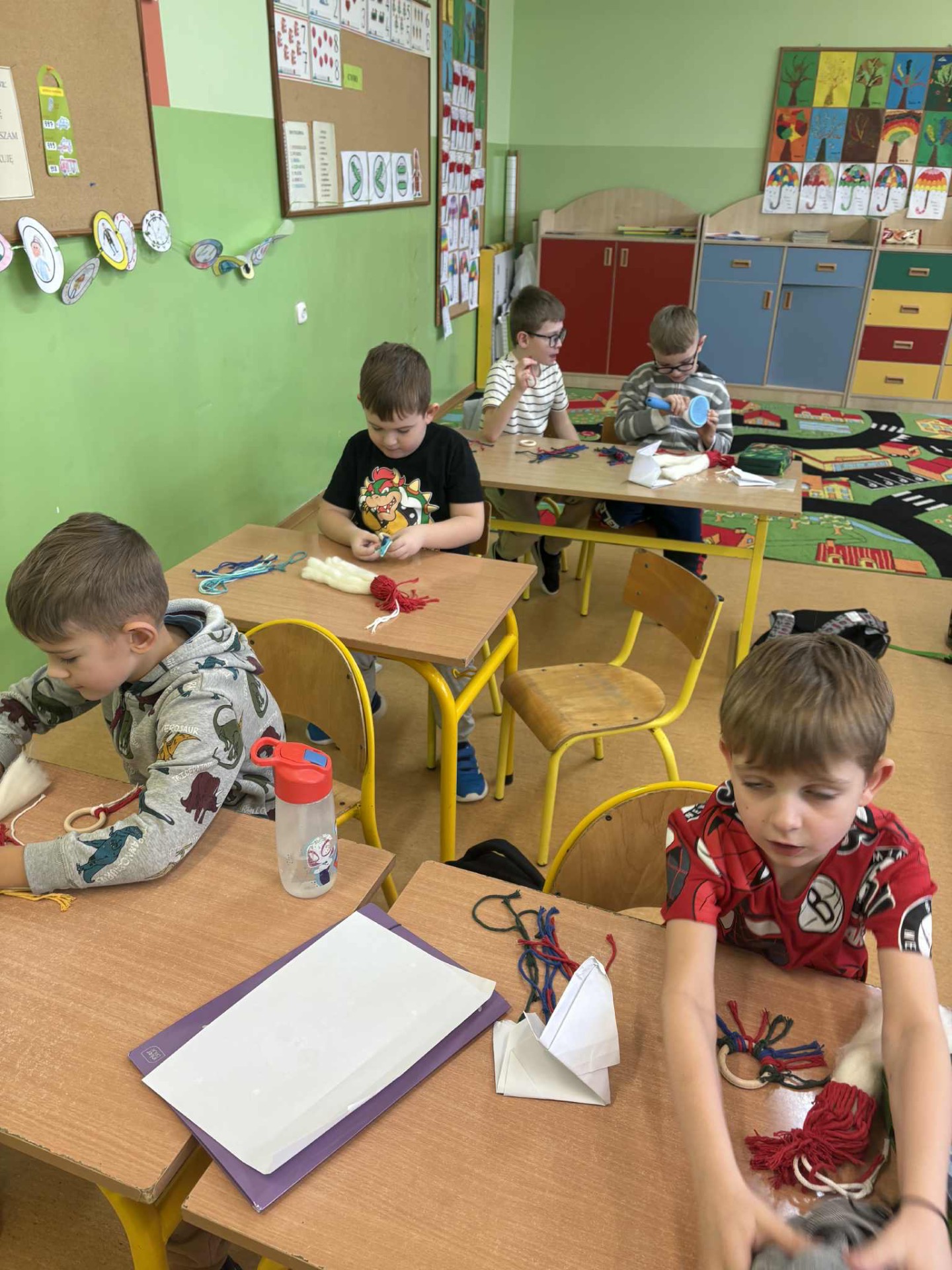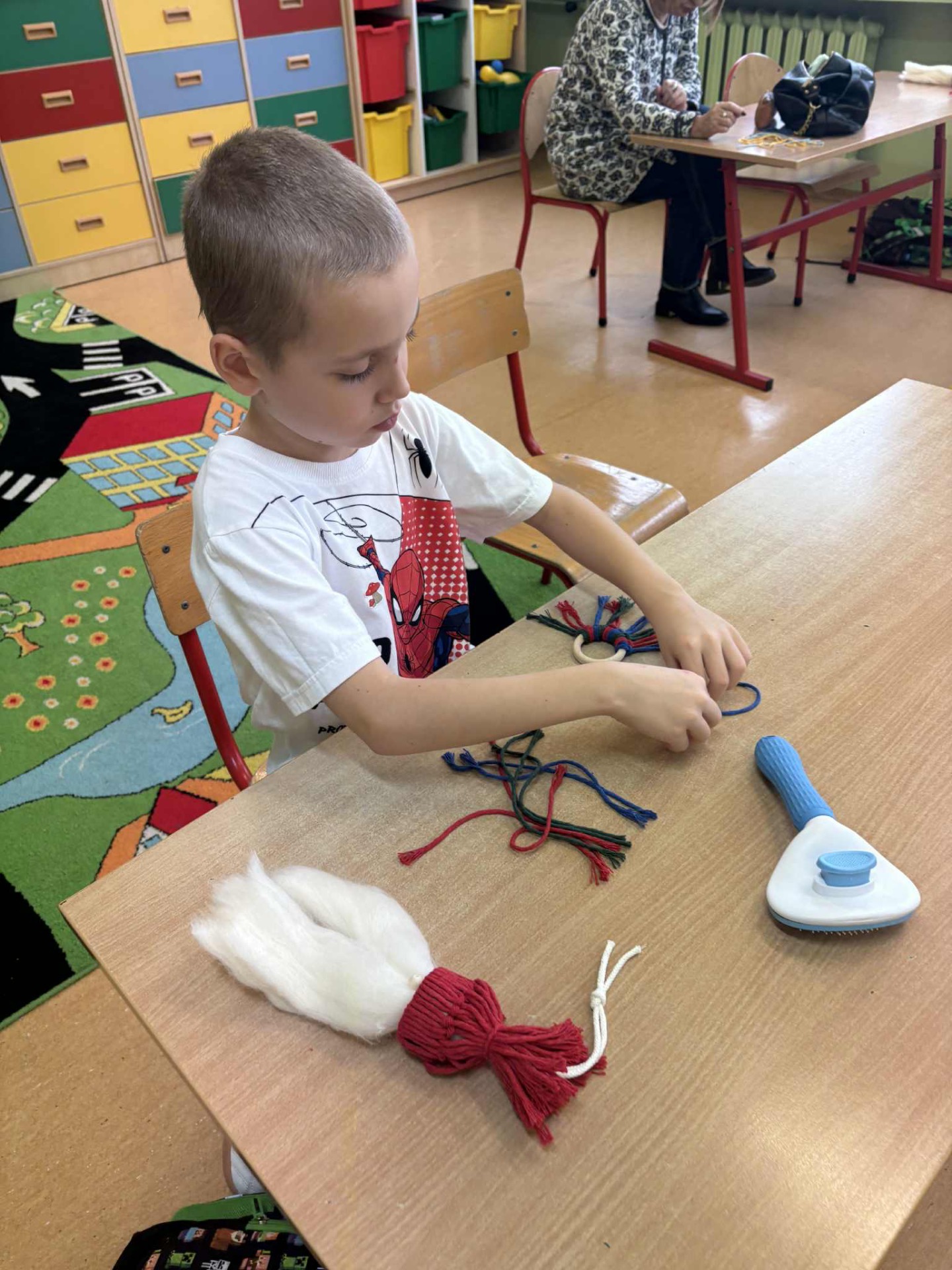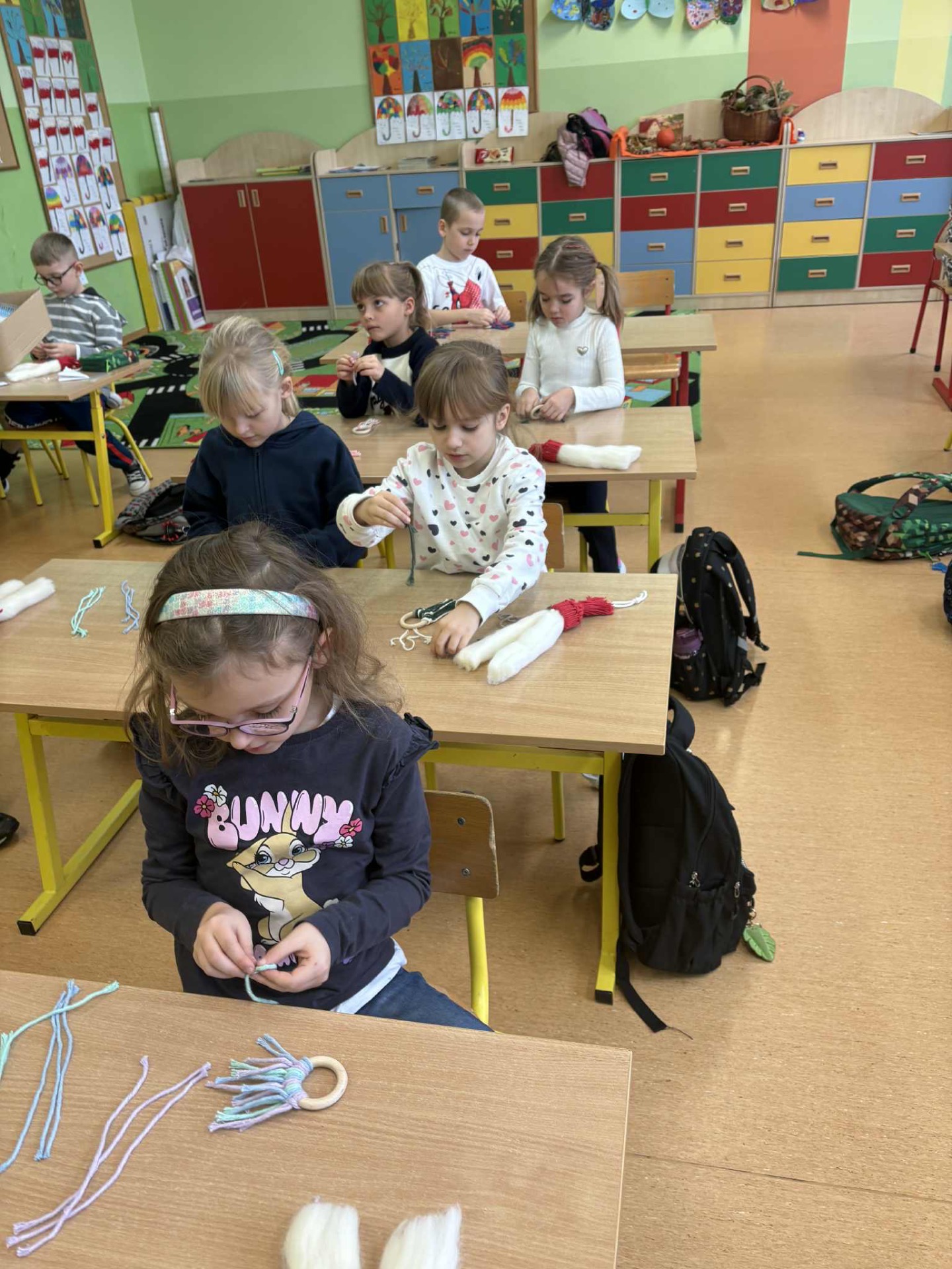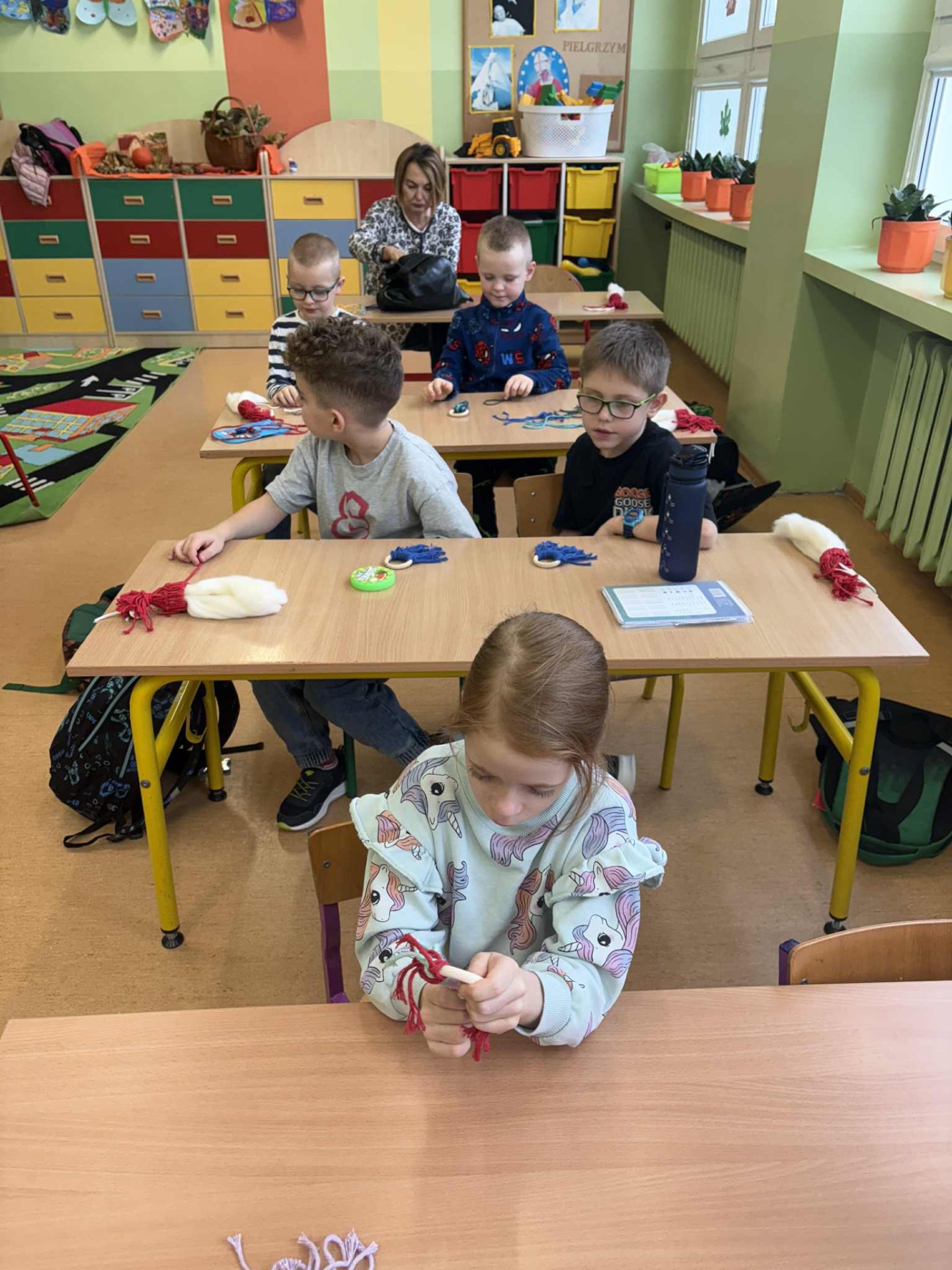 W poniedziałkowy dzień 1 grudnia uczniowie klasy IA brali udział w świątecznych🎄warsztatach z makramy. Dzieci wykonywały 2 ozdoby świąteczne: Mikołaja z długą brodą 🎅🏻 i zawieszkę. Pracę te pod czujnym kierunkiem Pani Oli wykonywały z dużym zaangażowaniem i dbałością o szczegóły. Uczniowie z wielką starannością dobierali kolory włóczki, zawiązywali pętelki, tworząc niepowtarzalne świąteczne dekoracje. Zajęcia przebiegały w miłej atmosferze i napewno udzielił im się świąteczny nastrój. Pierwszoklasiści mogli rozwijać wyobraźnię i swoje zdolności artystyczne. Brawo dla klasy IA🧑🎄