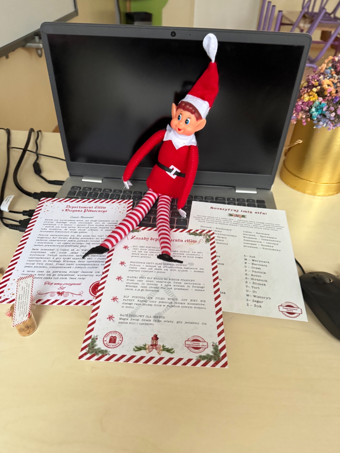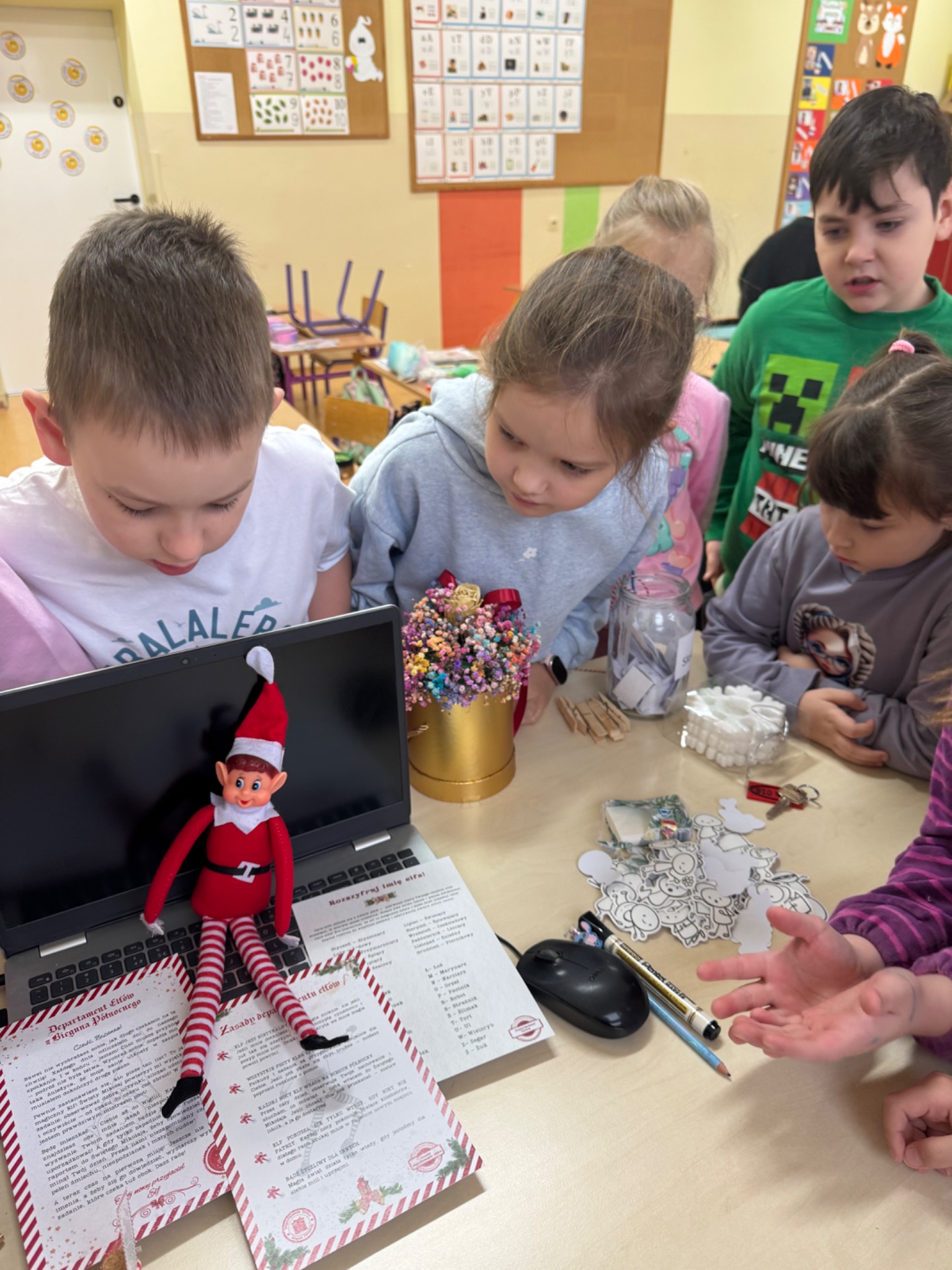 Elf od razu oznajmił, że zostaje z klasą aż do 6 grudnia, a w tym czasie codziennie będzie zdawał raport Mikołajowi.