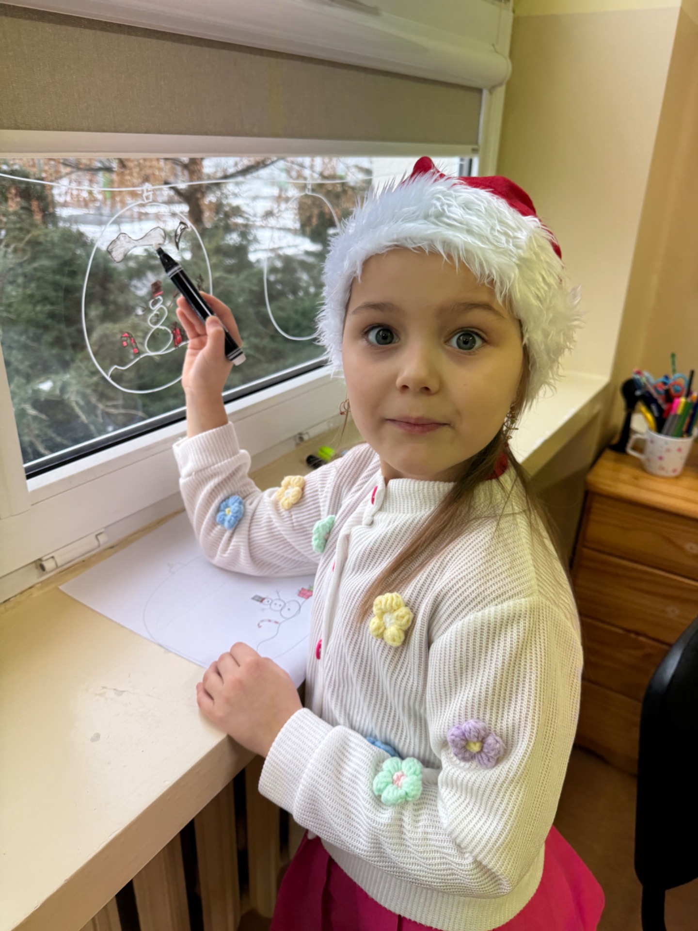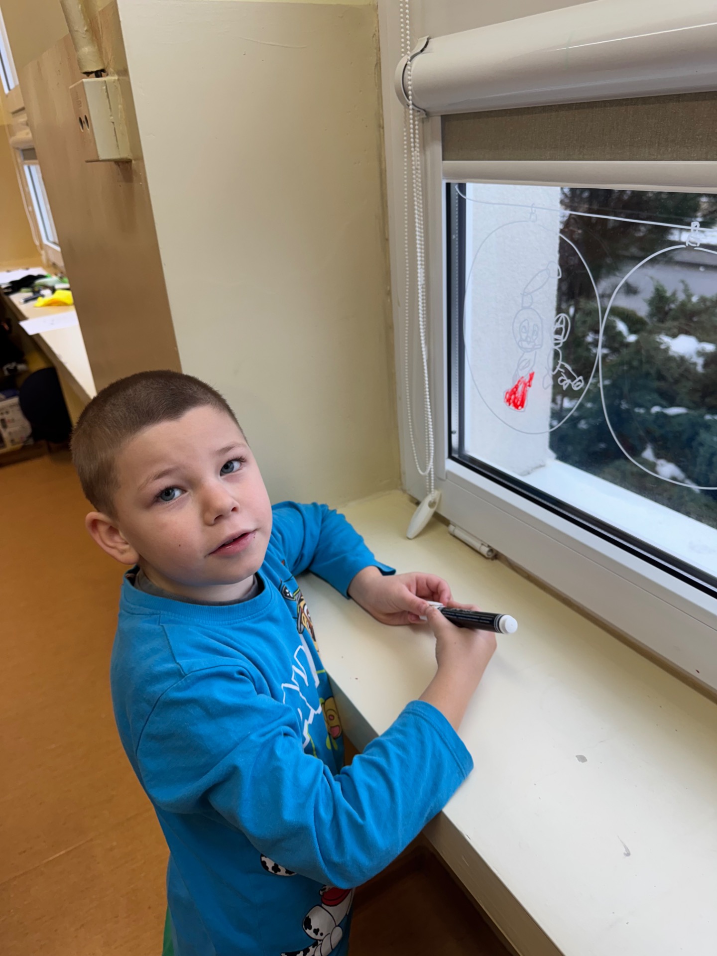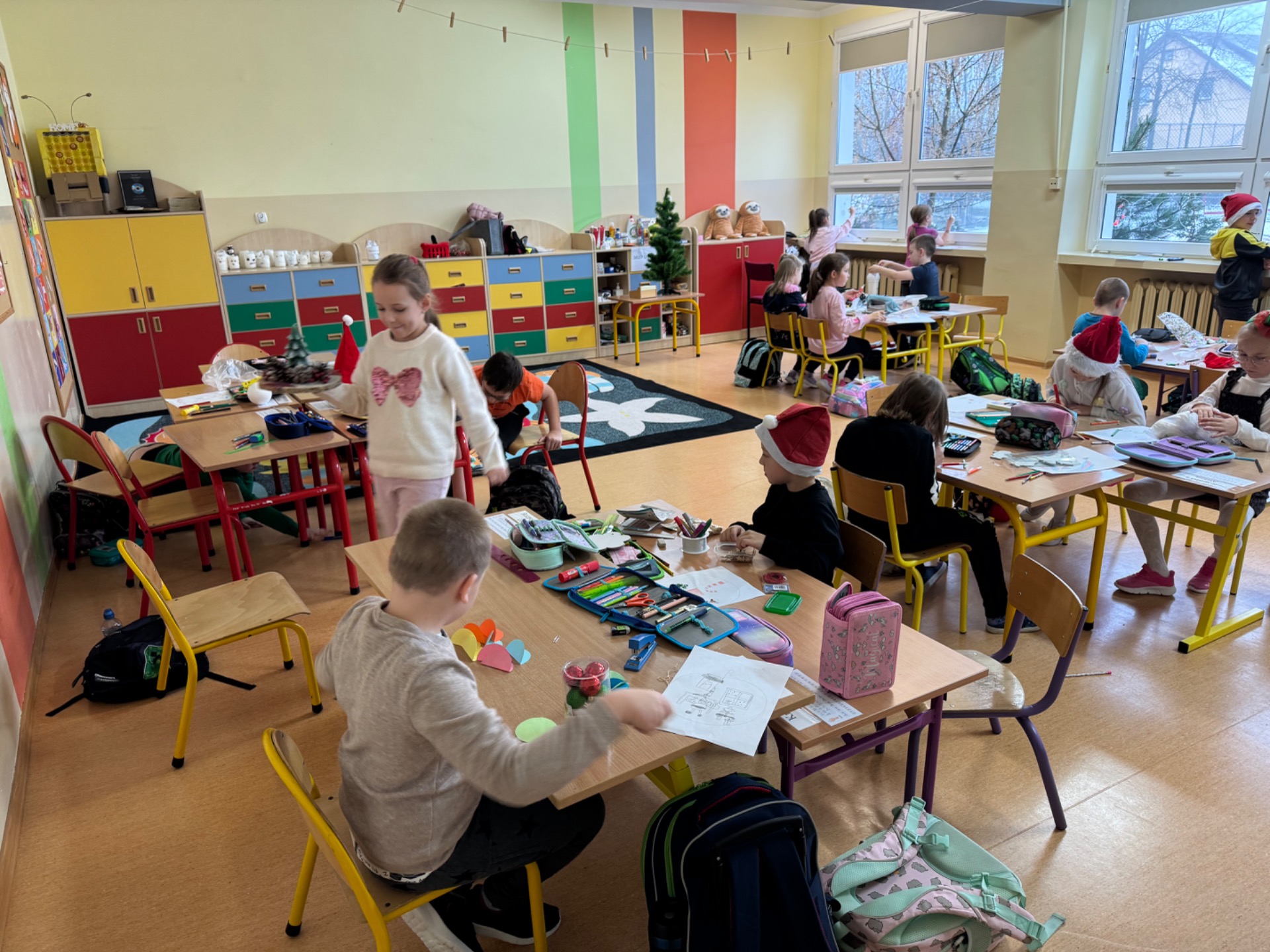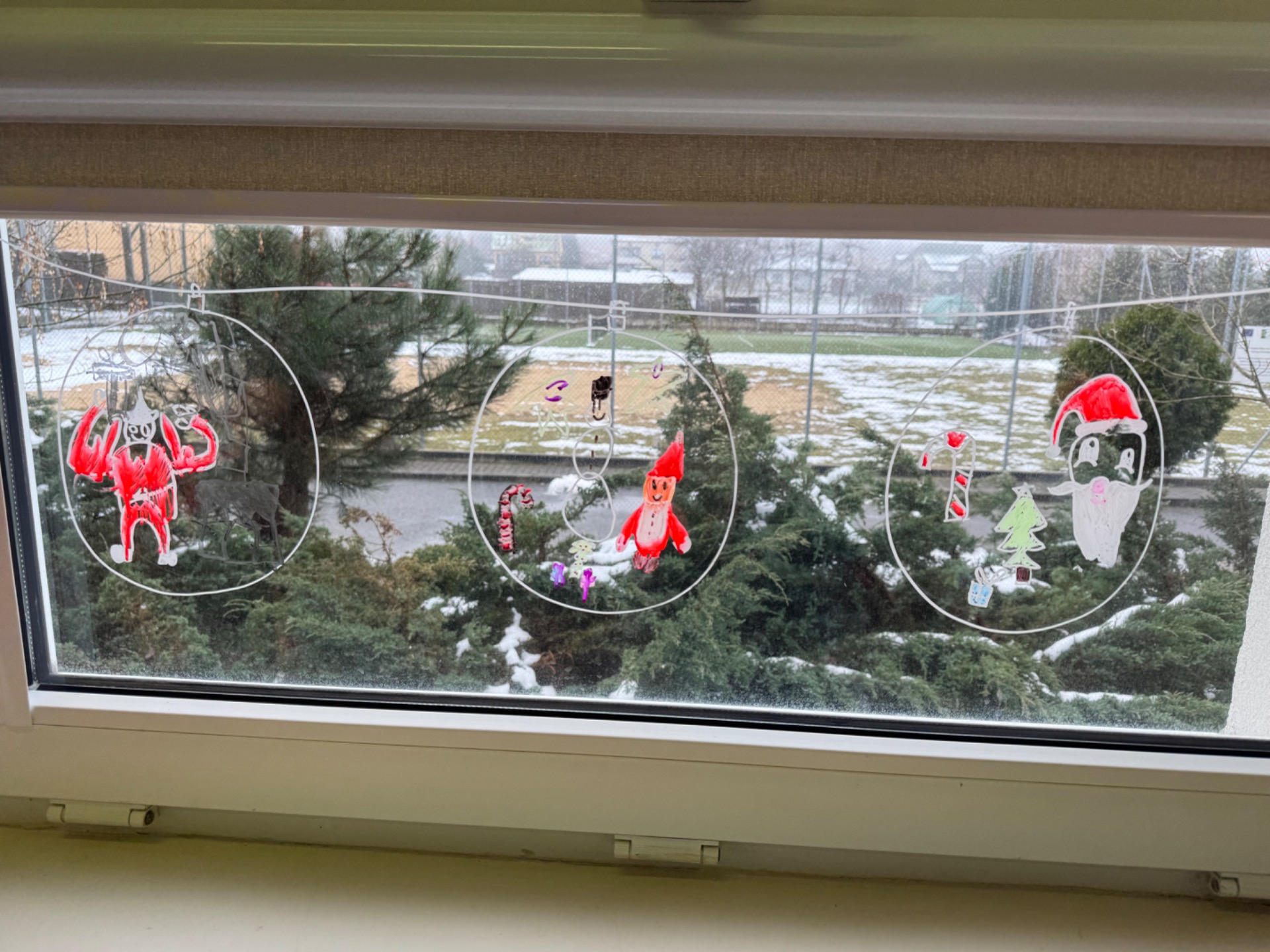 W klasie 1b magia działa na najwyższych obrotach! Pani Ola wraz z uczniami ozdabiała okna tak intensywnie, że mazaki zaczęły się zastanawiać, czy nie przysługuje im urlop. Rysunki wyszły tak piękne, że gdyby Mikołaj miał Facebooka, to pewnie nagrałby z nimi filmik z filtrem „śnieżna magia”.