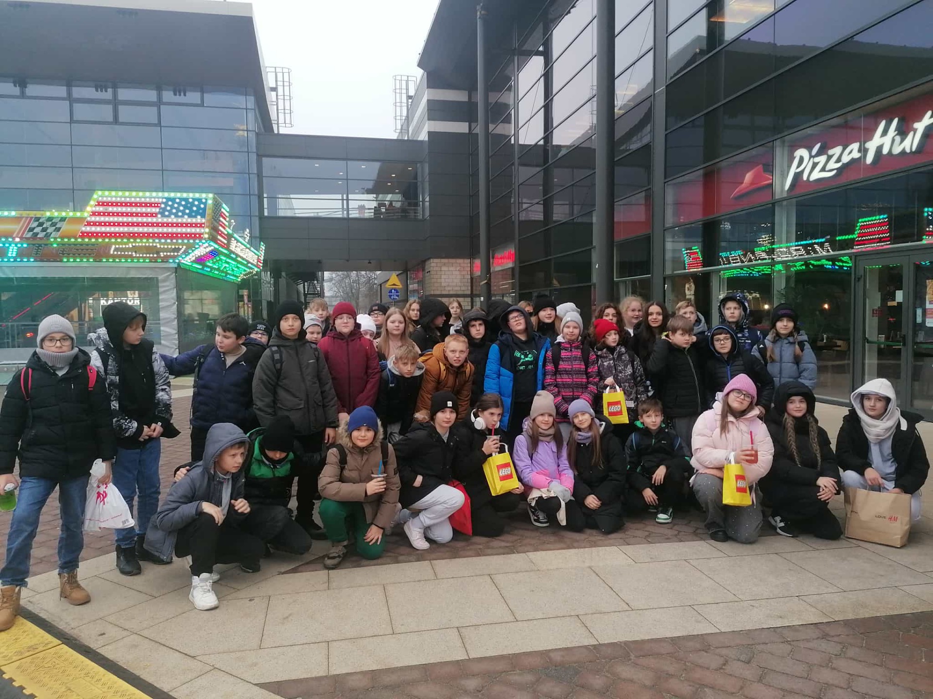 Po sportowych wyzwaniach przyszedł czas na spokojniejszą część wycieczki – spacer po Manufakturze. Uczniowie mogli podziwiać wyjątkową architekturę tego miejsca, poznać jego historię oraz zobaczyć różne przestrzenie kompleksu. Nie zabrakło również okazji do zrobienia zdjęć w świątecznych dekoracjach, zakupu prezentów czy krótkiego odpoczynku.