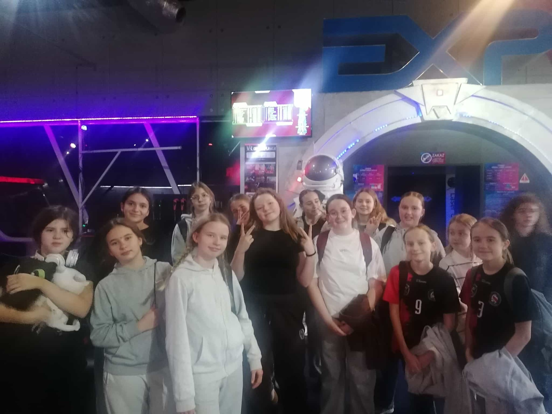 Następnie grupa udała się na paintball laserowy. Po podziale na drużyny i założeniu specjalnych kamizelek uczniowie ruszyli do areny, gdzie liczyła się współpraca, szybkie reakcje i dobrze przemyślana strategia. Rywalizacja była pełna emocji, a cały przebieg zabawy odbywał się w bezpiecznych warunkach i w świetnej atmosferze.