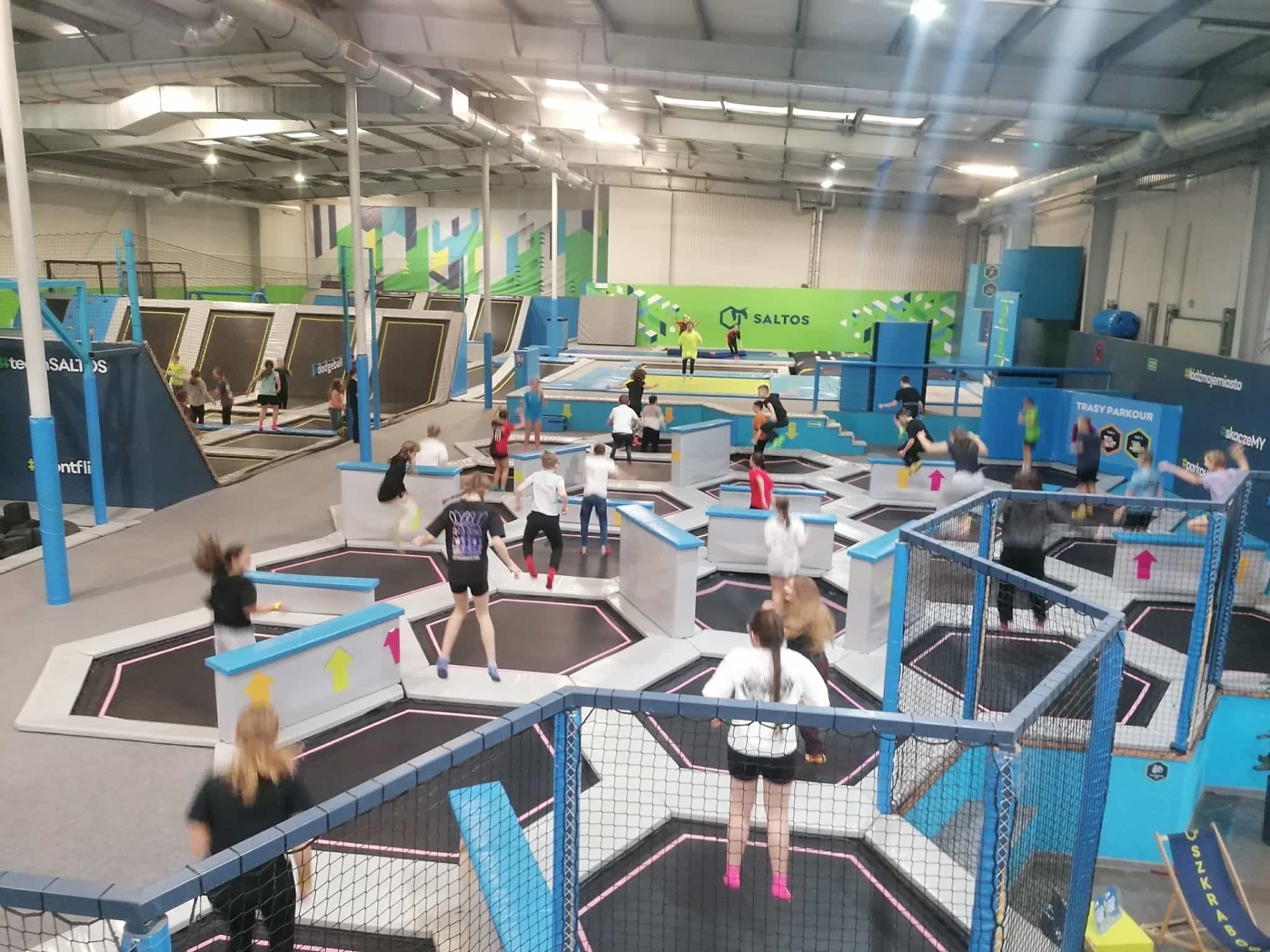Uczniowie klas 5a, 5b i 6a wzięli udział w pełnej atrakcji wycieczce do Łodzi. Pierwszym punktem programu był park trampolin Saltos, gdzie na uczestników czekały strefy skoków, tor przeszkód oraz baseny z gąbkami. Pod okiem instruktorów uczniowie mogli ćwiczyć różne ewolucje, brać udział w mini–zawodach i po prostu świetnie się bawić. Energia i radość towarzyszyły wszystkim od samego początku.