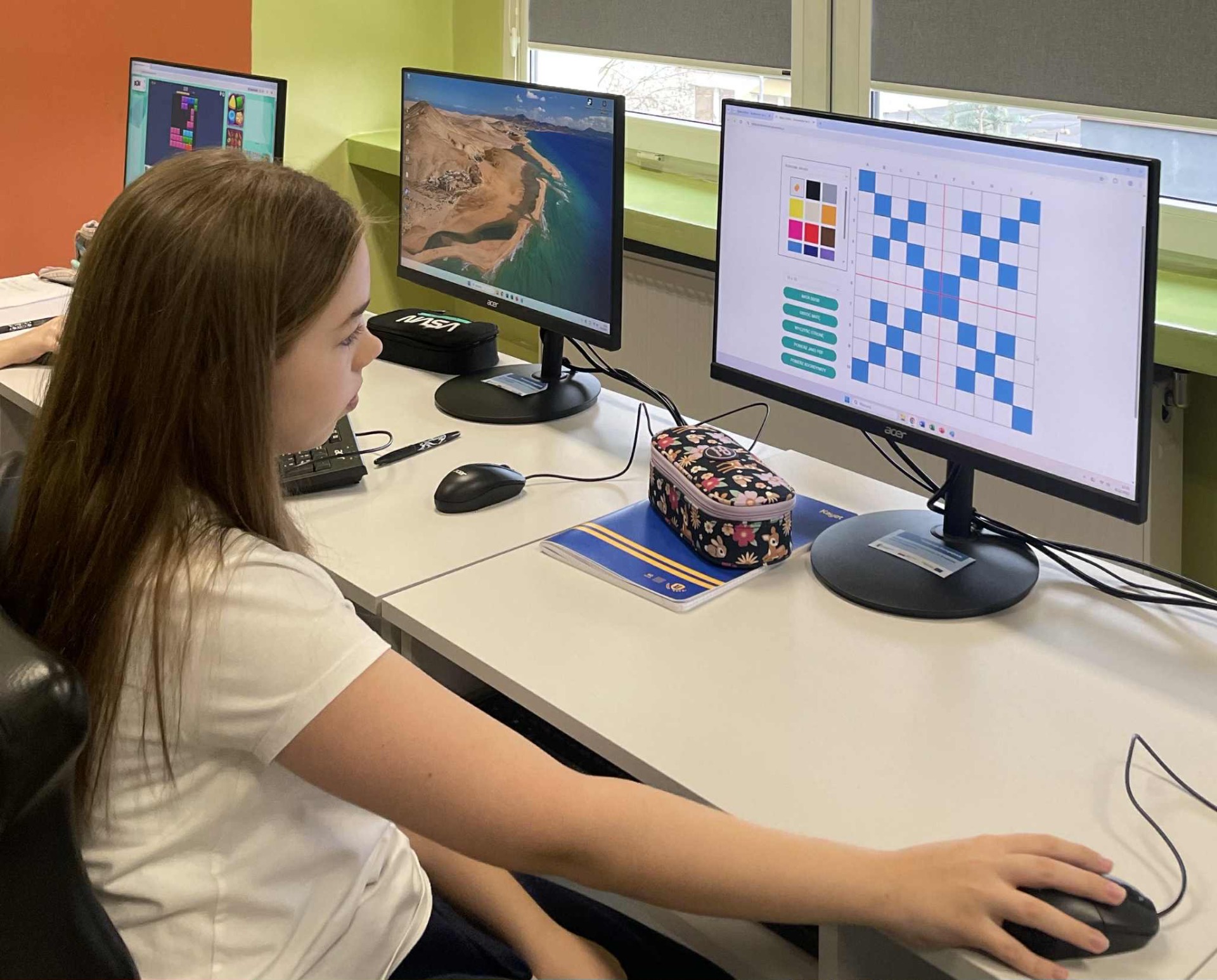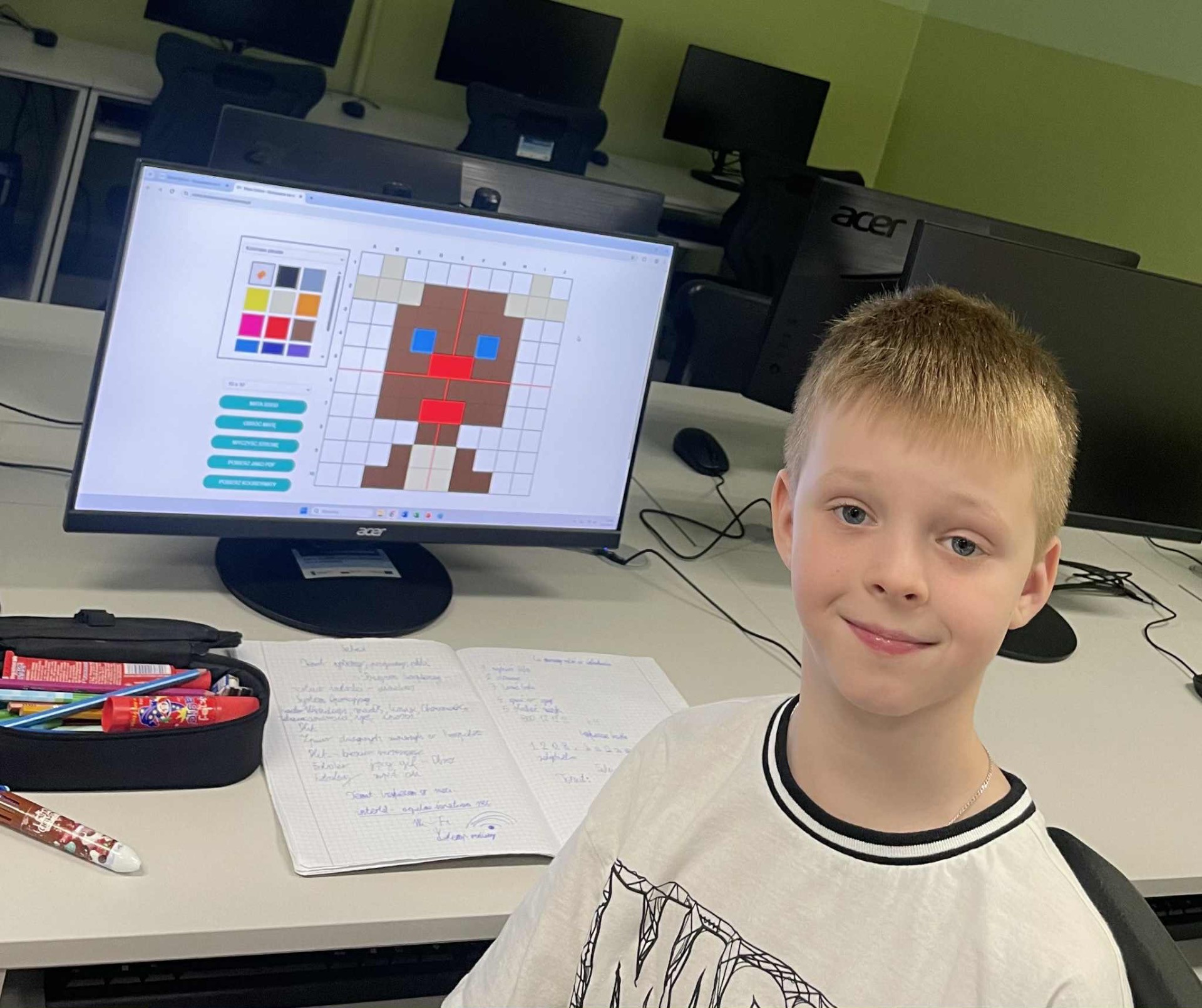 Pomagają nam w tym komputery w nowej pracowni i nowe maty do kodowania, które przyniósł nam 🎅