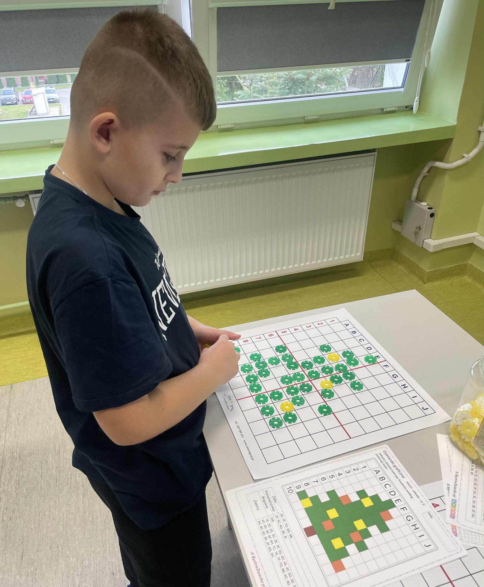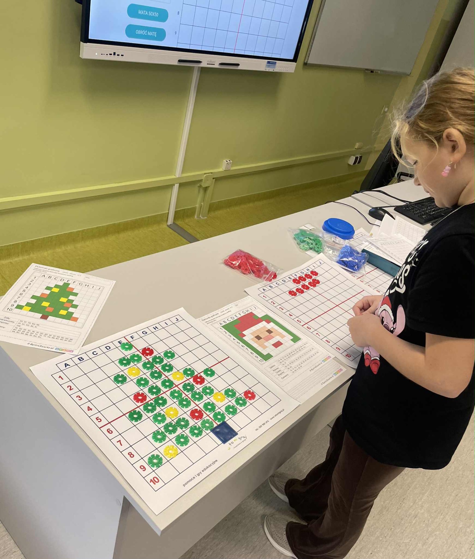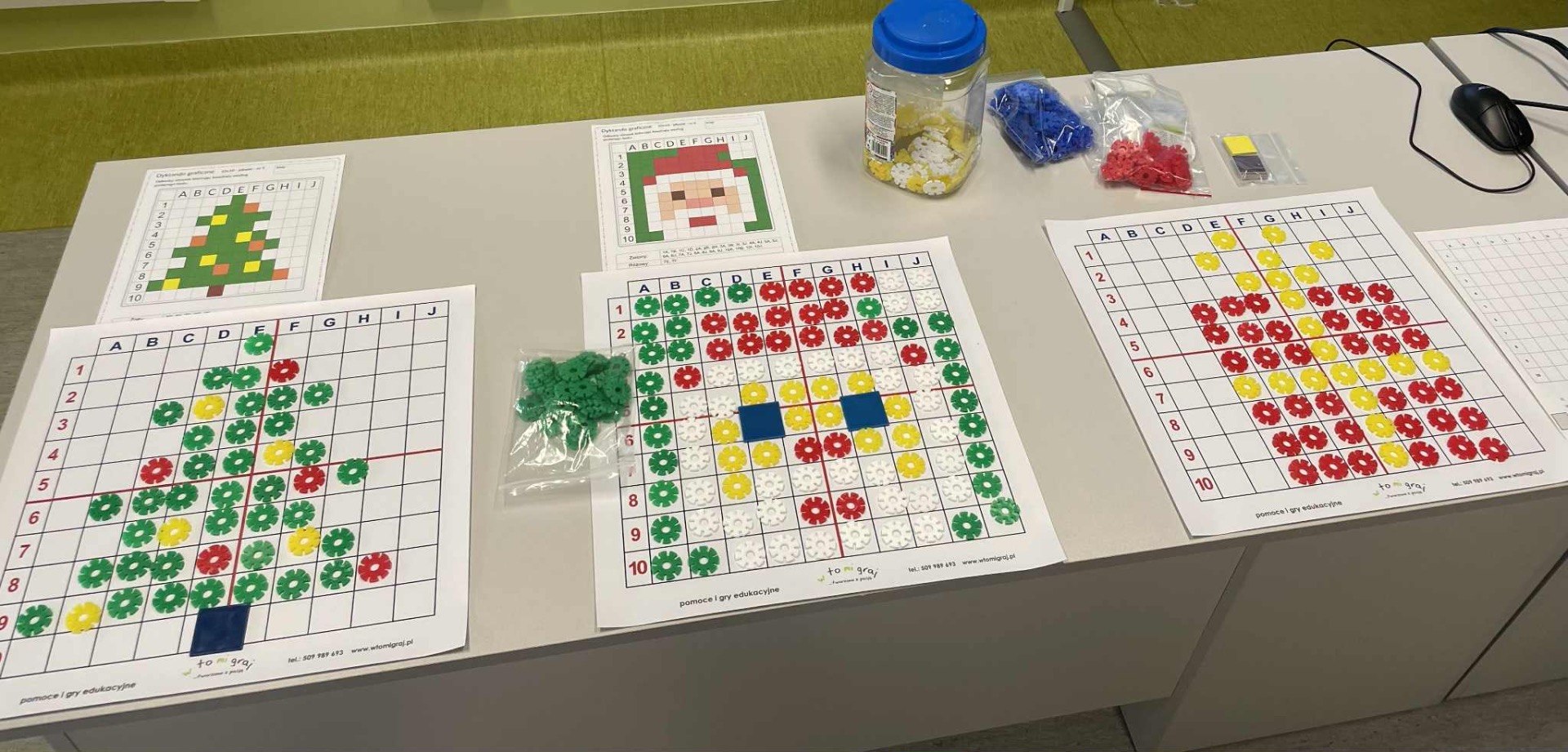 Układając pikselowe obrazki Mikołaja, reniferów, choinek, prezentów, śnieżynek ćwiczymy symetrię, odczytujemy współrzędne i uczymy się podstaw kodowania😌