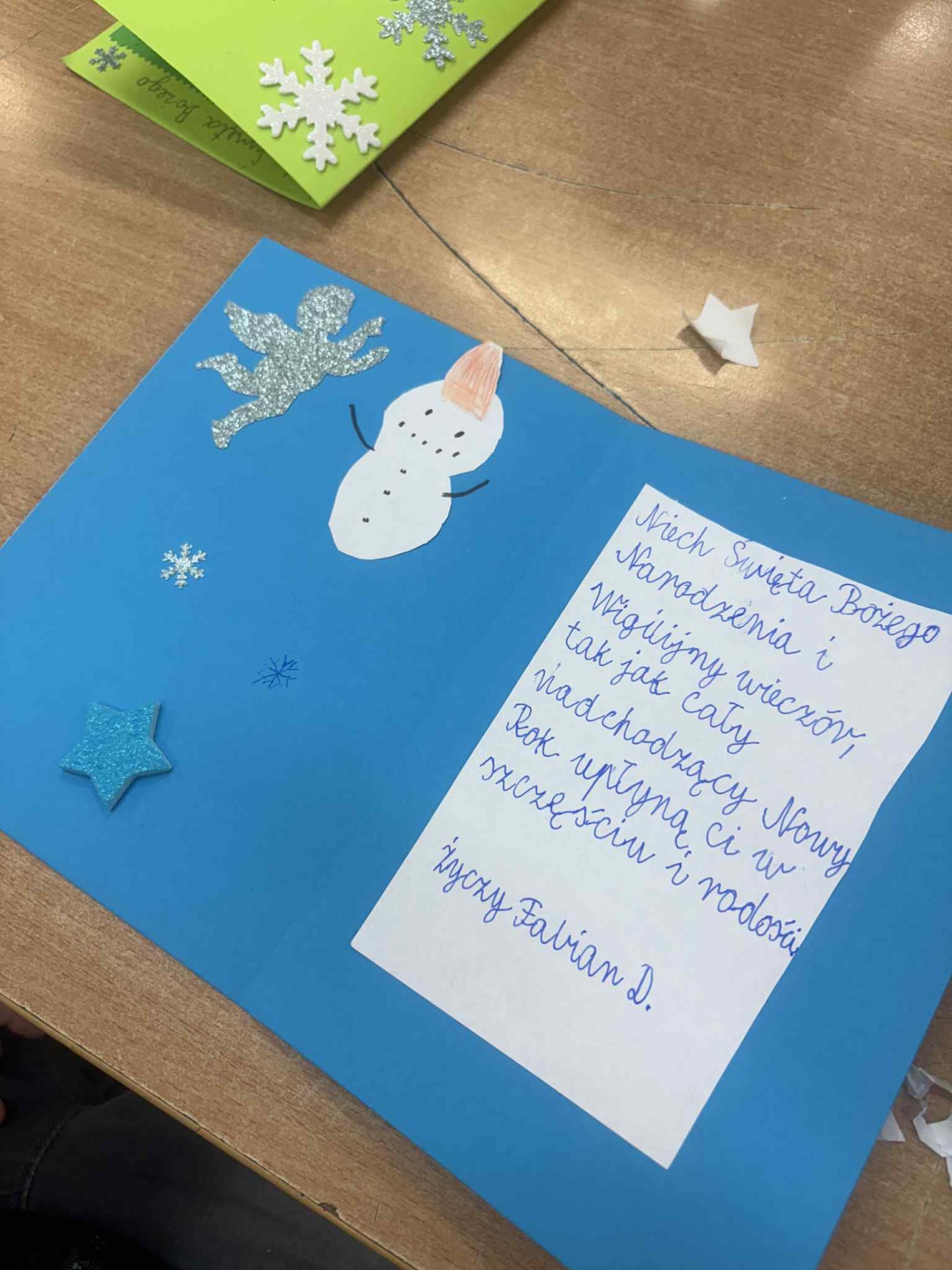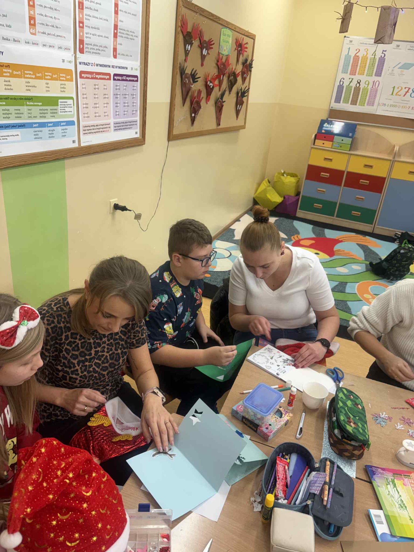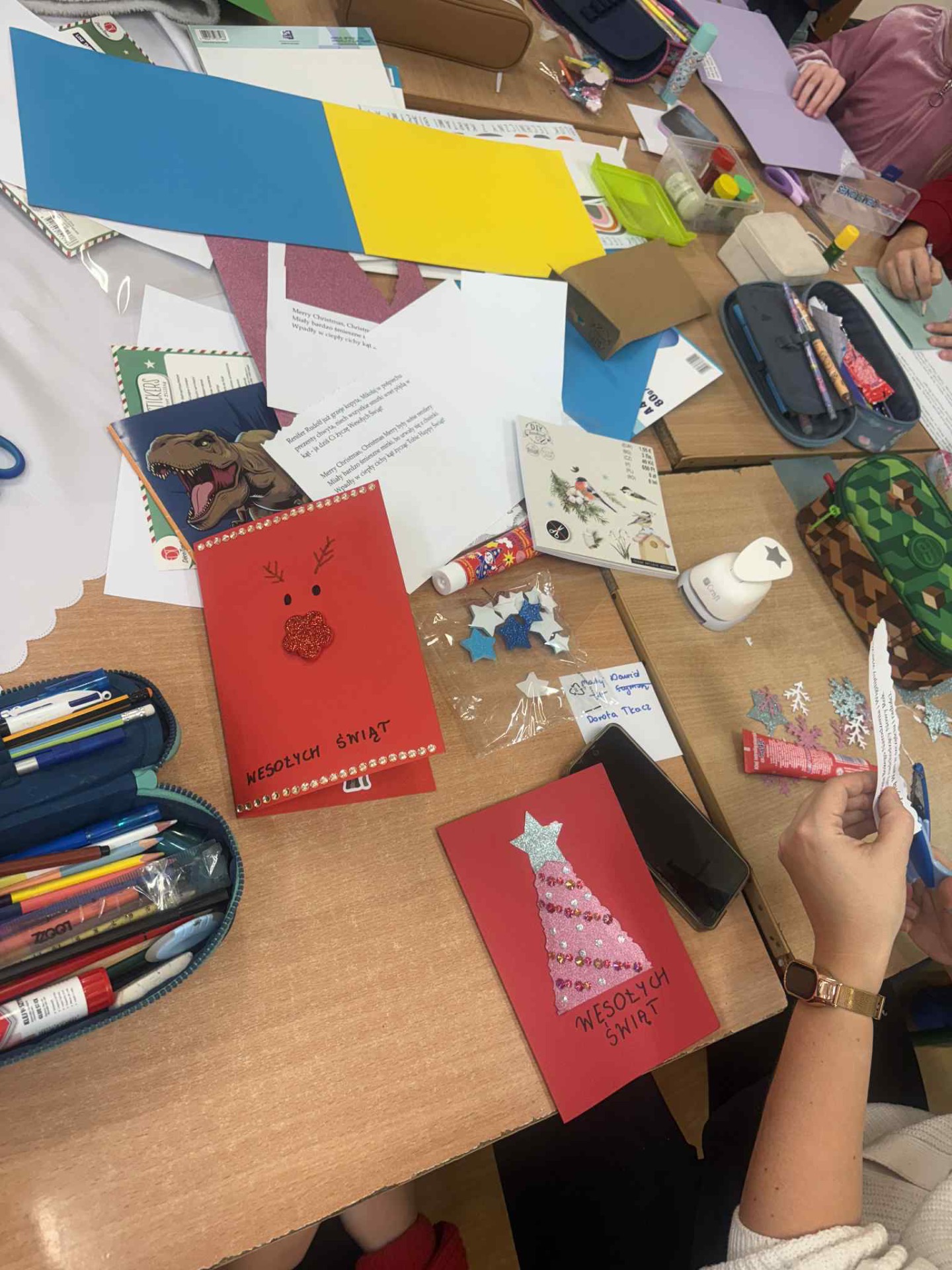 Boże Narodzenie tuż, tuż… Uczniowie klasy IIIa wraz z rodzicami przygotowują się do Świąt Bożego Narodzenia. W dniu dzisiejszym odbyły się zajęcia otwarte z udziałem rodziców. Rodzice i uczniowie z zapałem wykonywali karty świąteczne wykazując przy tym wiele pomysłowości i kreatywności. Karty już w tym tygodniu trafią do uczniów z Zespołu Szkół Ponadpodstawowych w Kamieńsku. Starsi koledzy z II LO dołączyli do naszej zabawy „ Wymiany Kart Świątecznych”.