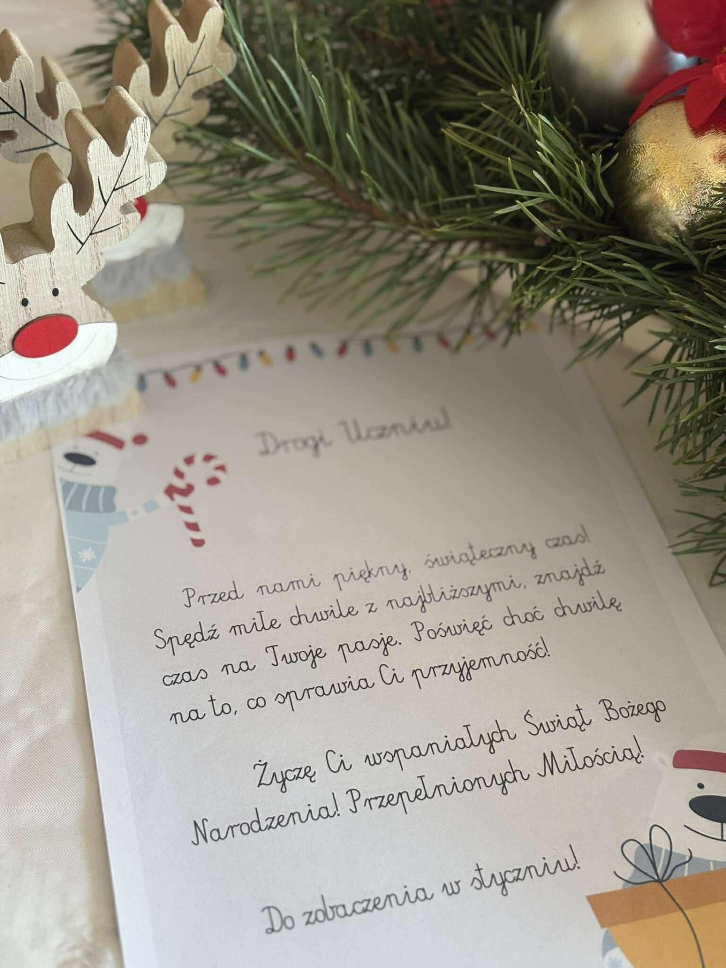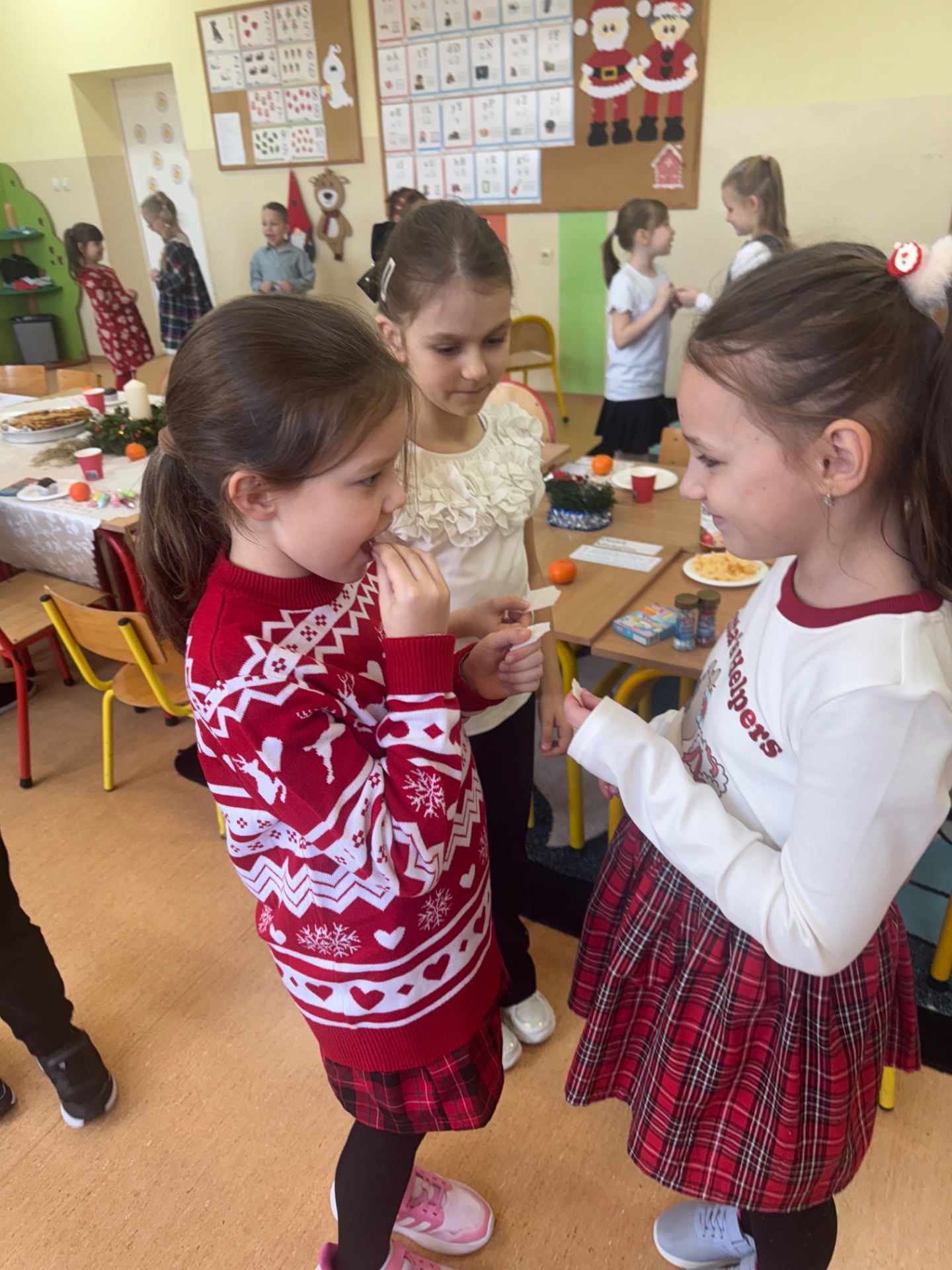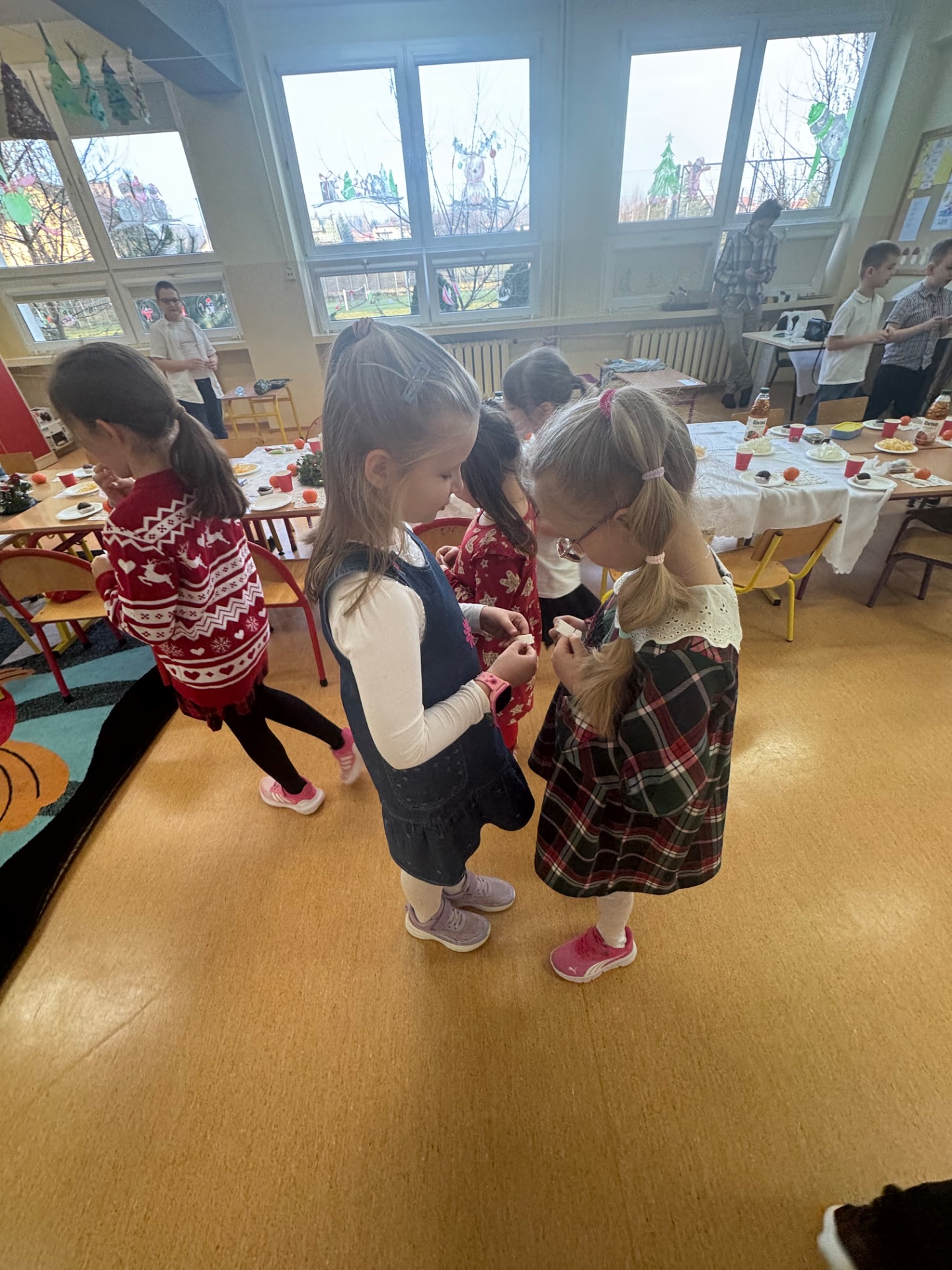 Szczególnym wydarzeniem były jasełka, które poruszyły serca i przypomniały nam o tym, co w świętach najważniejsze. Wspólne kolędowanie napełniło szkolne sale ciepłem, radością i dziecięcą spontanicznością.