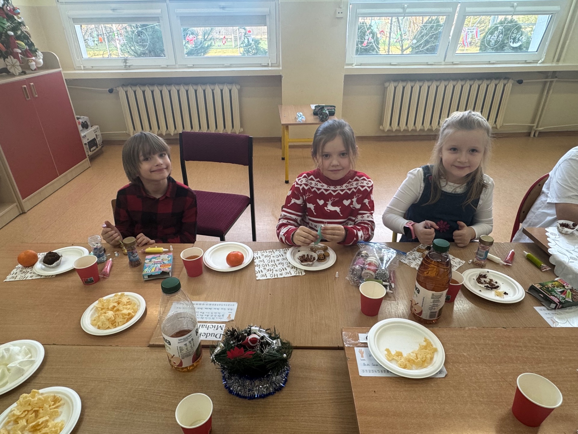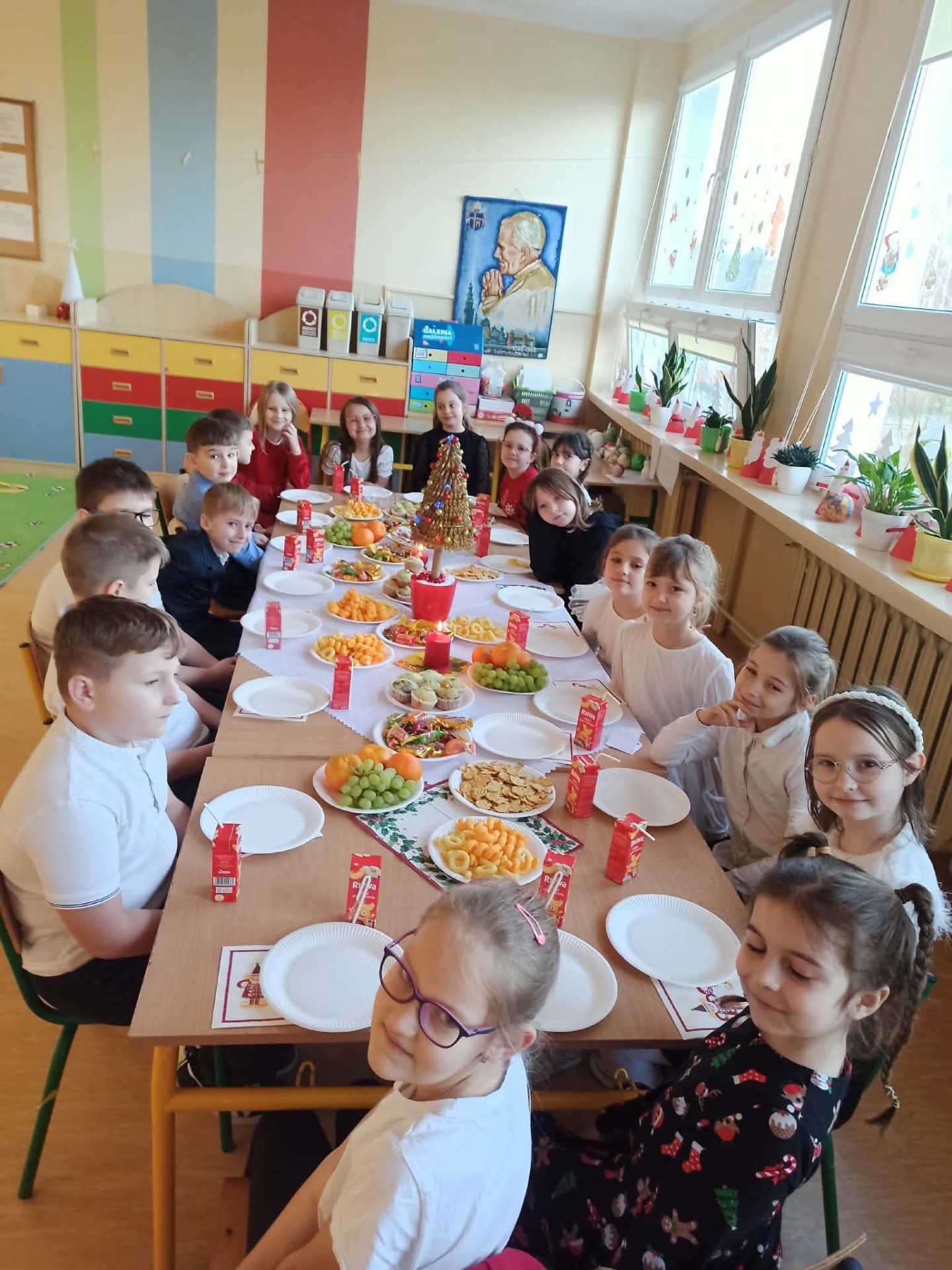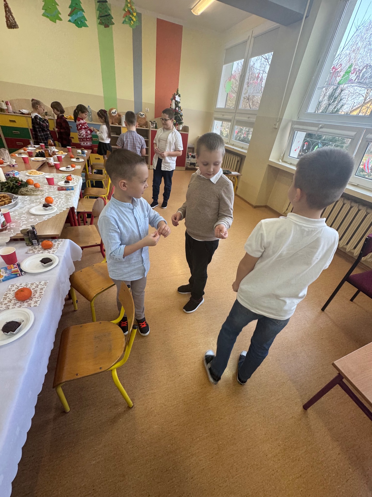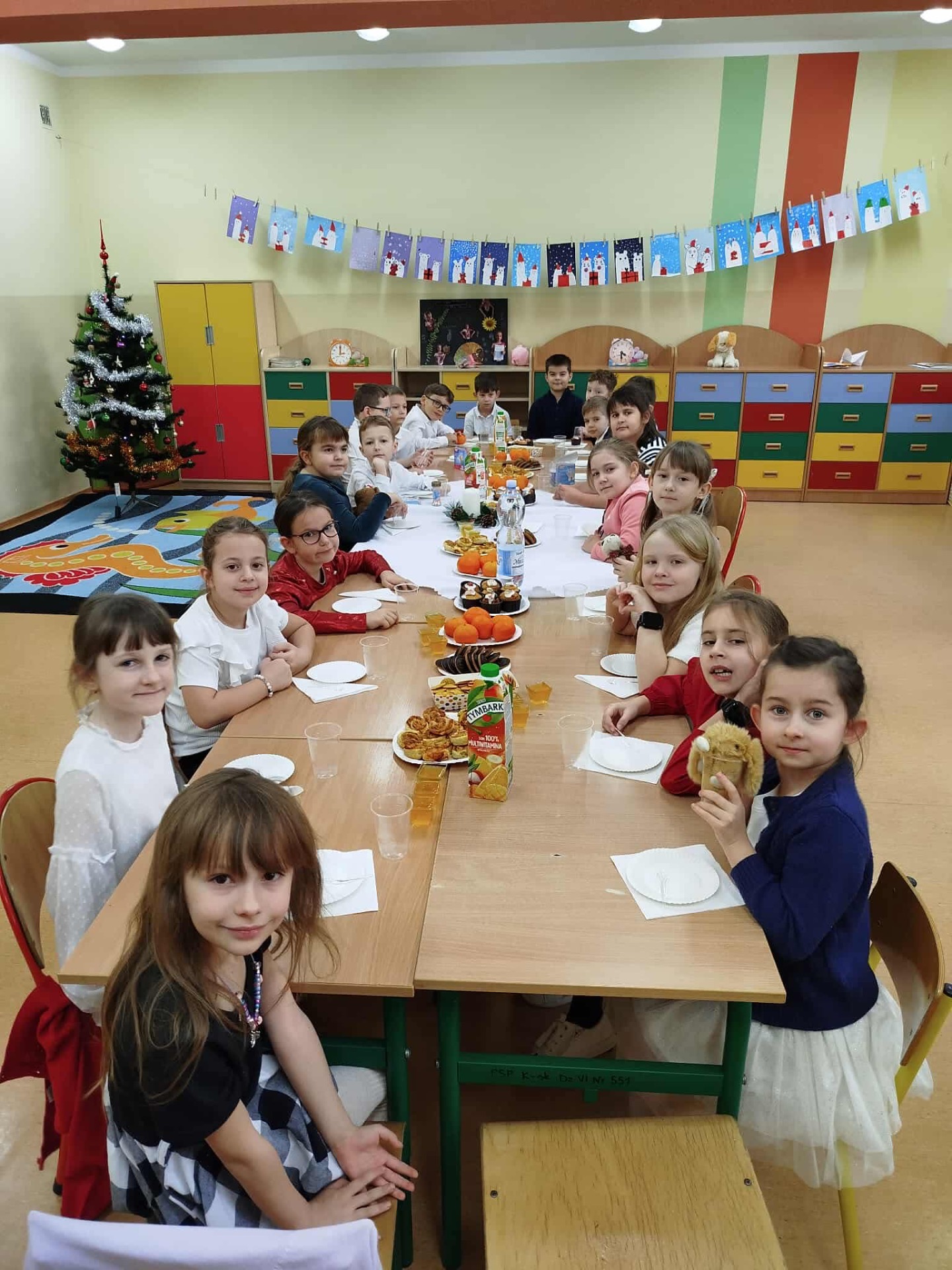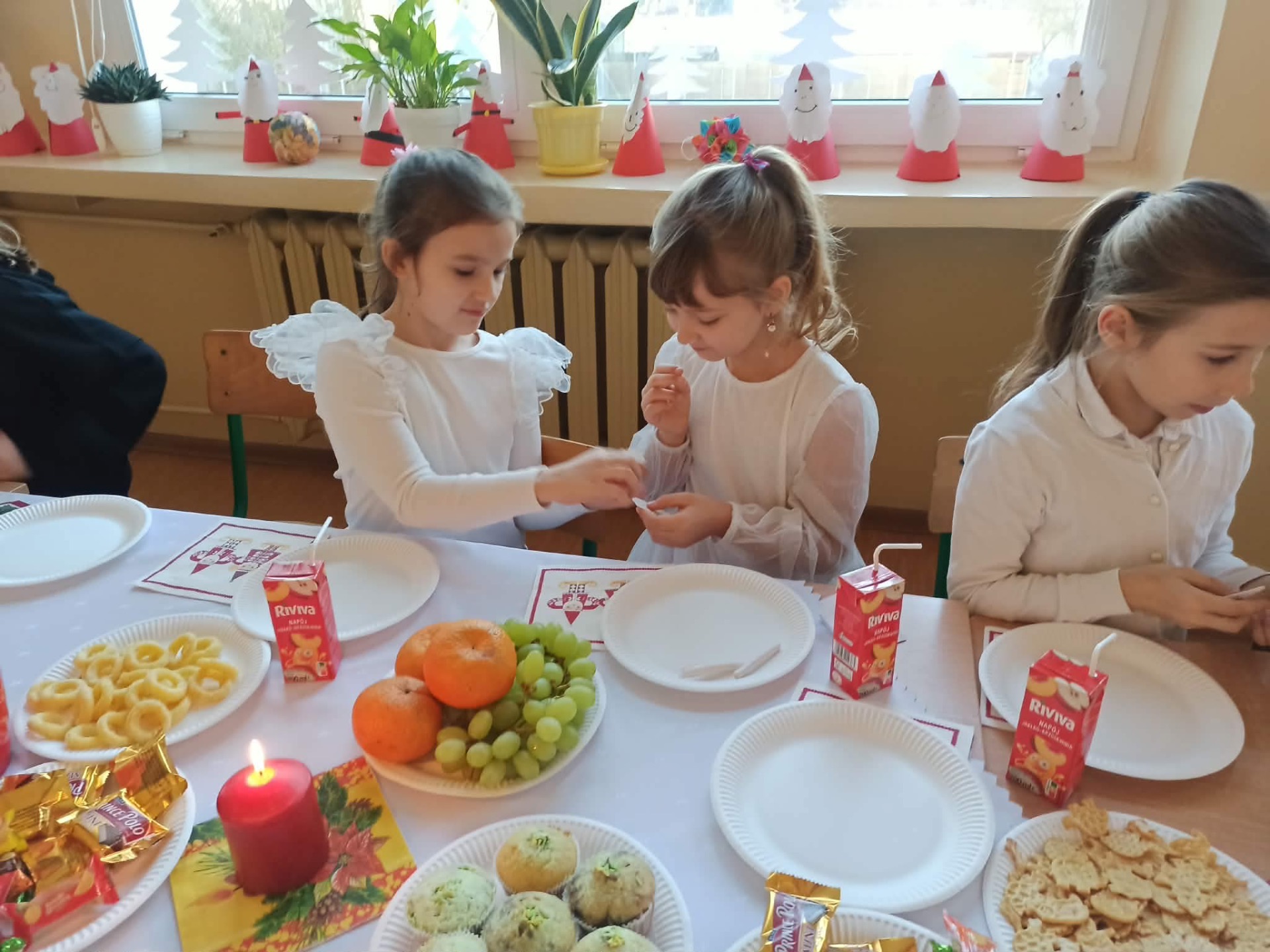 Dzięki zaangażowaniu Rodziców powstały piękne, świąteczne stoły wigilijne, przy których dzieci mogły wspólnie zasiąść, dzielić się opłatkiem i składać sobie życzenia. Był to niezwykle wzruszający moment, pełen serdeczności, bliskości i wzajemnej życzliwości.