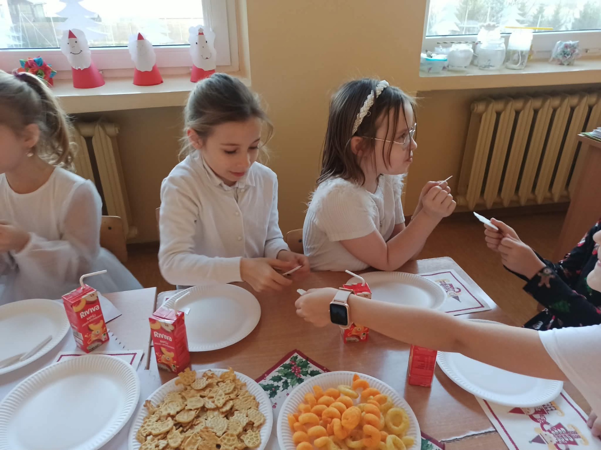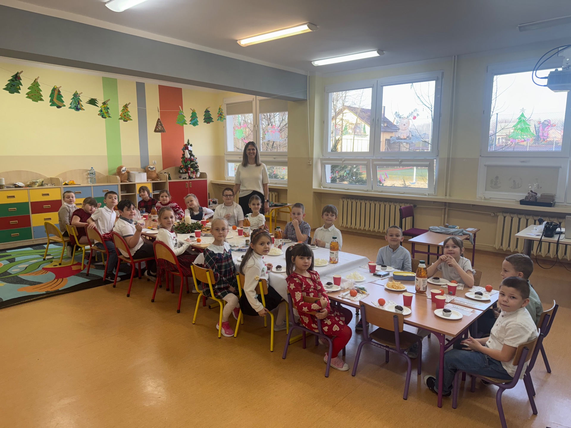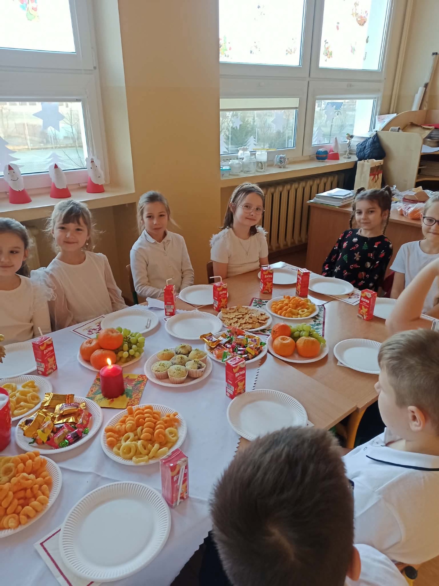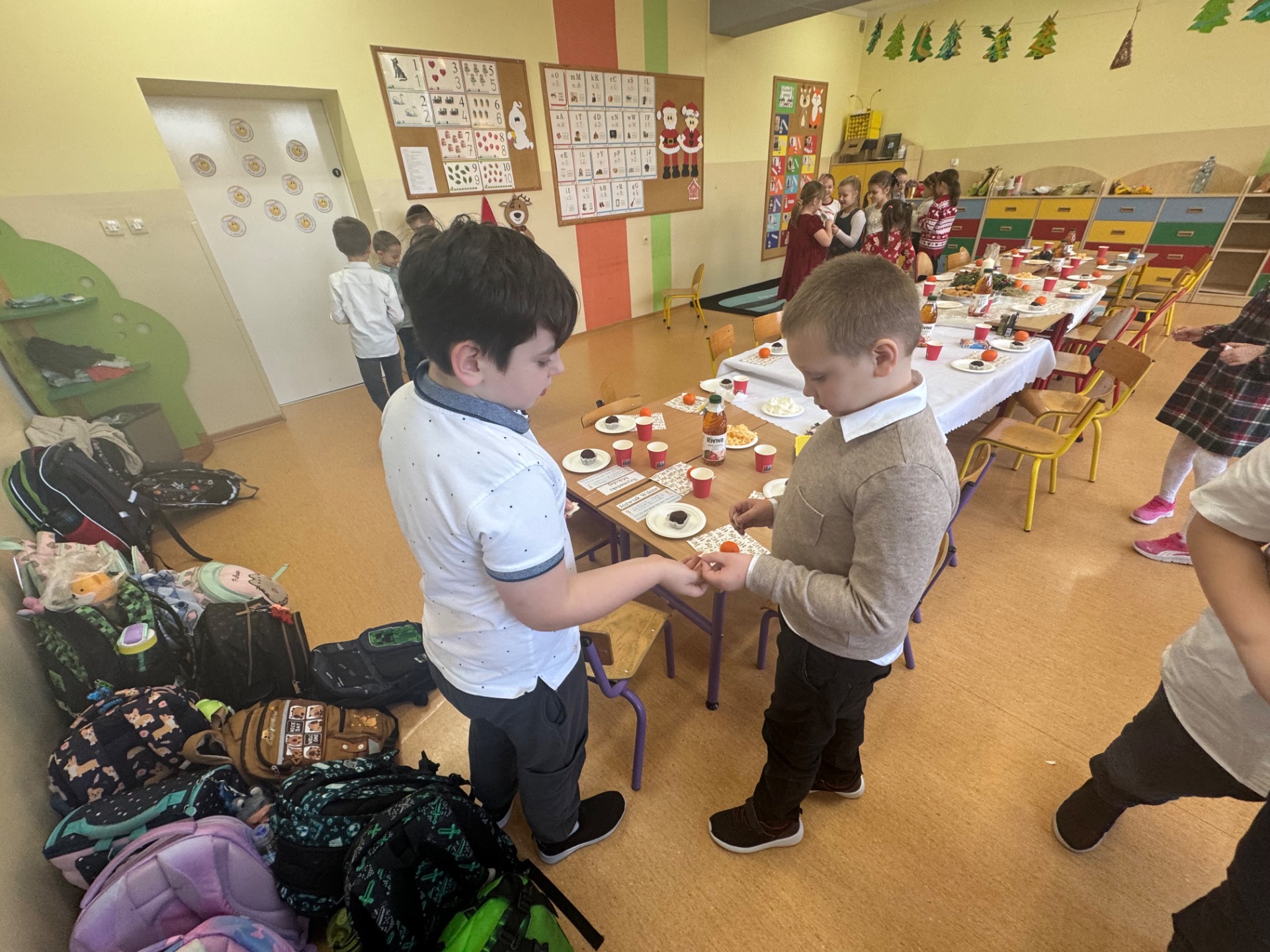 Dzięki zaangażowaniu Rodziców powstały piękne, świąteczne stoły wigilijne, przy których dzieci mogły wspólnie zasiąść, dzielić się opłatkiem i składać sobie życzenia. Był to niezwykle wzruszający moment, pełen serdeczności, bliskości i wzajemnej życzliwości.