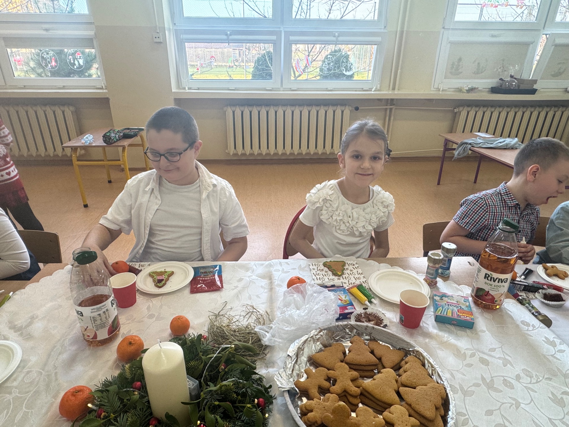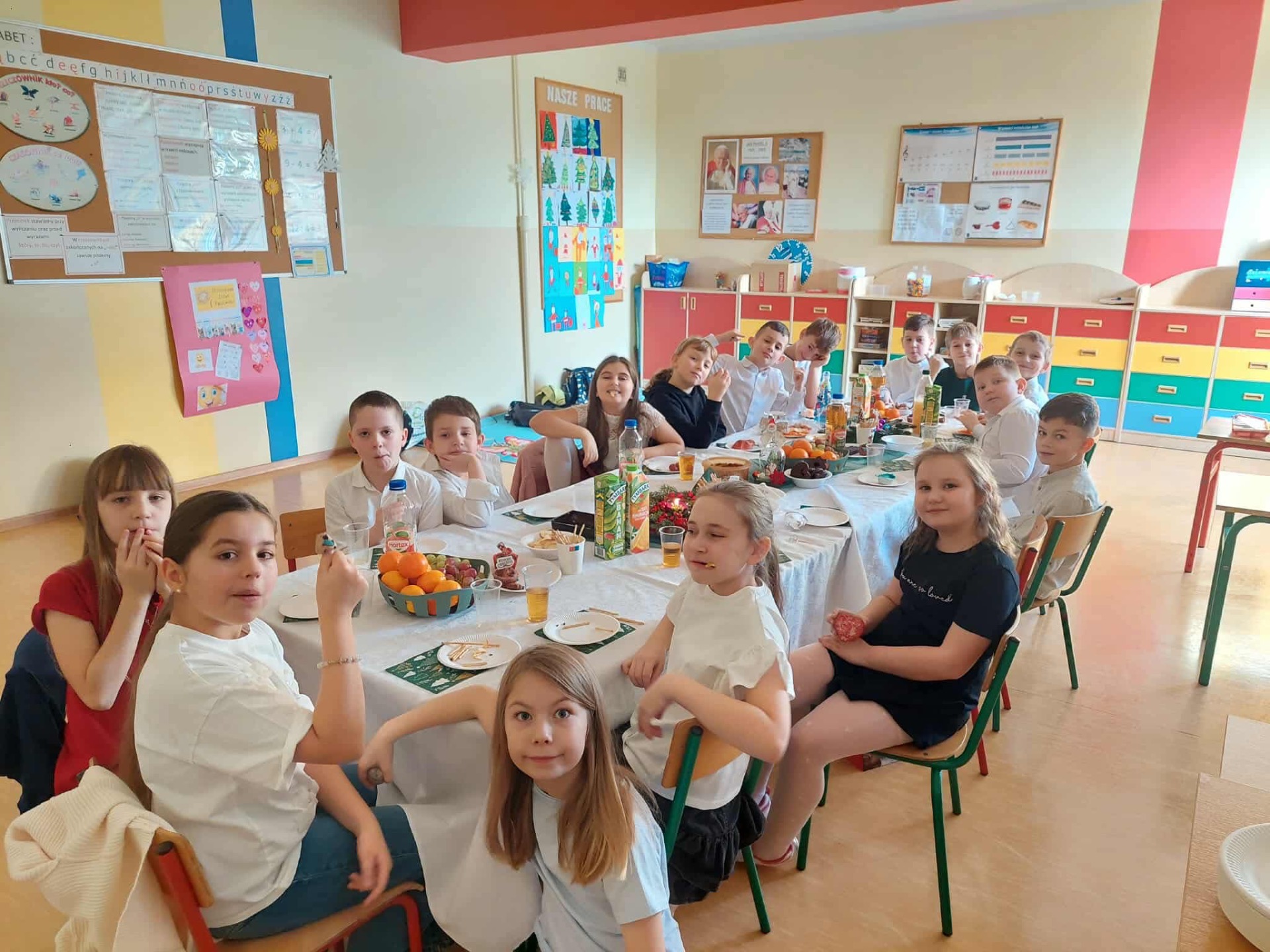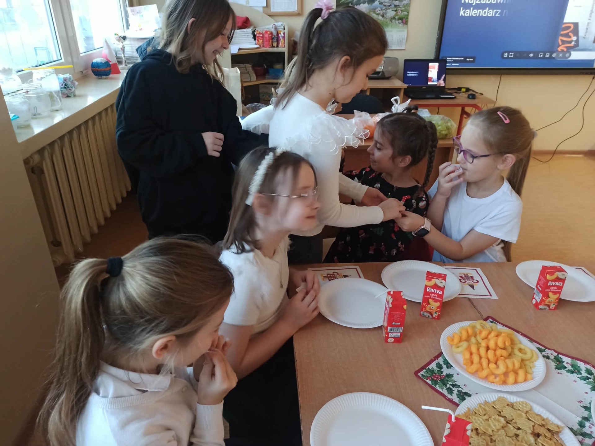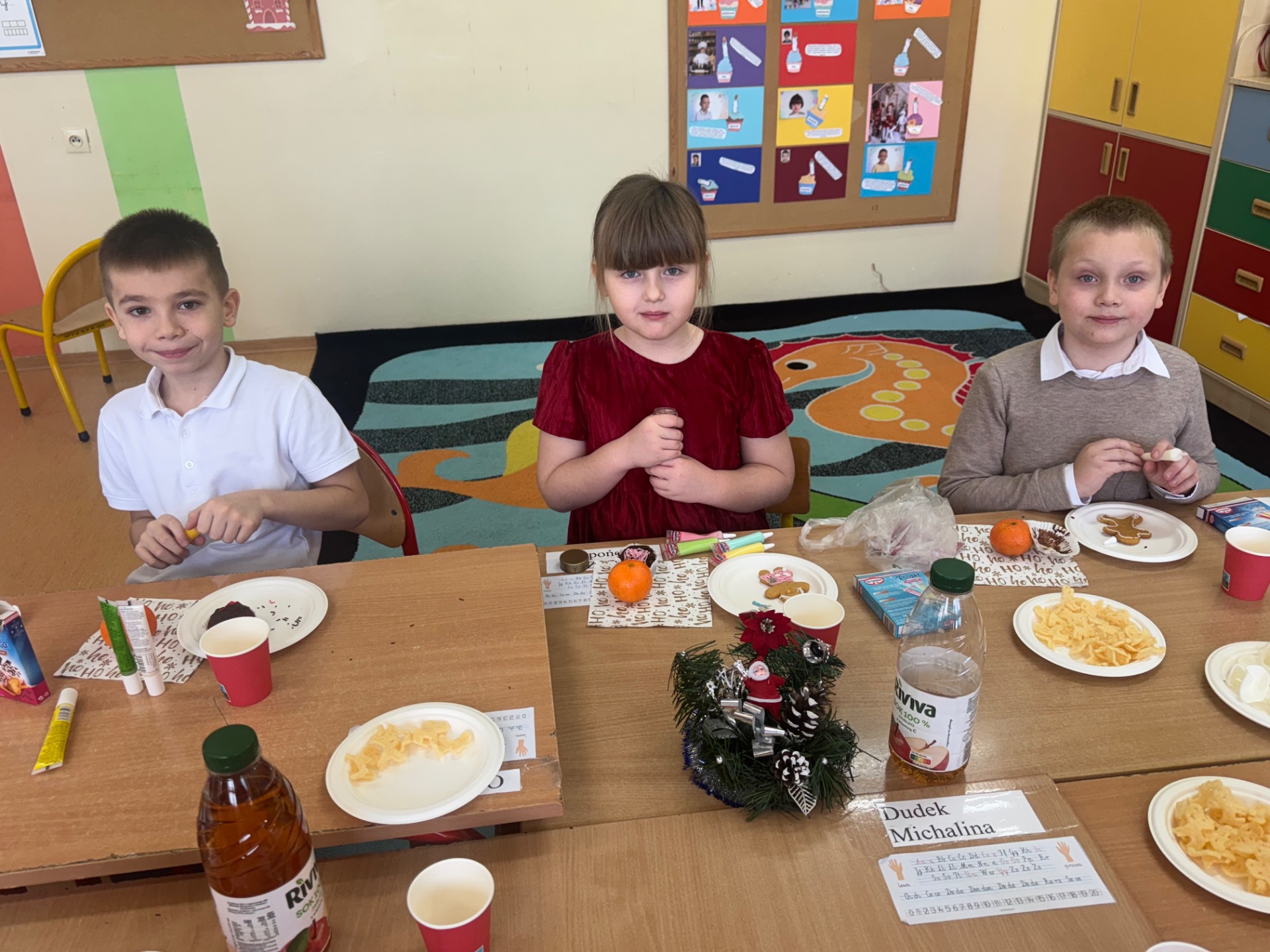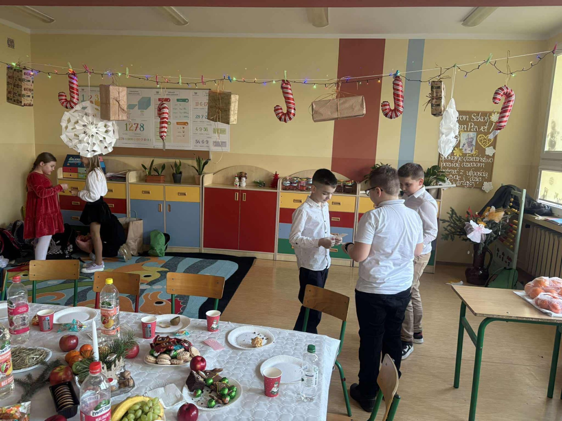 Dzięki zaangażowaniu Rodziców powstały piękne, świąteczne stoły wigilijne, przy których dzieci mogły wspólnie zasiąść, dzielić się opłatkiem i składać sobie życzenia. Był to niezwykle wzruszający moment, pełen serdeczności, bliskości i wzajemnej życzliwości.