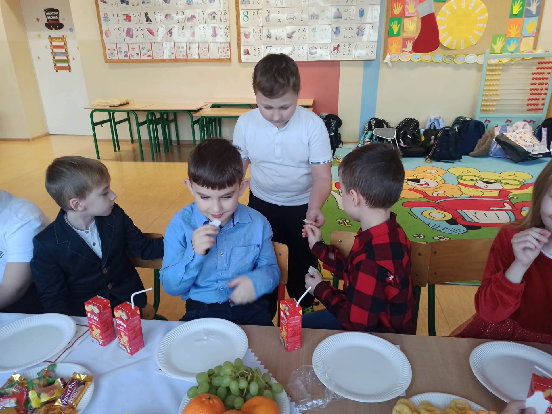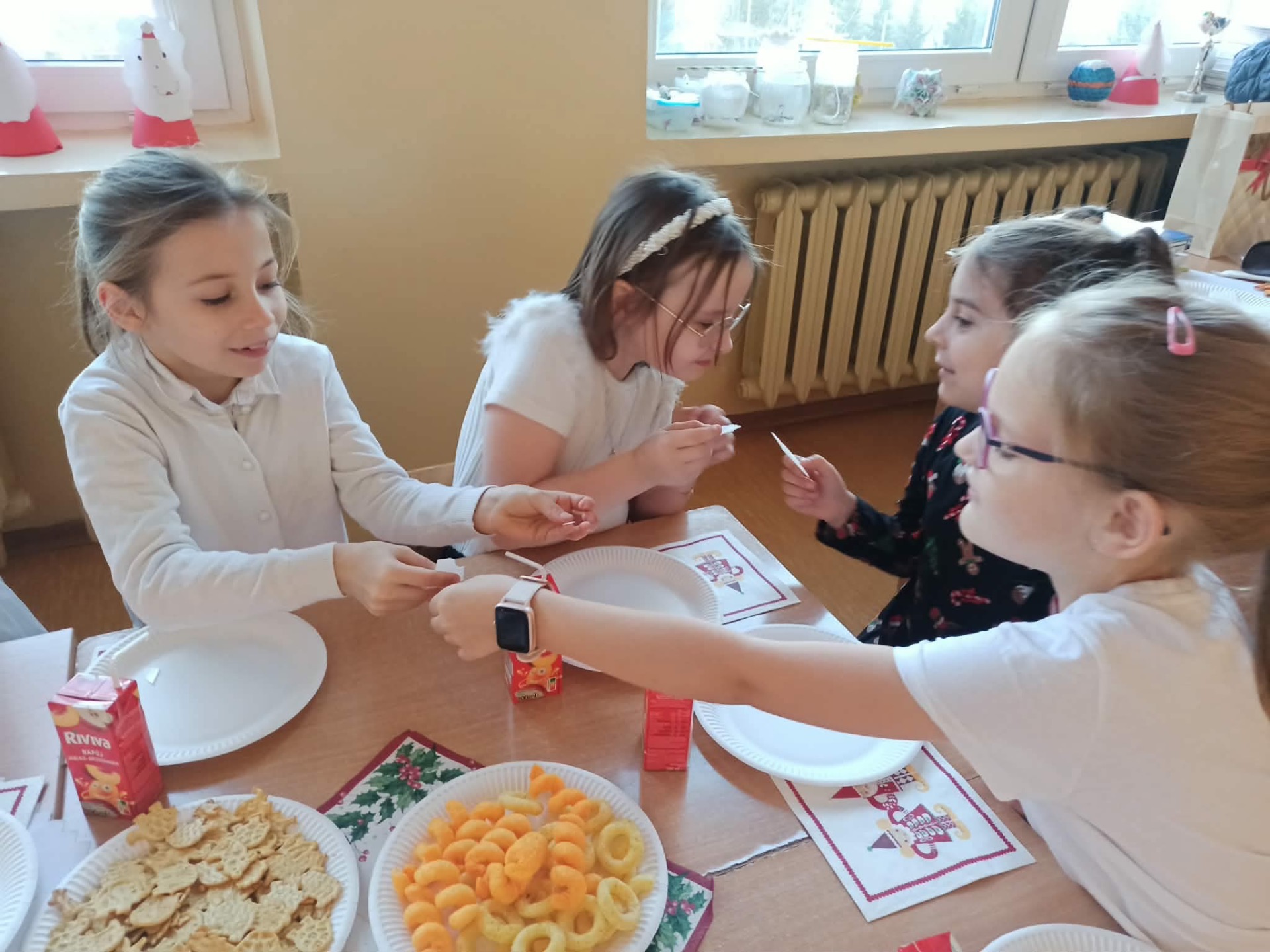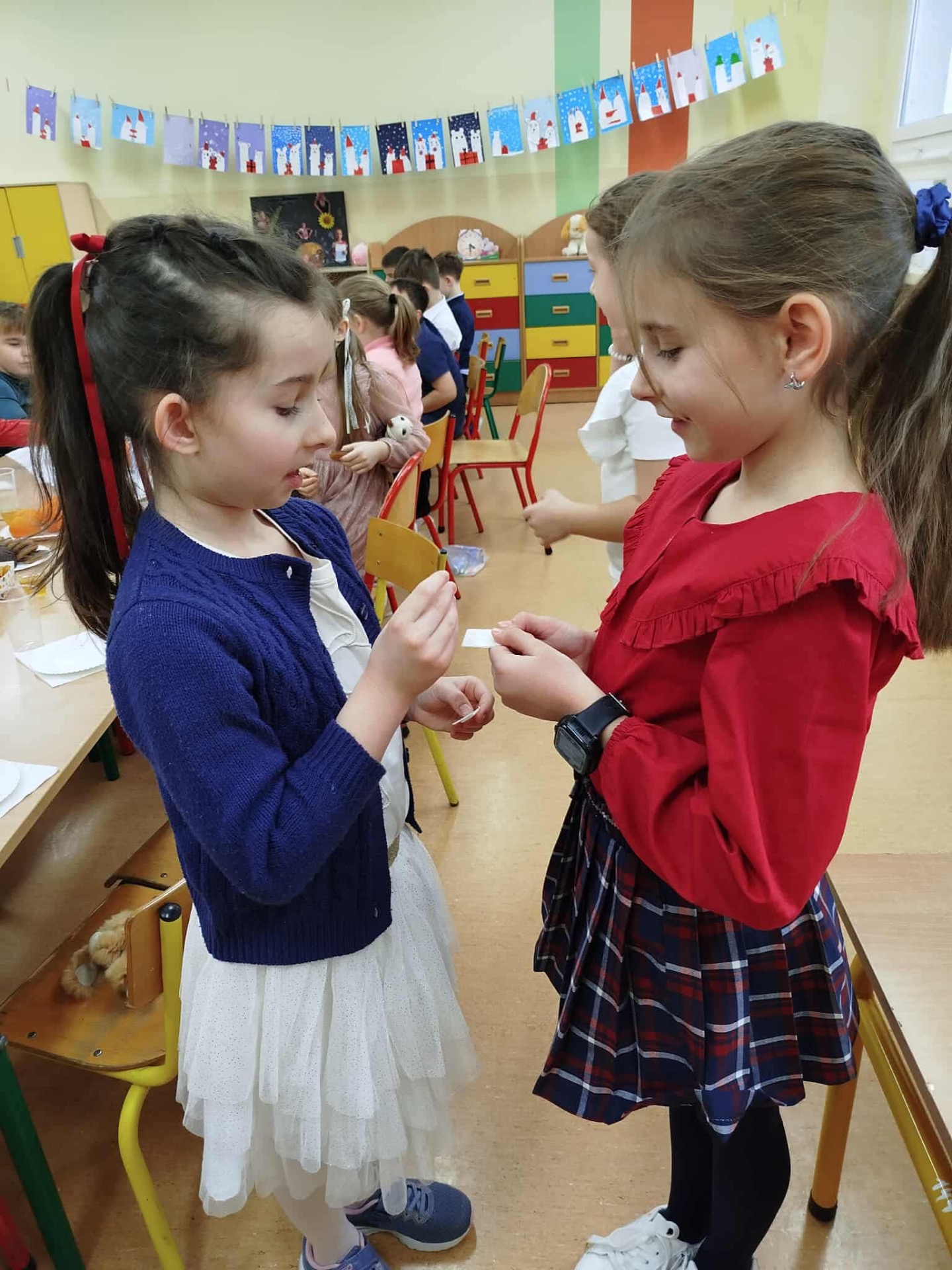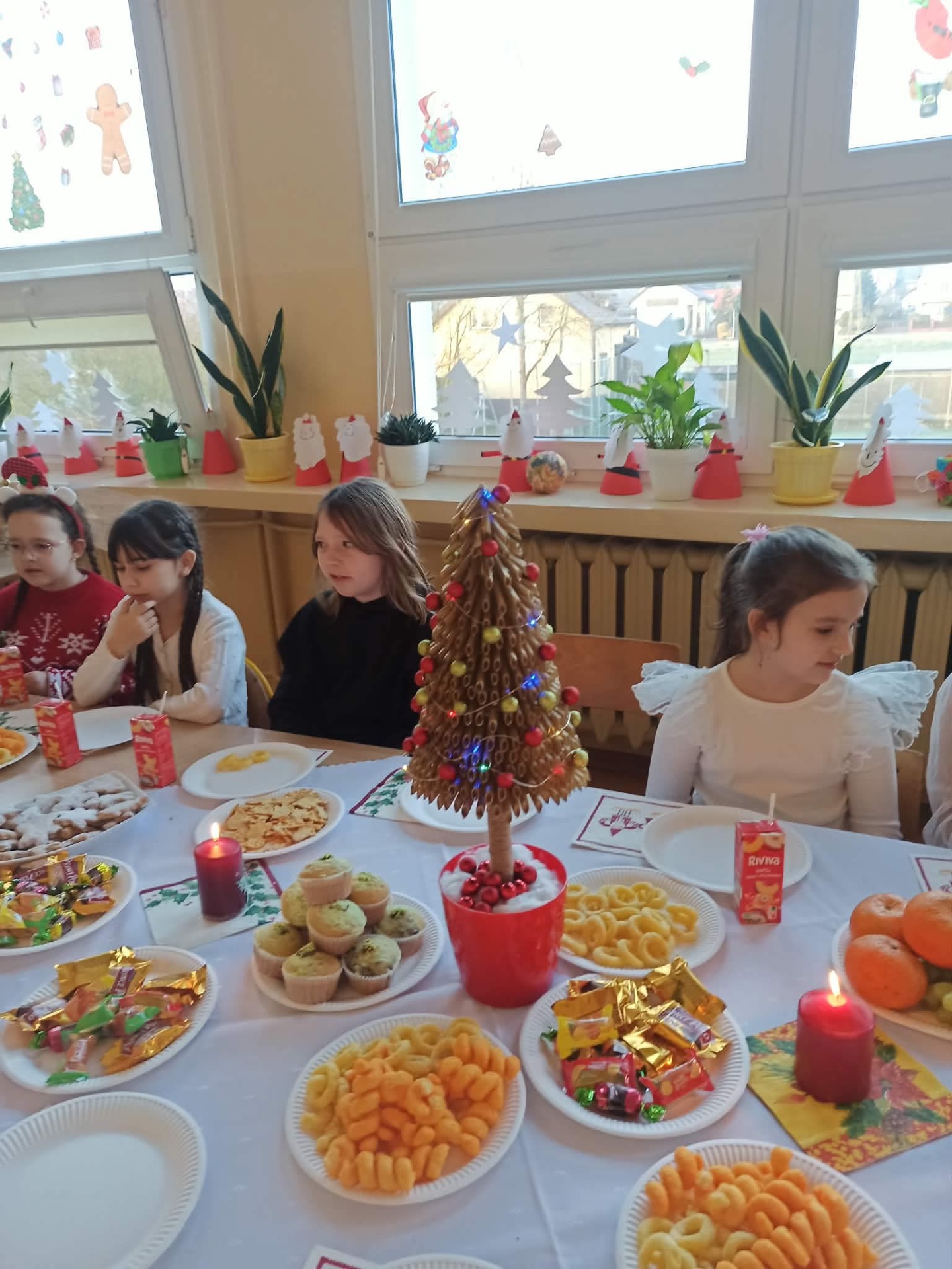 Dzięki zaangażowaniu Rodziców powstały piękne, świąteczne stoły wigilijne, przy których dzieci mogły wspólnie zasiąść, dzielić się opłatkiem i składać sobie życzenia. Był to niezwykle wzruszający moment, pełen serdeczności, bliskości i wzajemnej życzliwości.